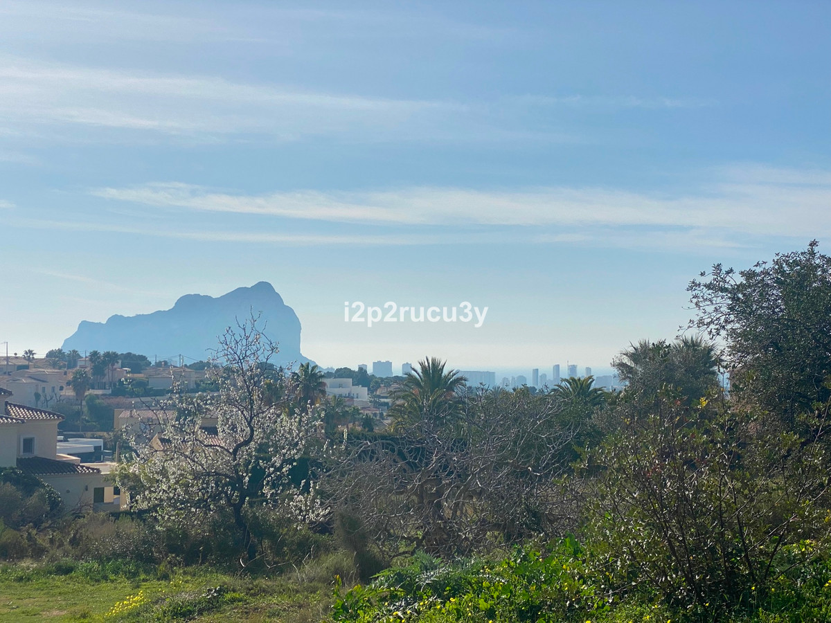 Sunny, flat plot for sale in Calpe, Gran Sol with great sea views and views of the Peñon d´Ifach. In dead end street, so very tranquil. Only 6 car minutes away from amenities. Direct water and electricity supply point in the plot sidewalk (connection cost 3.000 euros + IVA; not included)