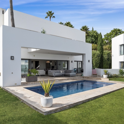 Five-bedroom villa for sale in the exclusive Benahavis Country Club area, with sea and mountain views. Expect the spectacular views and privacy, surrounded by the comforts of the Country Club. The property resides in Benahavis, which is just 10 minutes from Marbella, Puerto Banus and San Pedro de Alcantara.