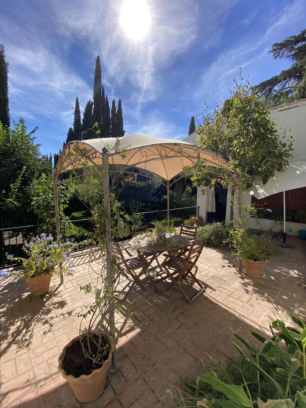 A Casa Carmen is a house in Granada. With a garden planted with grape vines and fruit trees. Normally surrounded by a high wall and vegetation that separates it from the street.