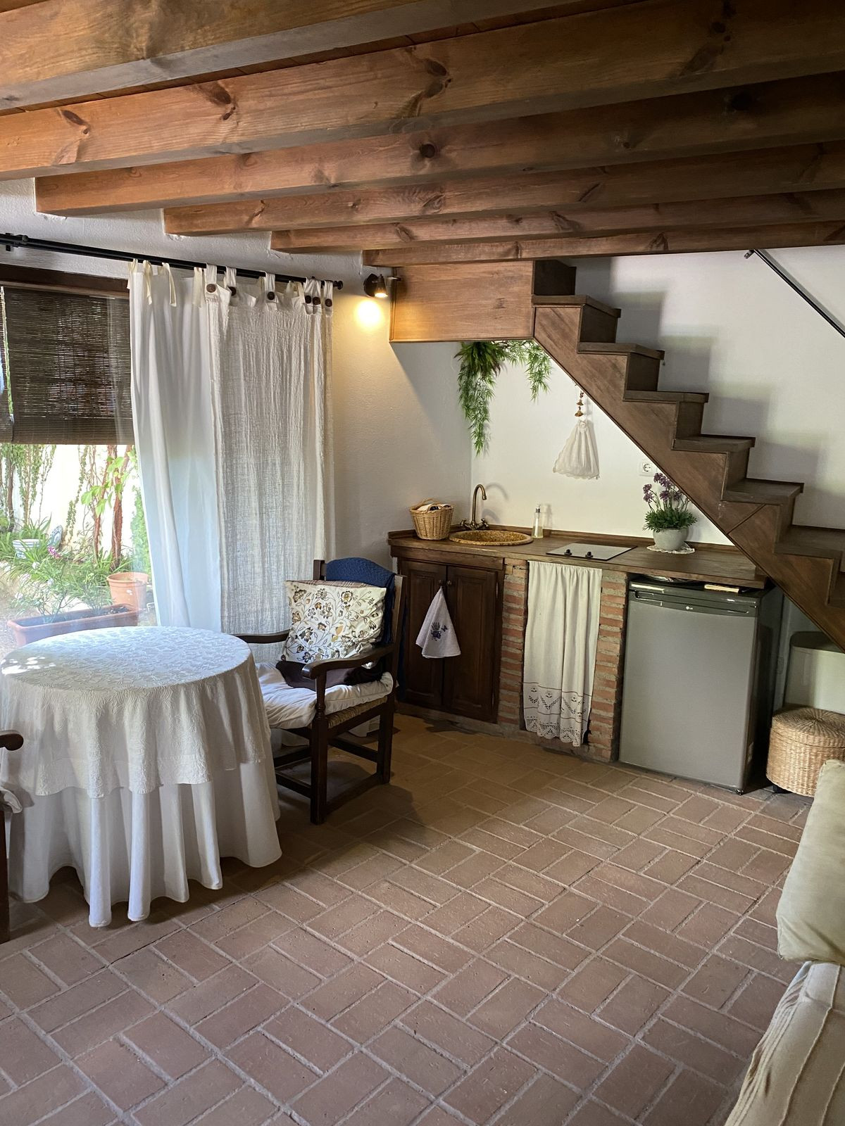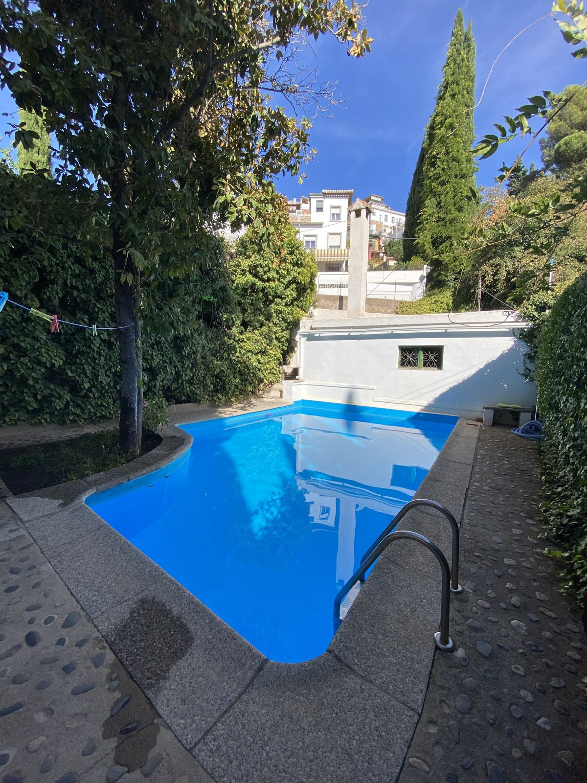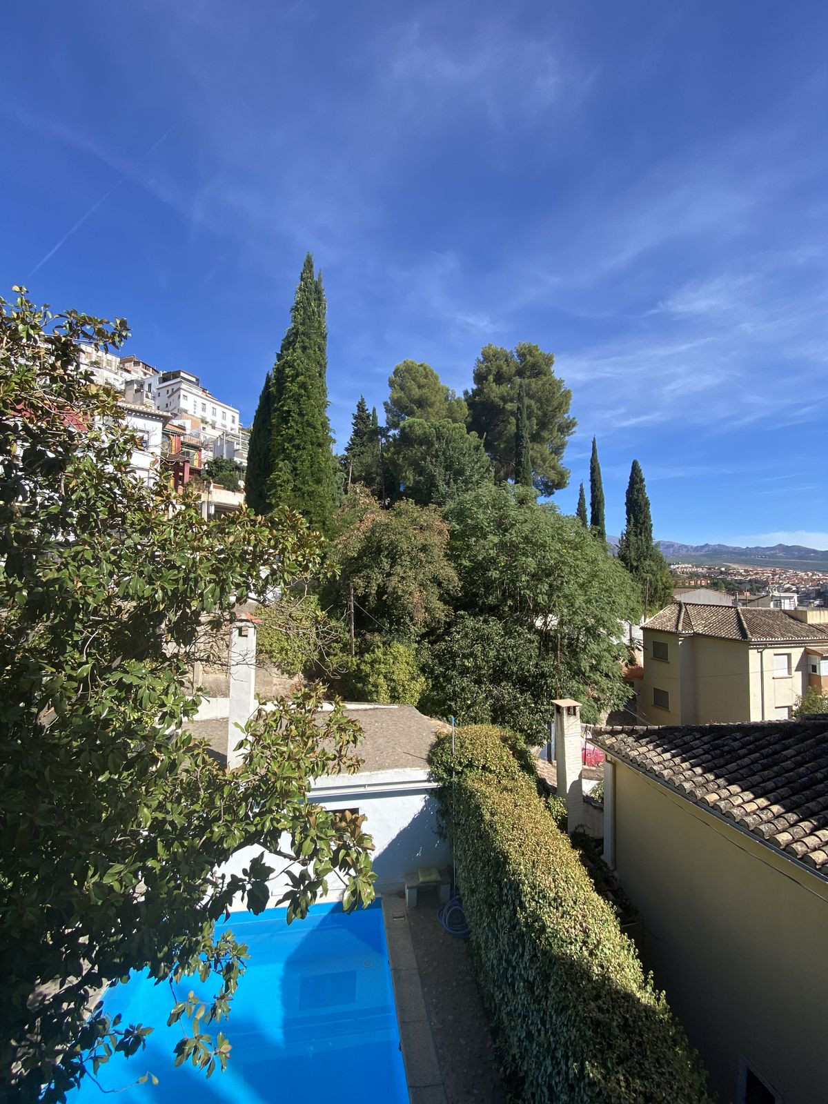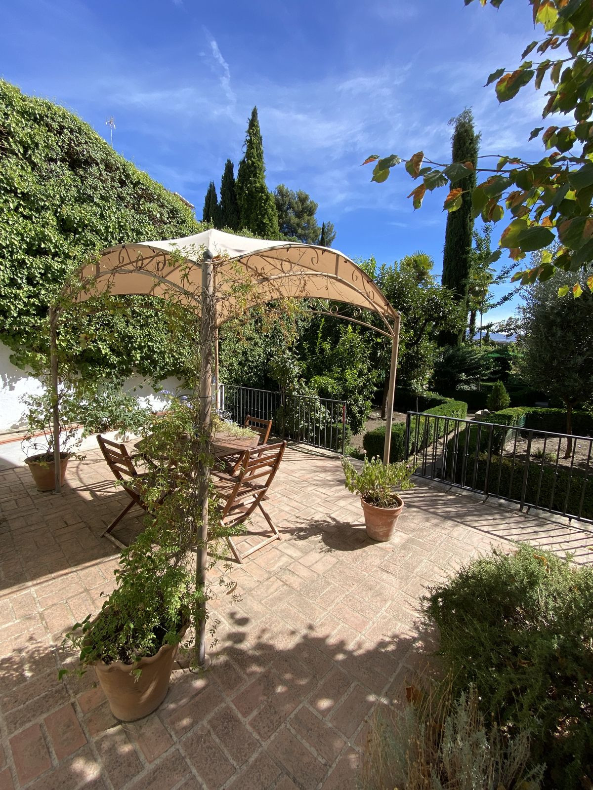 This carmen granadino has a main house with 3 bedrooms and 2 bathrooms, as well as an independent guest apartment with a living room, a bedroom and a bathroom.