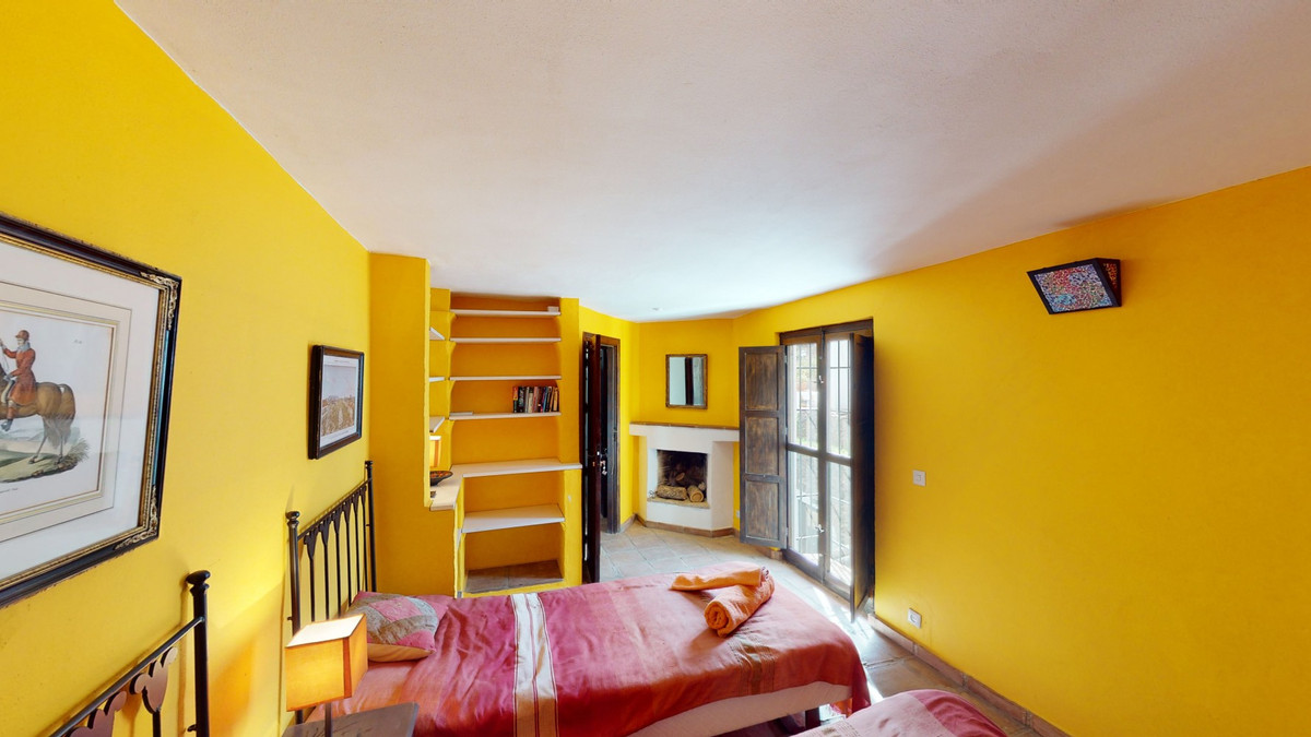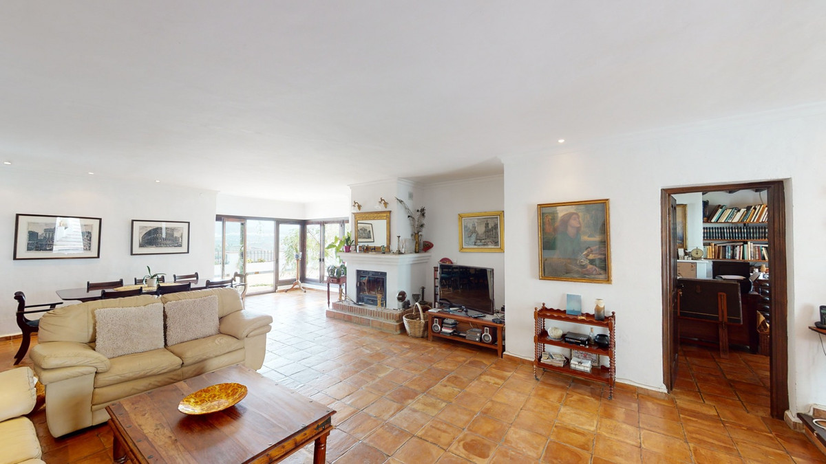 Are you looking for an oasis in harmony with nature? A place of peace and relaxation, where time runs a little slower? Yes?! Then we would like to show you this fantastic villa, in the mountains of Torrox. It offers an imposing, grand main house, a separate, small guest house and a pool, as well as 5,569 m2 of land, which is predominantly flat and thus offers countless possibilities. The layout of the property makes it possible to use the main house as two independent living units, with separate entrances. This fabulous property is perfect as a multi-family home, B&B or as an investment opportunity for a yoga center, event location, dance school or meditation temple.... An almost completely paved driveway leads you to a concrete parking area, which is partially covered. On this level is the charming guest cottage with its own covered terrace. It is equipped with a cozy, open living/dining area with a bed, a kitchen and a bathroom. The fireplace provides comfortable warmth in the cooler months. A driveway, as well as stairs, lead to the lower level. Another heavy wooden door with an iron horse door knocker grants entry into the spacious, imposing living area with fireplace, of the first part of the house. To the right is a guest toilet. Next to this is a room which is currently used as an office/library. It can also be heated to a comfortable temperature in the cooler seasons with the fireplace. We have adjacent a small, glazed room from which you can enjoy the view of the surrounding countryside. The large terrace at the front of the house offers breathtaking views of the famous white village of Frigiliana and the Sierra de Tejada in the background. Thanks to the hillside location, the hollow space under this terrace can still be closed and create more living space, if needed. From the living room, also with access to the terrace, one enters the spacious open kitchen with dining area. The interplay of traditional and modern has been perfectly achieved here. A glass patio door leads to the beautiful u-shaped and typical Andalusian courtyard with a fountain. On the second floor of the house there are three bedrooms and two bathrooms. The master bedroom has a large, modern bathroom with its own sauna, as well as a bathtub and shower. From two of the bedrooms there is access to an enchanted u-shaped balcony with views down into the Andalusian courtyard. Its wooden beams and plantings make it feel like you've stepped into another era. A corridor leads from this balcony to the second part of the house. On the second floor there is a bedroom with another fireplace, called the Sunroom because of its wall color. A staircase leads down to a huge open space with a large flat skylight that lets in natural light. The space can be used for a wide variety of possibilities. As a dance studio, atelier, or conference room. A feel-good temperature can also be created here with a great fireplace. On this level we also have a large heavy wooden door, the separate entrance to this part of the house. Right next to the entrance area there is a fully equipped bathroom. Through an open arch you enter a living area with a small, charming kitchen. Through almost floor-to-ceiling windows, you look out onto an idyllic pond and out into the countryside. There is another bathroom and two bedrooms, both with access to the outdoor area. The outdoor area includes a pool, many terraces with seating, a small vegetable garden and some olive trees. The bodega, or wine cellar, adds the finishing touches to the mansion and guarantees the right temperature for your wine. We are pleased to be able to present this dream property to you soon, either personally or via virtual viewing. Because this world, it is unique - just like our Axarquía. In Andalusia. On the Costa del Sol. Here, on the sunny side of life...