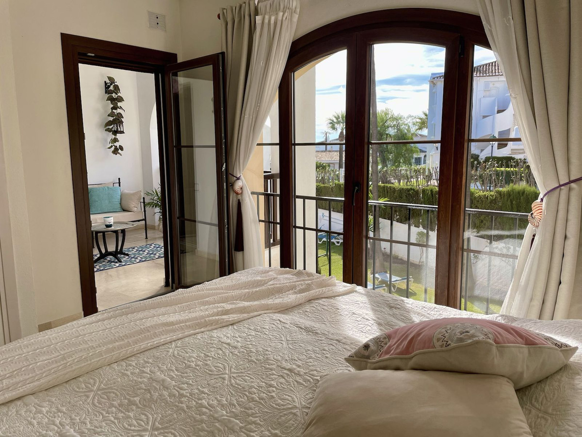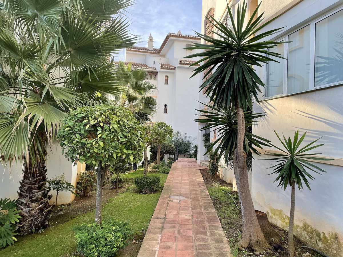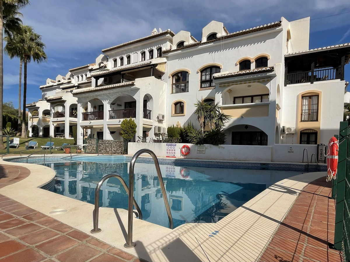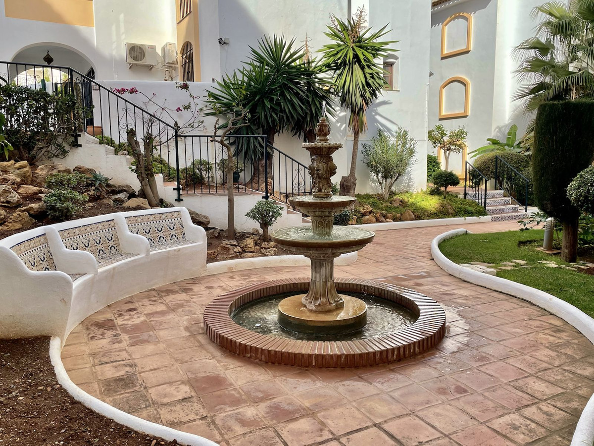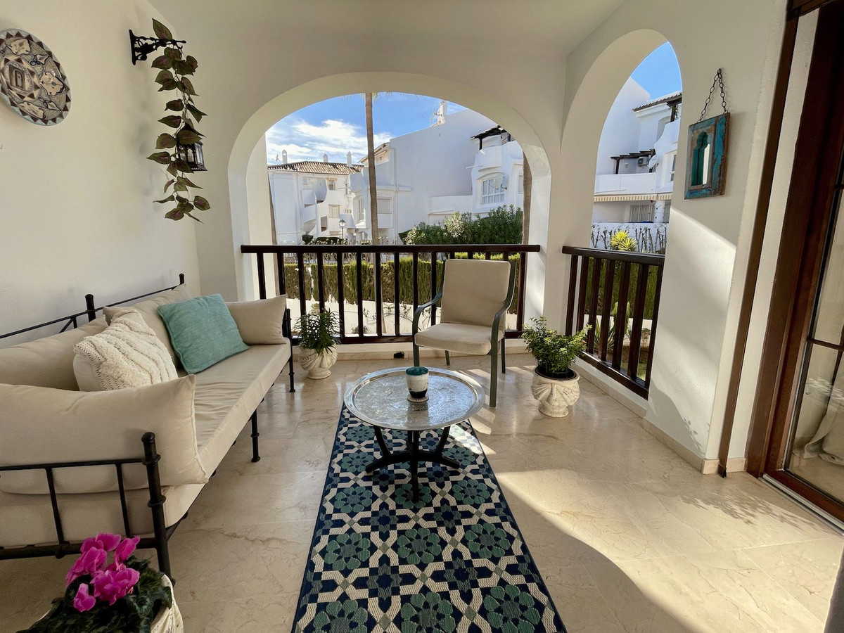 MIDDLE FLOOR APARTMENT! One of the best apartments I have seen this year. And is sold as seen. Caserio de Calahonda is a relatively small gated community of 47 apartments in 3 blocks. Situated in the sought after area of Jardines de Calahonda, in lower Calahonda, adjacent to natural parkland. The atmosphere here is distinctly Spanish, with Moorish inspired architecture, pretty gardens, and a tranquil courtyard. This apartment enjoys access to a delightful pool. Offering peace of mind to families with young children, the pool is fenced and gated, and of particular benefit to guests with restricted mobility as it can be accessed via a non-slip ramp. Additionally, the apartment is bright and spacious, tastefully decorated and expensively furnished, the king sized master bedroom leads to a full ensuite bathroom the double room has its own shower room accross the hall. Both bedrooms have fitted wardrobes with plenty of shelving and hanging space. There is air conditioning/heating throughout. There is a fully fitted kitchen. There are two terraces, front and back with beautiful views to the garden, pool and park. This is the ideal investment, holiday home or family home. Location is mid way between Fuengirola and Marbella, 25 min from Malaga airport Calahonda is also a perfect base for sightseeing and for visiting many wonderful locations in Andalucia and Southern Spain. The Costa del Sol is a great choice for golf enthusiasts and the nearest courses are just minutes away from the apartment. The apartment is a great choice for those who choose to avoid driving as the beach and all local amenities are within walking distance, public transport is cheap and reliable and bus stops for Marbella and Fuengirola are within easy reach. This property really is a must see. Middle Floor Apartment, Calahonda, Costa del Sol.