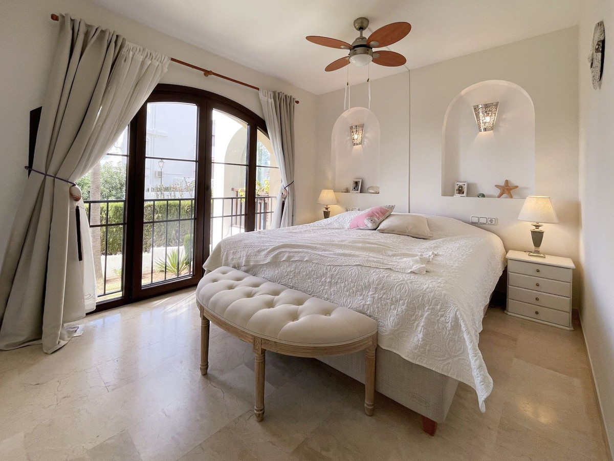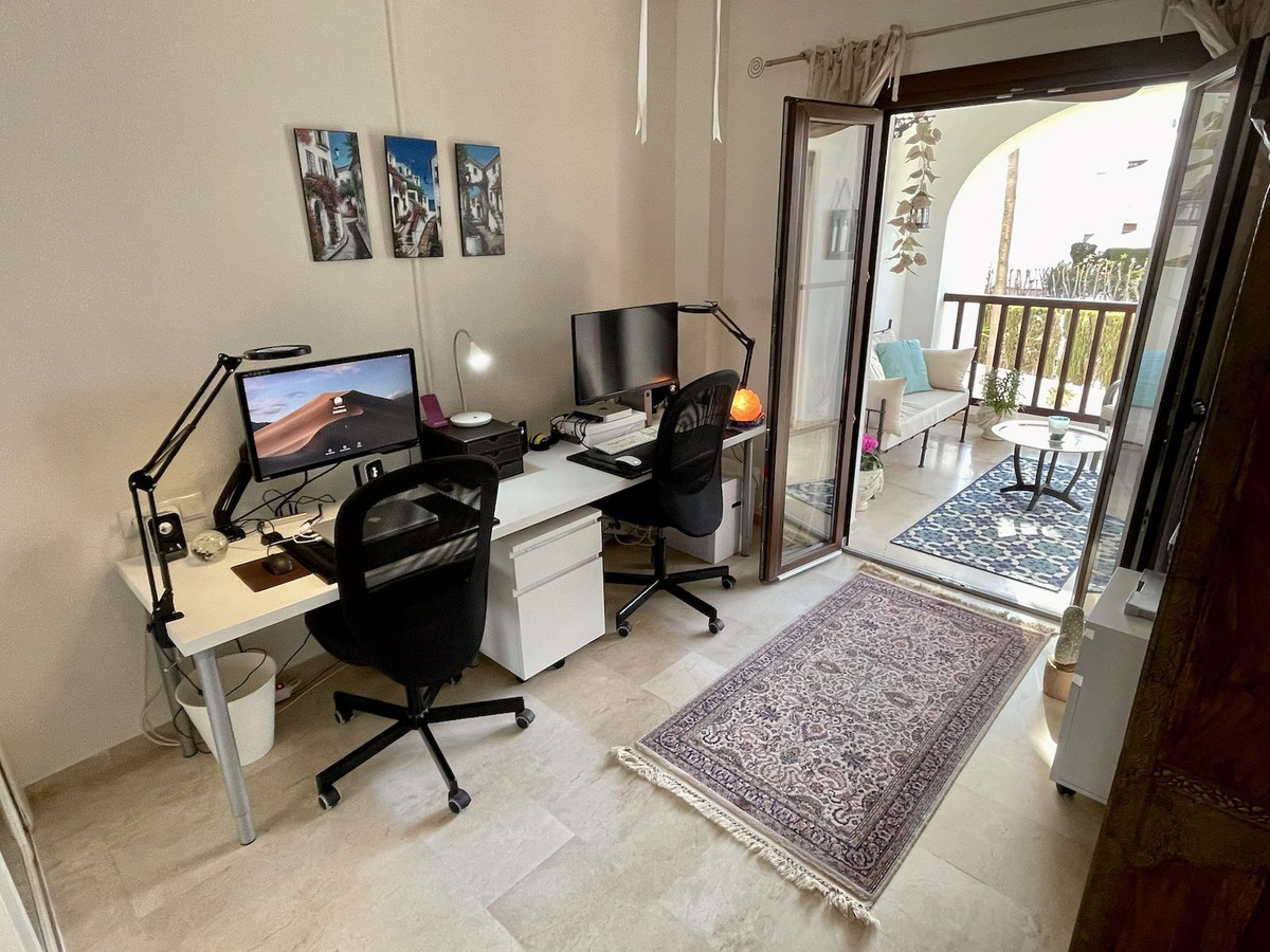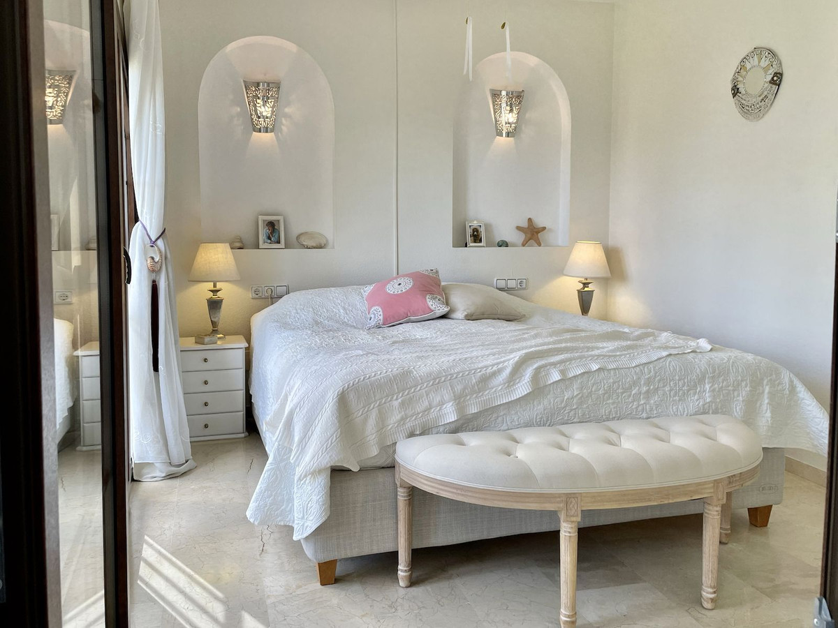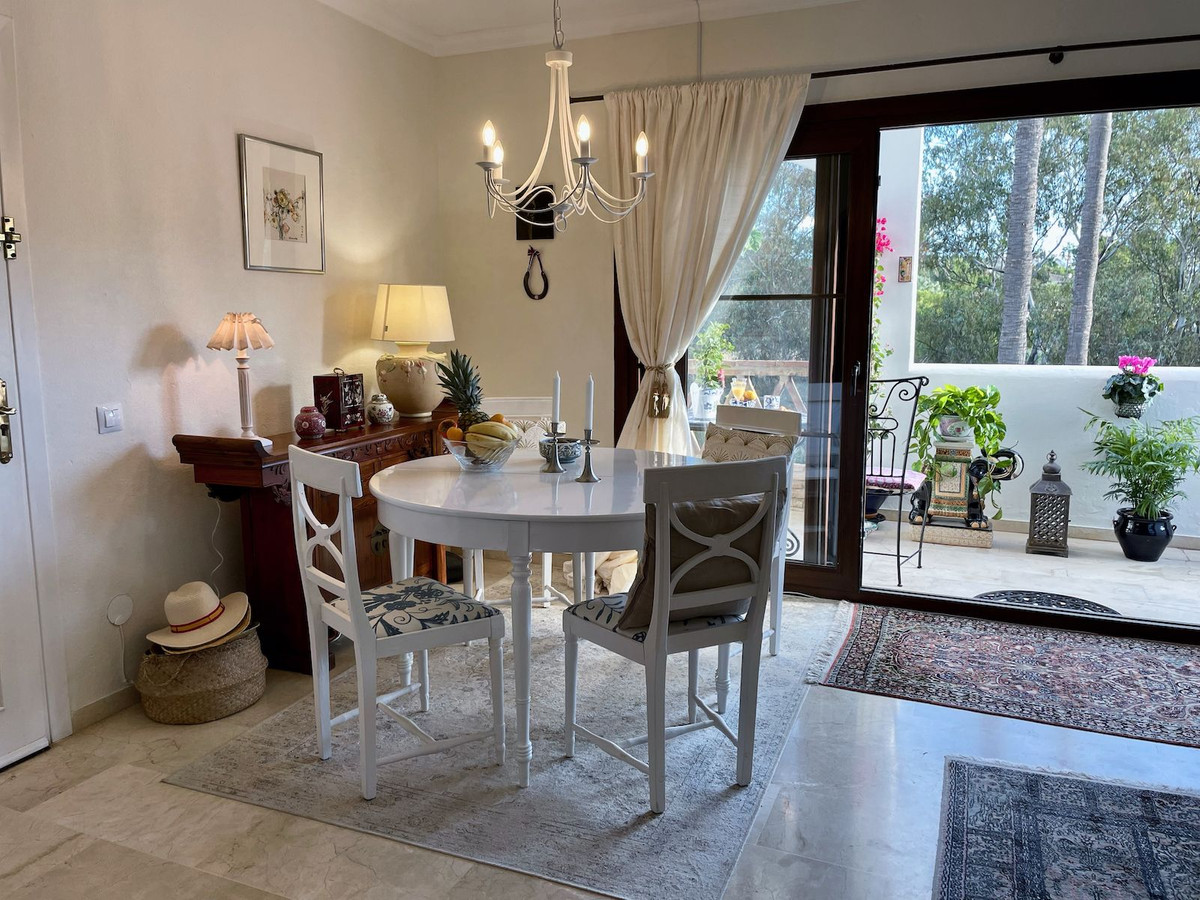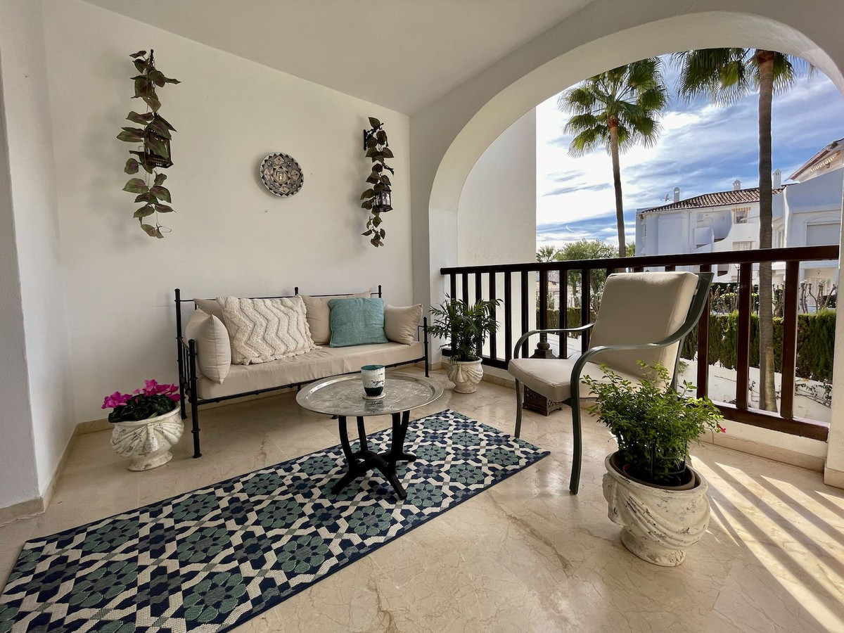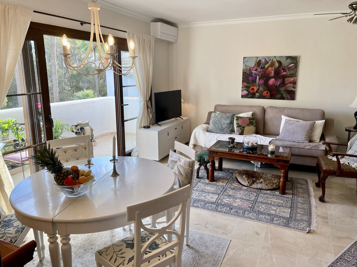 MIDDLE FLOOR APARTMENT! One of the best apartments I have seen this year. And is sold as seen. Caserio de Calahonda is a relatively small gated community of 47 apartments in 3 blocks. Situated in the sought after area of Jardines de Calahonda, in lower Calahonda, adjacent to natural parkland. The atmosphere here is distinctly Spanish, with Moorish inspired architecture, pretty gardens, and a tranquil courtyard. This apartment enjoys access to a delightful pool. Offering peace of mind to families with young children, the pool is fenced and gated, and of particular benefit to guests with restricted mobility as it can be accessed via a non-slip ramp. Additionally, the apartment is bright and spacious, tastefully decorated and expensively furnished, the king sized master bedroom leads to a full ensuite bathroom the double room has its own shower room accross the hall. Both bedrooms have fitted wardrobes with plenty of shelving and hanging space. There is air conditioning/heating throughout. There is a fully fitted kitchen. There are two terraces, front and back with beautiful views to the garden, pool and park. This is the ideal investment, holiday home or family home. Location is mid way between Fuengirola and Marbella, 25 min from Malaga airport Calahonda is also a perfect base for sightseeing and for visiting many wonderful locations in Andalucia and Southern Spain. The Costa del Sol is a great choice for golf enthusiasts and the nearest courses are just minutes away from the apartment. The apartment is a great choice for those who choose to avoid driving as the beach and all local amenities are within walking distance, public transport is cheap and reliable and bus stops for Marbella and Fuengirola are within easy reach. This property really is a must see. Middle Floor Apartment, Calahonda, Costa del Sol.