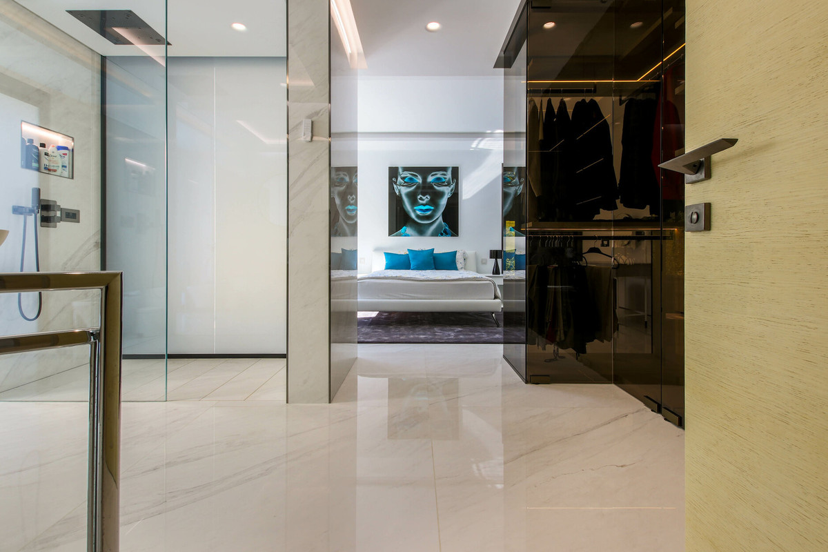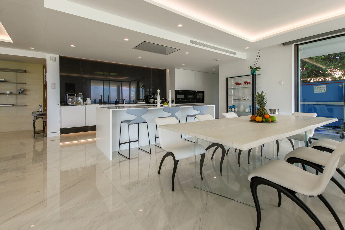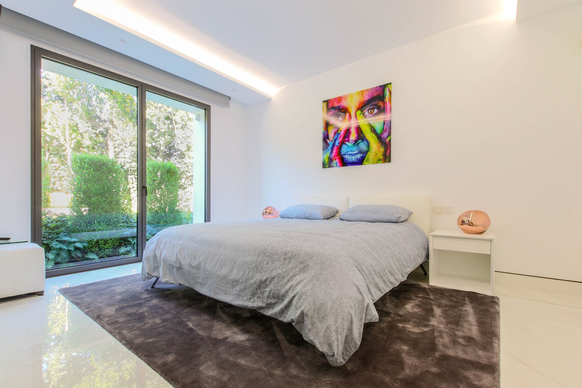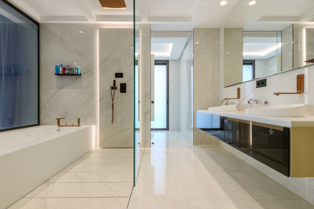 Ground Floor Duplex for sale in Emare, Estepona with 4 bedrooms and 4 bathrooms, with communal swimming pool, private garage (4 parking spaces) and private garden. Regarding property dimensions, it has 526 m² built, 415 m² plot, 306 m² interior and 146 m² terrace. Has the following facilities garden view, panoramic view, pool view, sea view, amenities near, beachside, close to children playground, close to port, close to sea / beach, front line beach, air conditioning, ceiling heating system, brand new, excellent condition, 24h service, bars, basement, electric blinds, fitted wardrobes, glass doors, guest toilet, heated pool, home automation system, internet – wifi, private terrace, turkish bath, kitchenette, fully fitted kitchen, fully furnished, cinema room, dining room, game room, laundry room, living room, storage room, armored door, doorman, double glazing, gated community, security entrance, security service 24h, security shutters, surveillance cameras and video entrance.