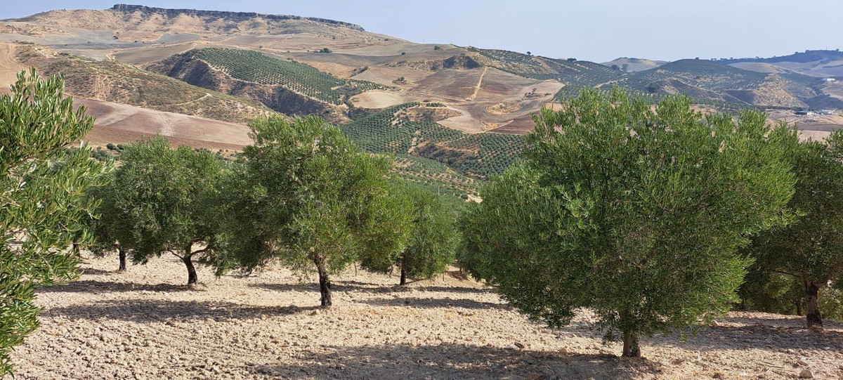 The plots are meticulously managed to ensure the health and productivity of the olive trees, using specific pruning techniques and detailed management.