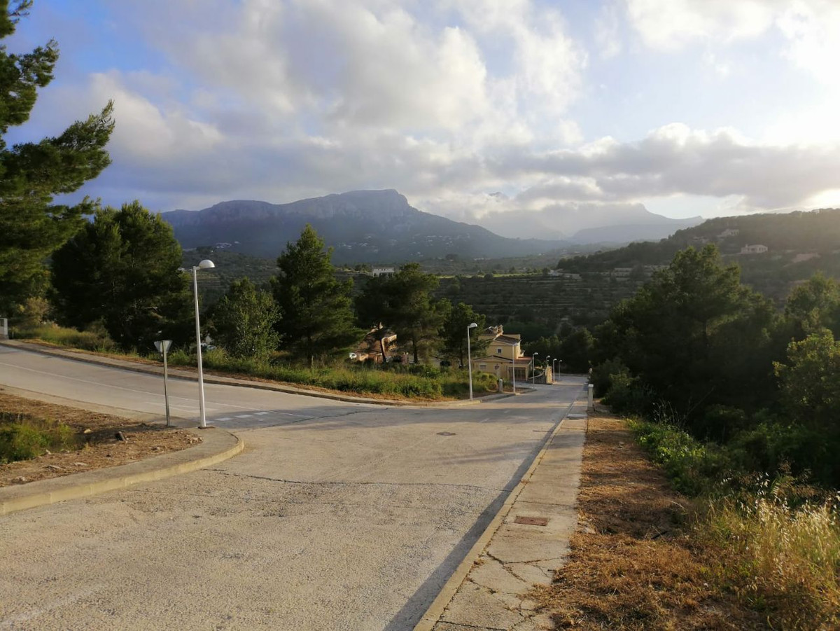 Building plot in Calpe, with panoramic views to the Mountain of Olta and the mountain of Bernia, located 3.5 km from Calpe. Southwest orientation.