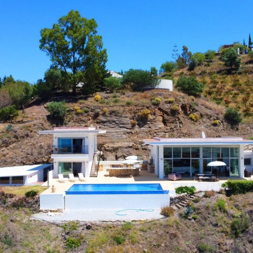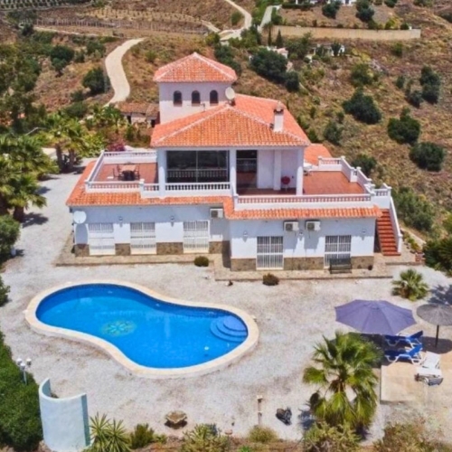 Magnificent villa located only 5 minutes walk from Sayalonga's centre. Fully paved access at street level with beautiful views over the village. The villa has a built area of 330 m2, which is divided into 2 floors. On the upper floor, we find a spacious living-dining room connected to a great terrace, ideal for any occasion. Here we can also find a laundry area. The property has an independent and well-furnished kitchen with pantry. Furthermore, there is a guest bedroom right next to a long hallway leading to the bedrooms and a bathroom. The master bedroom has a large walk-in closet, an en-suite bathroom and a lovely little terrace which ensures the same views as the previous one. It has air conditioning hot/cold and heating system in the bathrooms. Downstairs, we reach a large guest flat where there is space to set up any kind of celebrations. It has a bedroom and a bathroom. Moreover, this level links to a garage used as a gym area, where you can park more than two vehicles. Outside, the plot has an approximate size of 5000 m2, with a perfect area devoted to a private swimming pool, equipped with loungers and a storage room with a water boiler. It also has a barbecue area with several fruit trees in production: avocados, lemons and oranges. In addition, there is a registered well that produces 50.000 litres of water per month, with mountain water. Would you like to discover this property with us? We are pleased to be able to present this dream property to you soon, either personally or via virtual viewing. Because this world, it is unique - just like our Axarquía. In Andalusia. On the Costa del Sol. Here, on the sunny side of life...