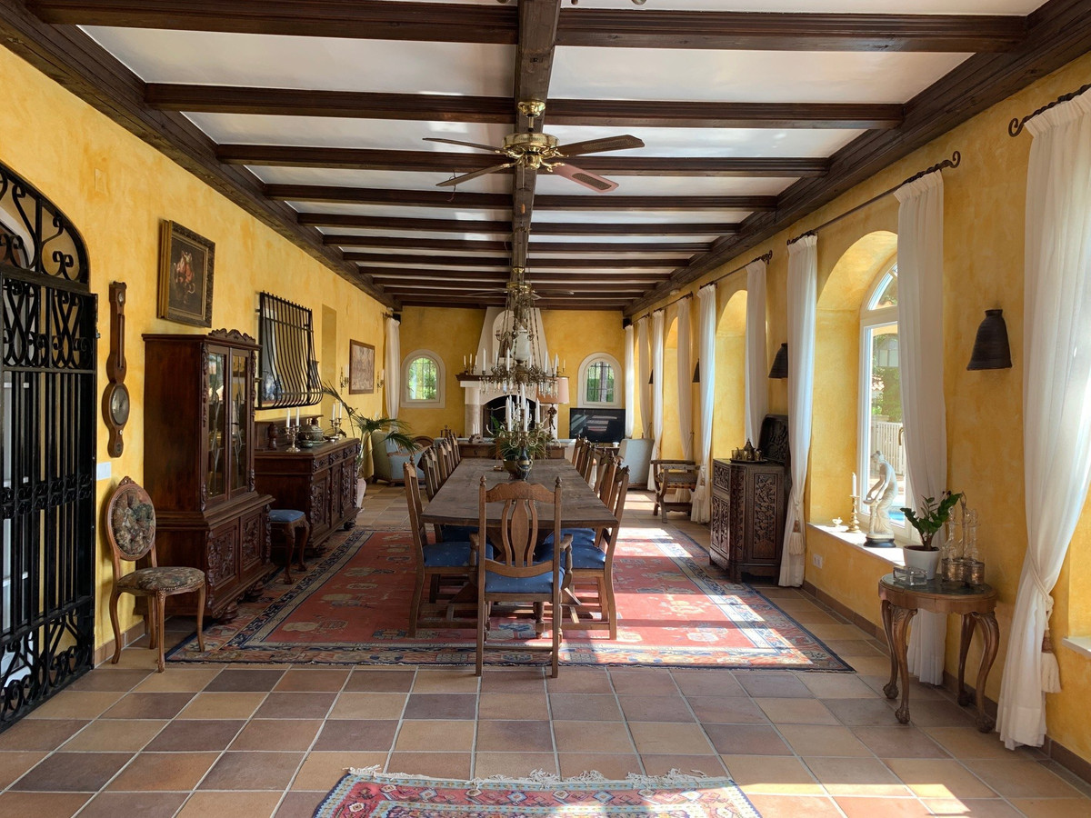 Det finns 7 eldstäder förutom flera funktionella kök, det finns ett industrikök på plats. Den säljs möblerad.