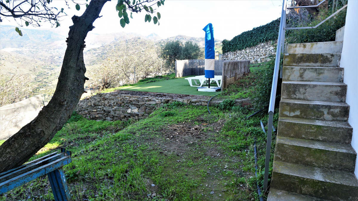 In the white village of Sayalonga, we offer you for sale this cozy and well-equipped finca, close to all essential amenities. It has a built area of 180 m2 which is divided into 2 bedrooms, 2 bathrooms, a large living room upstairs with beautiful views over Sayalonga and a fantastic covered terrace. There is easy access to the ground floor via a staircase. It is quite spacious, ideal to organize all kinds of events. Here there is a laundry room and one of the mentioned bathrooms. On the plot of the property there is ample parking space for one vehicle but there are also parking spaces on the outside of the property. In addition it also has a light workshop space which can be used as a storage room. You will also find a great lounge area with an impressive view over the village. We are delighted to be able to present this dream home to you soon, in person or via virtual viewing. Because this world is unique - just like our Axarquía. In Andalusia. On the Costa del Sol. Here, on the sunny side of life...