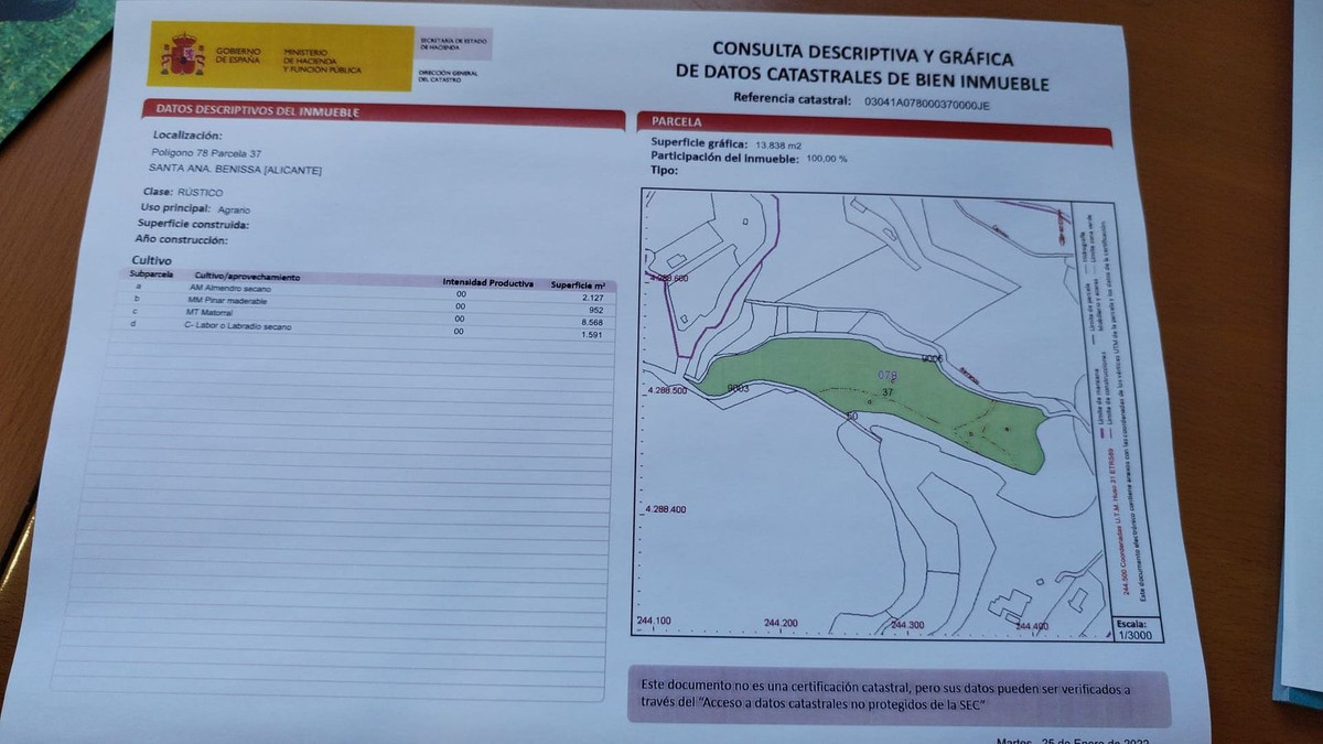 Excellent 13,838 m² farm for sale in a very quiet area, near Benissa with mountain views.