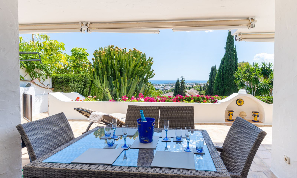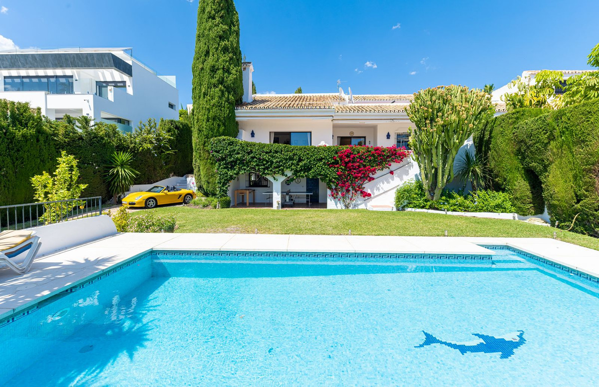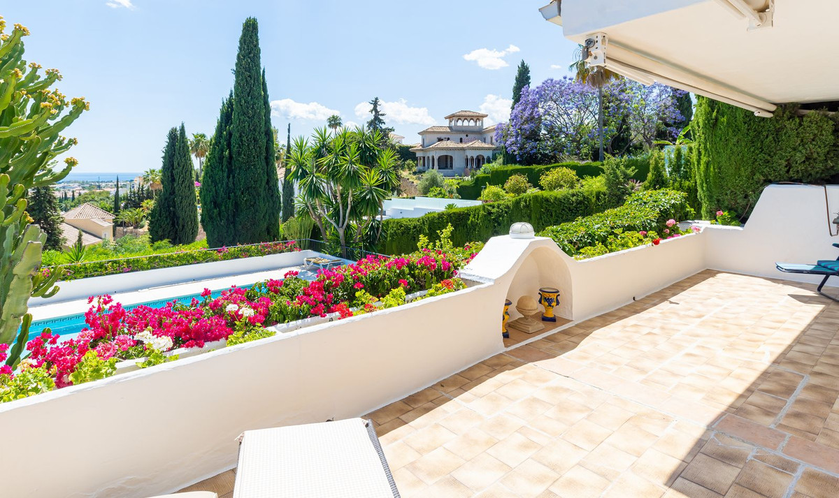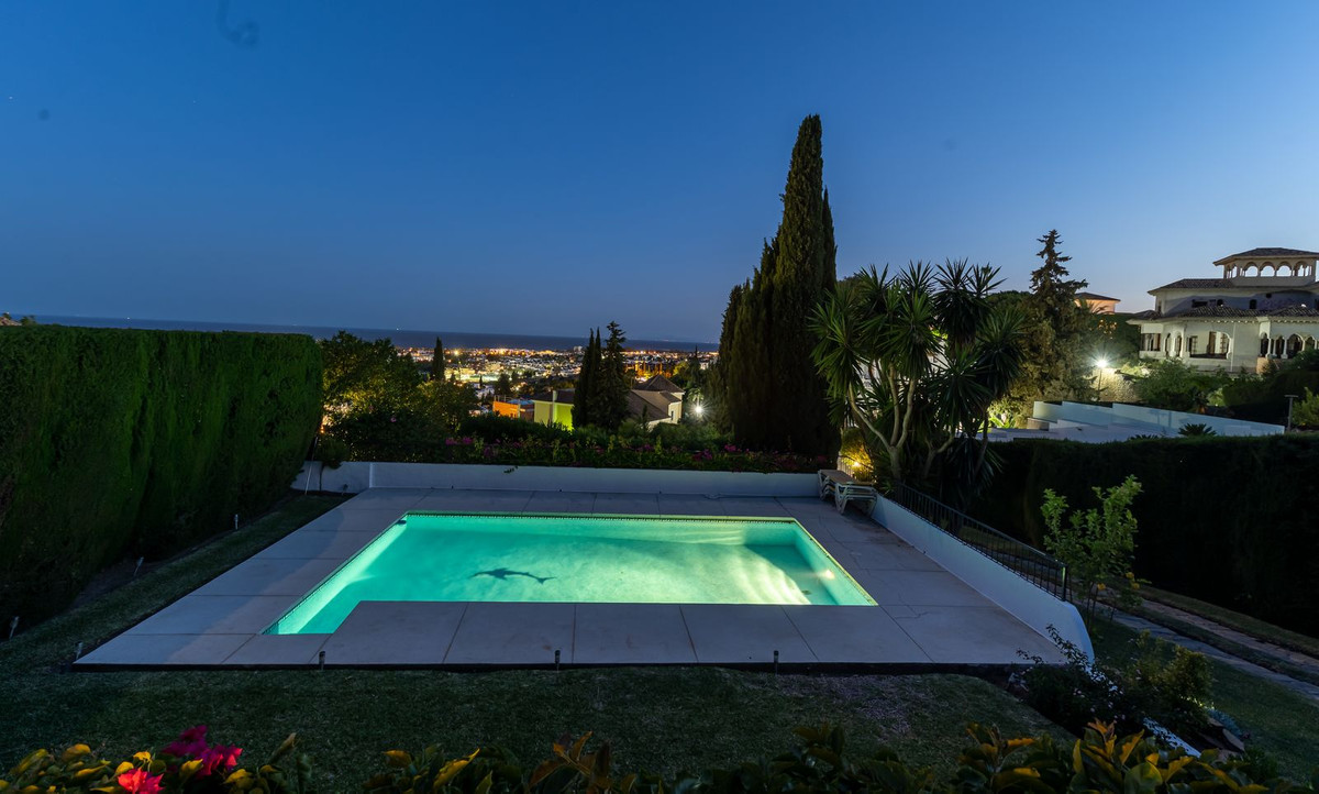 Avundsvärt beläget i en förhöjd exklusiv bostadsenklav kantad av höga palmer och granar i El Paraiso Alto Benahavis, designad i en oklanderligt underhållen privat tropisk palmträdgård med en privat pool som är utsökt inkapslad av hägringutsikter mot havet och de omgivande El Paraiso Hills och Golf Kurs. El Paraiso Alto Benahavis, är en elit önskvärd bostadsplats som konsekvent valts av branschproffs som ett av de bästa rekommenderade golf-, fritids- och bostadsalternativen på hela Costa del Sol.