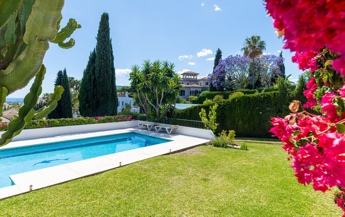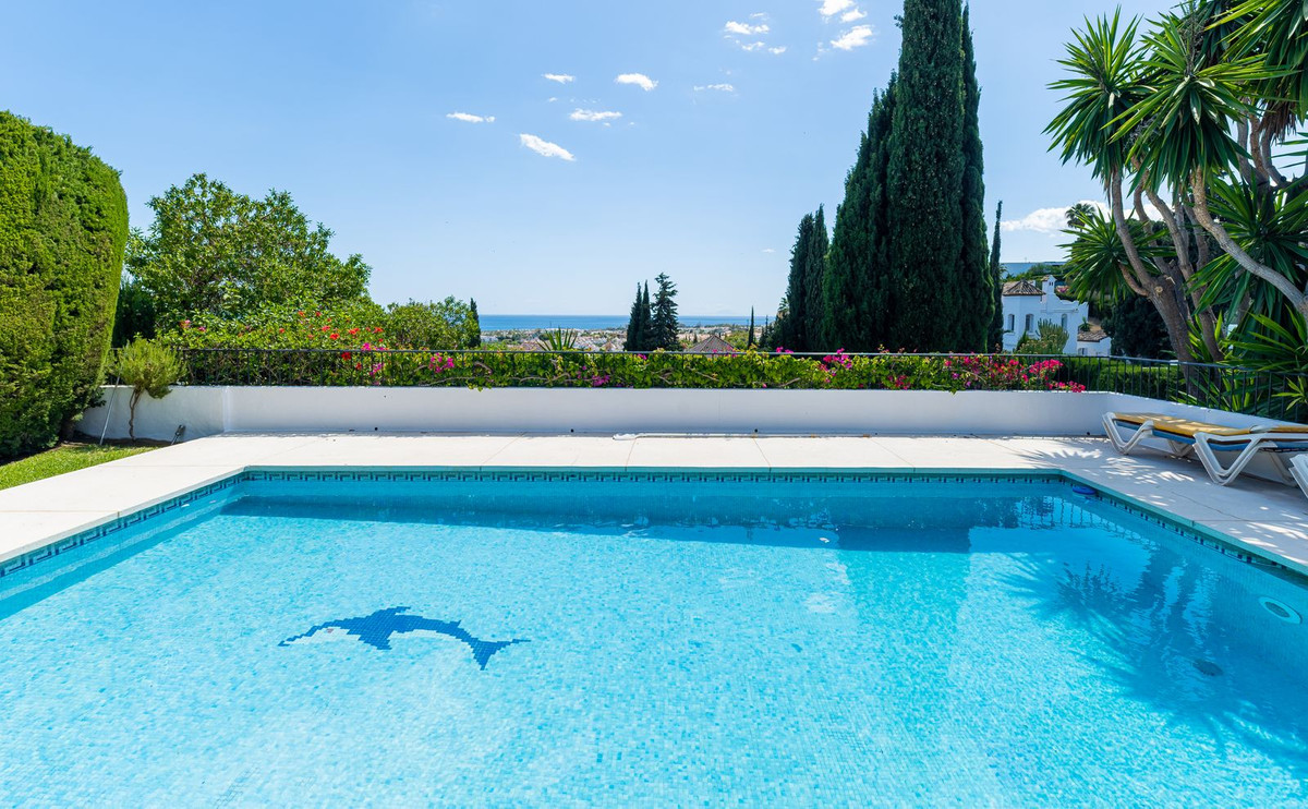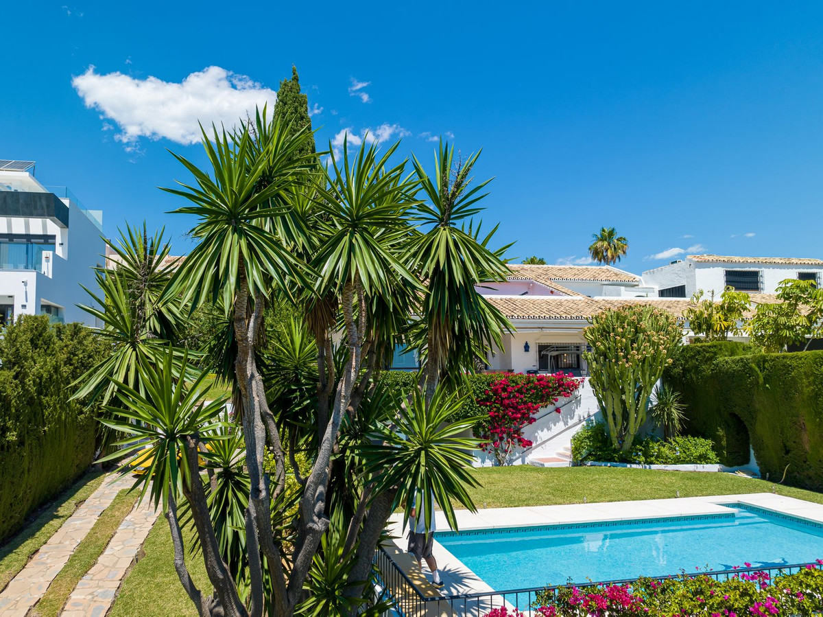 Avundsvärt beläget i en förhöjd exklusiv bostadsenklav kantad av höga palmer och granar i El Paraiso Alto Benahavis, designad i en oklanderligt underhållen privat tropisk palmträdgård med en privat pool som är utsökt inkapslad av hägringutsikter mot havet och de omgivande El Paraiso Hills och Golf Kurs. El Paraiso Alto Benahavis, är en elit önskvärd bostadsplats som konsekvent valts av branschproffs som ett av de bästa rekommenderade golf-, fritids- och bostadsalternativen på hela Costa del Sol.