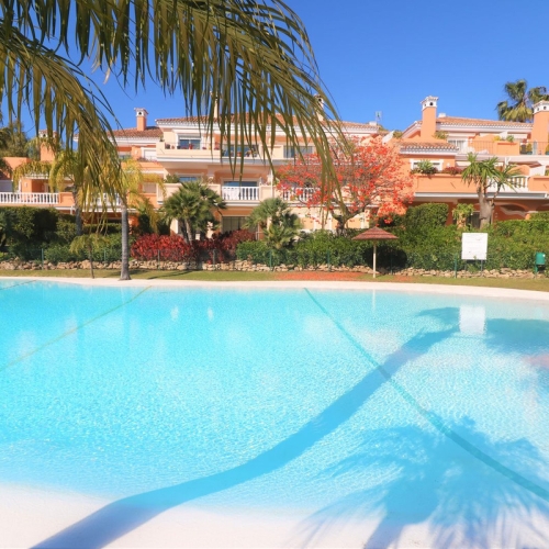 The beautiful Andalucian community features landscaped gardens and access to two pools, one of which is heated. Trendy area between Banus and Estepona,
