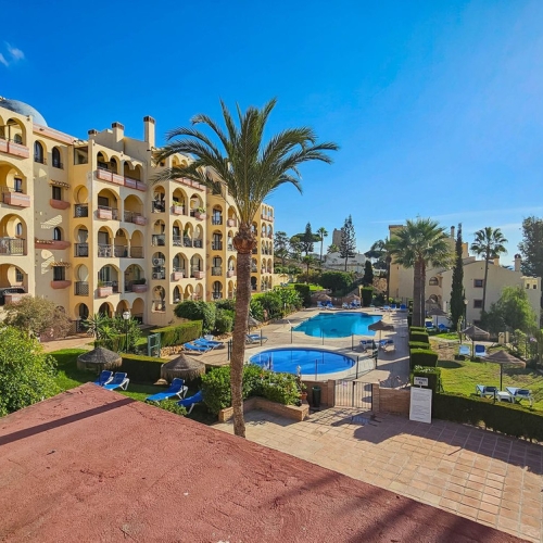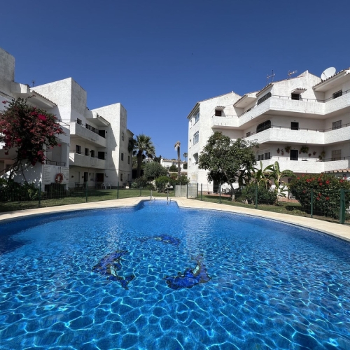 Magnificent and spacious apartment with a perfect south orientation and wonderful views to the Mediterranean Sea, situated in a gated community a few meters from the beach in Torrenueva, Mijas.
