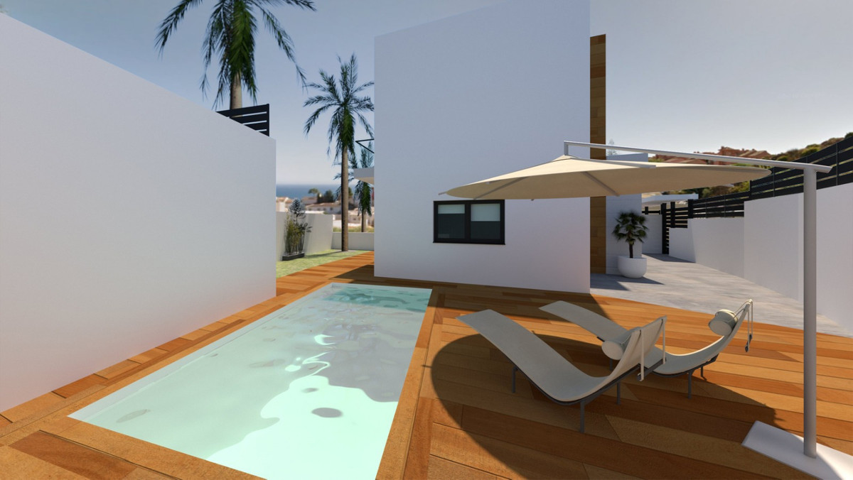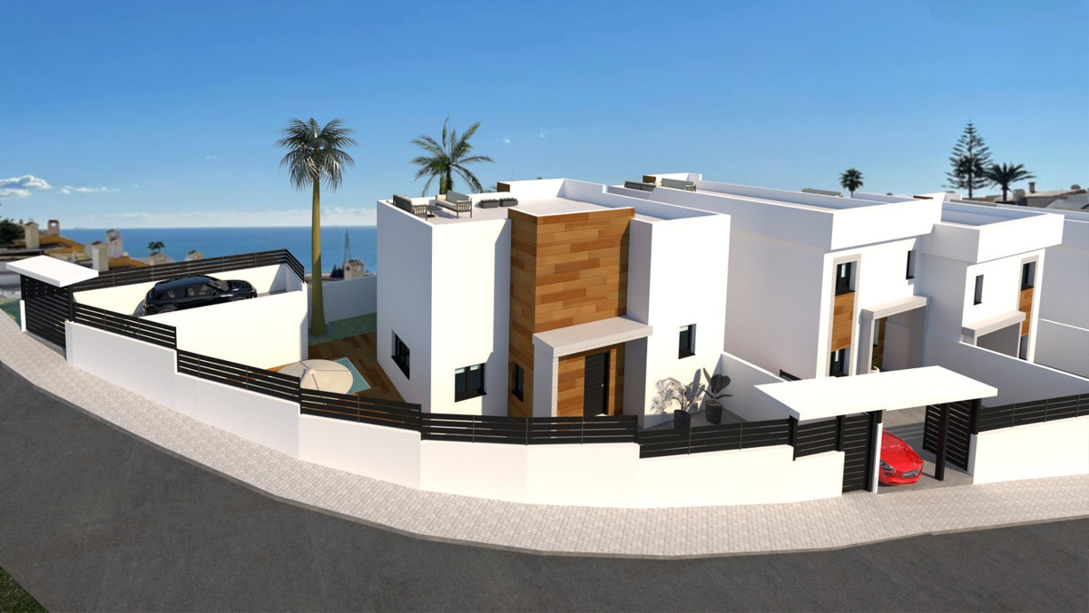 Exclusive in TORREBLANCA, FUENGIROLA. Promotion of semi-detached houses with private pool, garden and basement. 174m2 homes distributed over two floors plus a basement in which two more bedrooms can be built if the client needs it, since it has 44m2 and windows to the garden. Main floor living room, kitchen, toilet and terrace. Upstairs three bedrooms, one of them a suite and a full bathroom to share and a terrace.