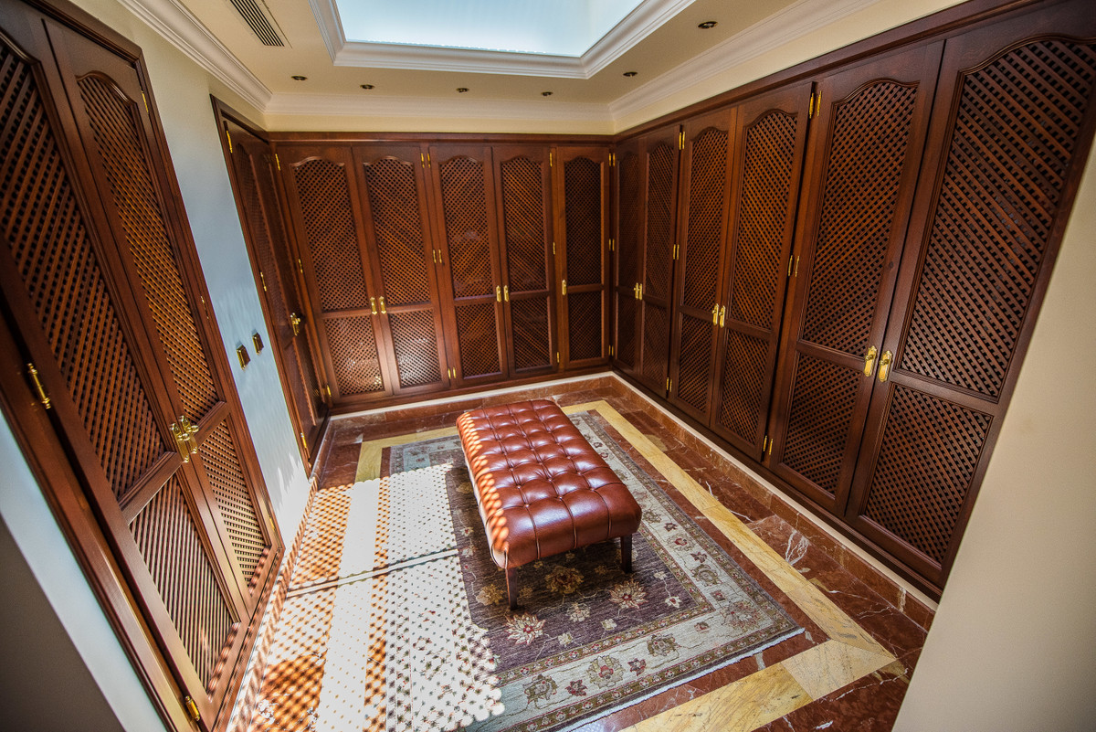 The main house, a splendid Spanish villa, climbs behind the pompous natural stone-built driveway with fountains. Master Bedroom with luxurious marble bathroom and terrace with distant views, 4 further bedrooms with terraces and marble bathrooms and 2 children's rooms with shared bathroom. Spacious living spaces with charming and cosy furnishings completes the Spanish flair. In total, the house also has 6 terraces, kitchen, 2 garages for 4 cars, a spacious and fully equipped fitness center and a beautiful pool landscape with 2 differently tempered pools and a whirlpool. The beautiful green garden leads to a built in the hillside glass studio / yoga / meditation house and a children's playground.