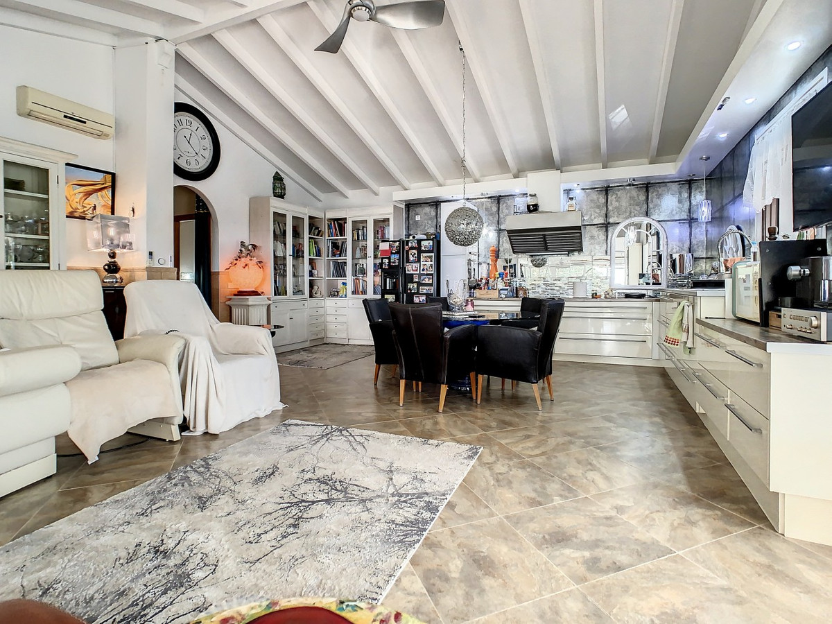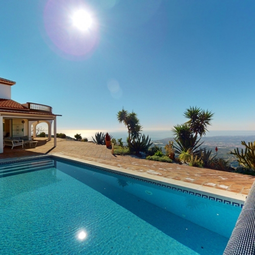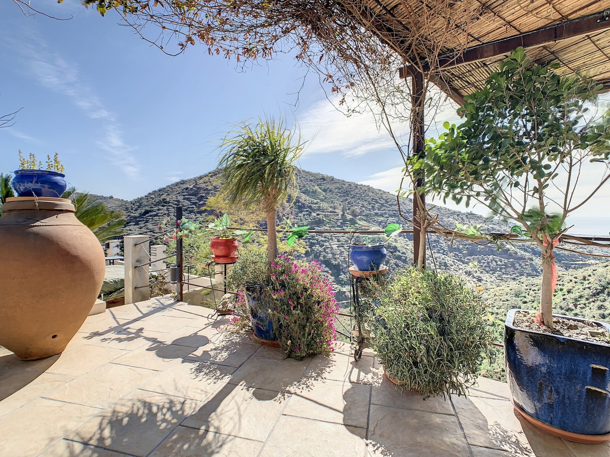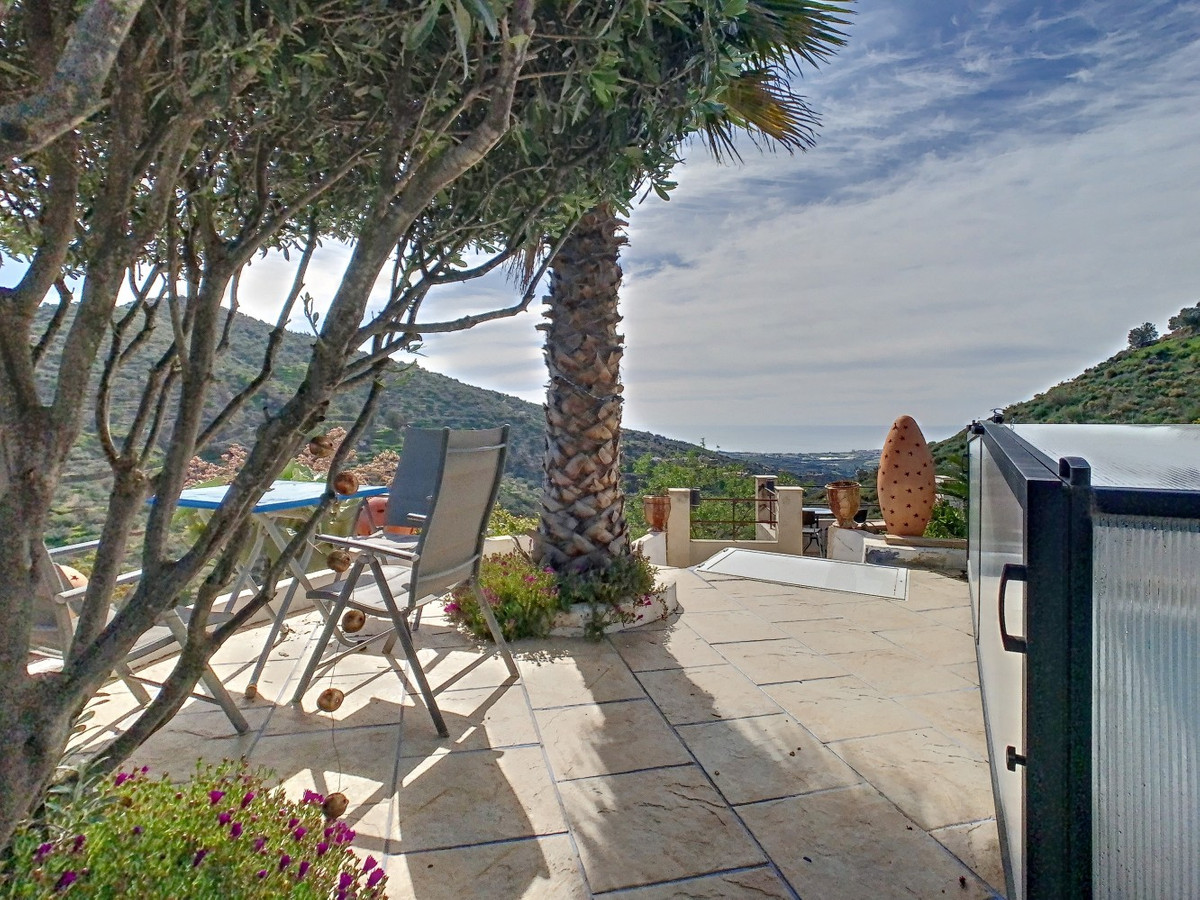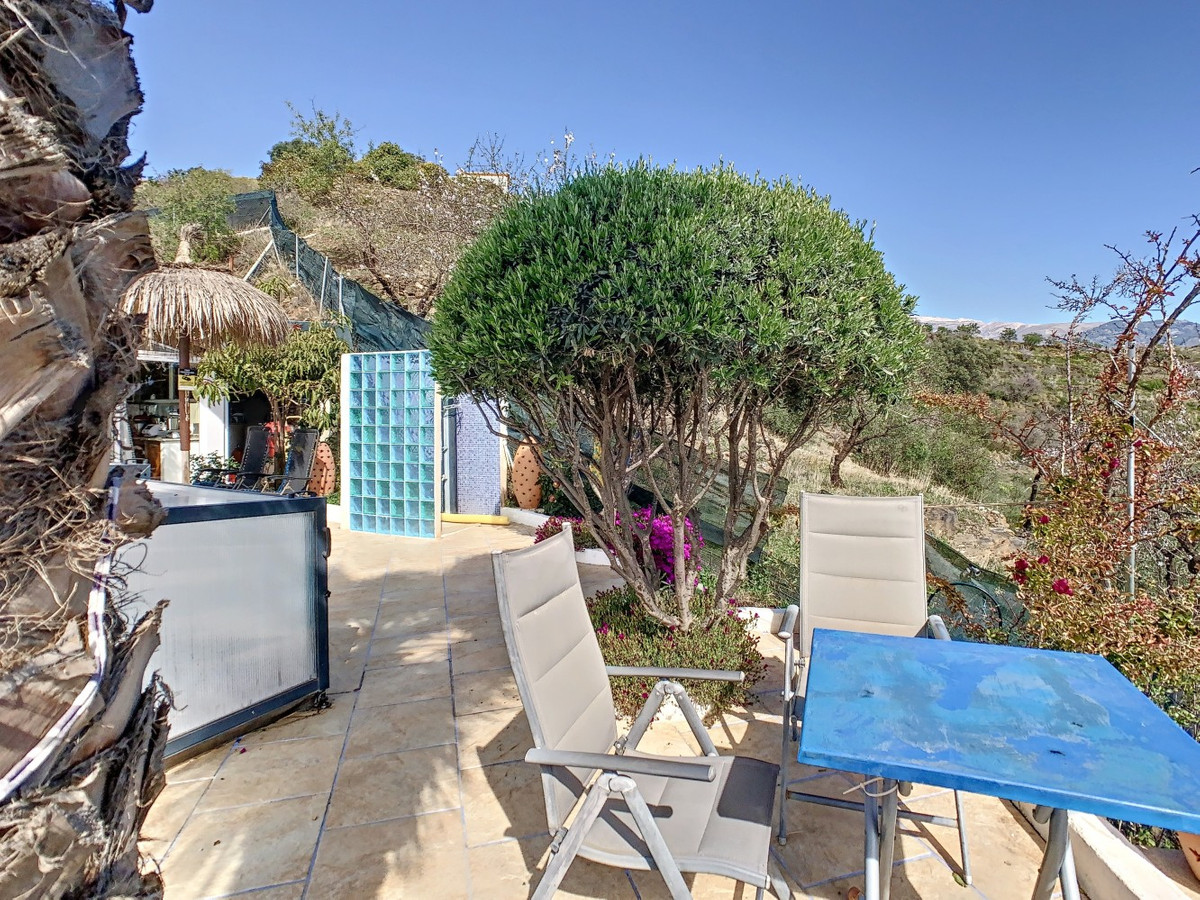 You are looking for a large villa with a heated swimming pool, neatly hidden nearly at the top of a mountain, surrounded by nature with breath-taking views of the valley up to the sea and the village of Arenas? This might just be what you are looking for. At the entry of the property, you find a covered parking space for at least 6 cars and a workshop. From there you step onto a wide porch that surrounds the whole property. In the centre of the house, that ́s all on one level, you find an office, 3 bedrooms, 2 bathrooms (one on-suite), 2 kitchens, an open bbq space, a large sitting/dining room and more sitting areas with views to the outside through French doors. Around the porch there is an array of different privative sitting/sunbathing spaces where it is just a dream to be. Here you also find the heated swimming pool, palm trees, an exterior bedroom and a passage leading to little romantic benches with fantastic views all around the foot of the property. There is also an outdoor kitchen. This property is well finished and comes with all the amenities. It is perfect for people that are fond of comfort and privacy. We are pleased to be able to present this dream property to you soon, either personally or via virtual viewing. Because this world, it is unique - just like our Axarquía. In Andalusia. On the Costa del Sol. Here, on the sunny side of life...