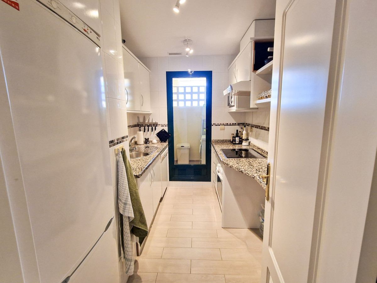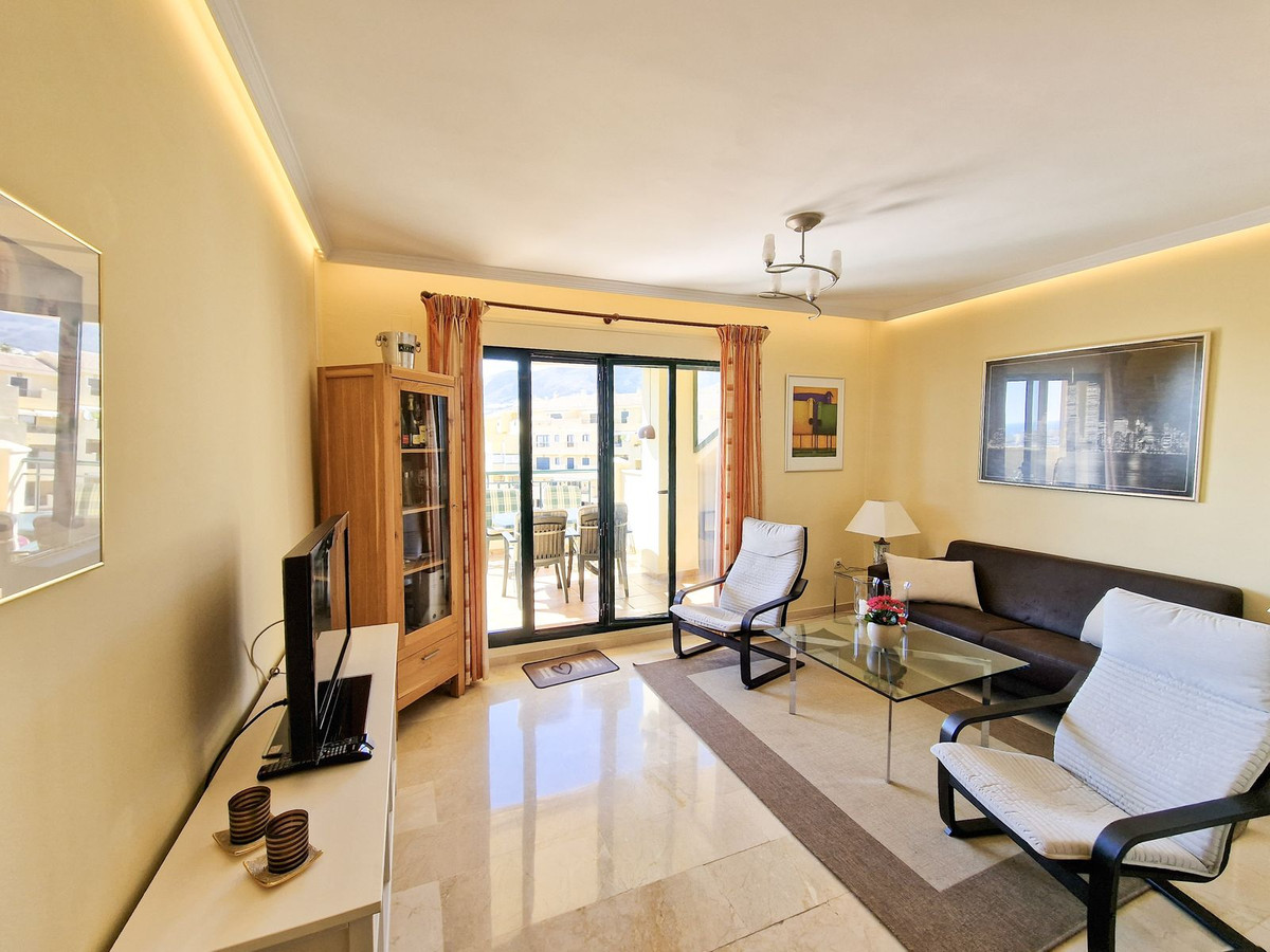 The apartment is designed to offer a comfortable and relaxing astmosphere, with a two well-sized bedrooms, one of them with direct access to the terrace, build in wardrobes. Fully-equipped kitchen and spacious living room with a dinning- and a sofa section, that leads out onto the private terrace. The terrace is the perfect place to relax and take in the stunning views and it's partly covered with sliding glass-curtains, so it can be enjoyed all year around.