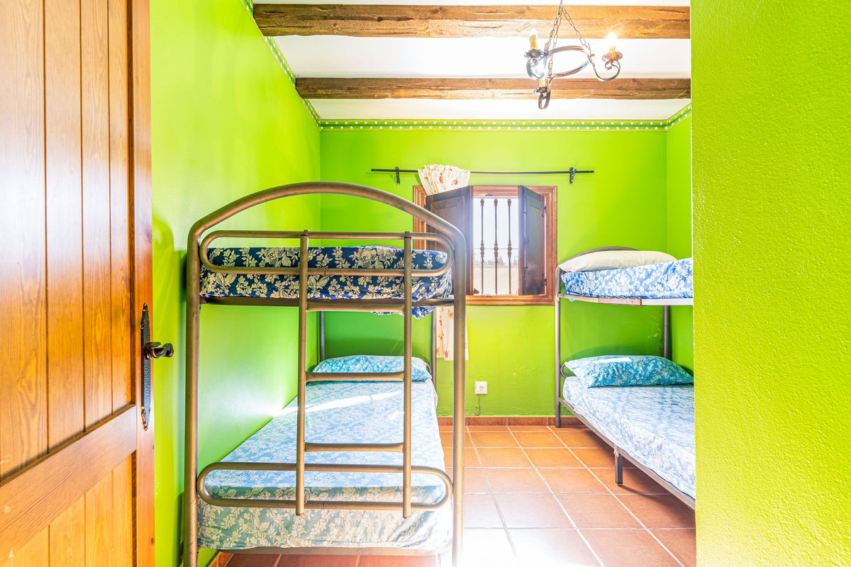 Inside, the finca boasts a traditional Andalusian interior, complete with beautiful wooden beams throughout the house. The spacious independent kitchen is perfect for cooking family meals, while the living room with fireplace is warm and inviting. Outside, there's a fenced football area for kids to play, as well as a section with fruit trees, making it the perfect place to enjoy the great outdoors and soak up the Spanish sunshine.