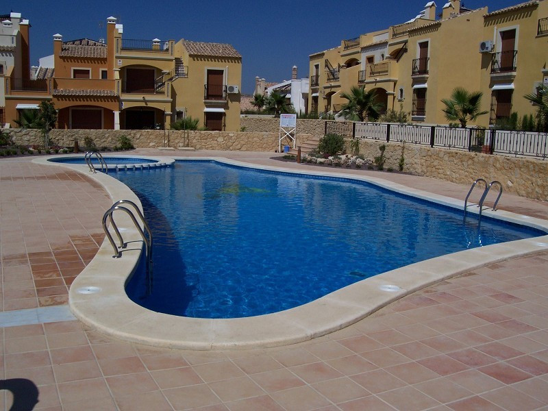 This is a 2 bedroom 2 bathroom bungalow nicely located close on the golf course with a good selection of bars and restaurants literally around the corner. The property benefits from having great views from the private solarium and backs out onto a secluded courtyard with a lovely communal swimming pool, the feature of this secure gated complex.