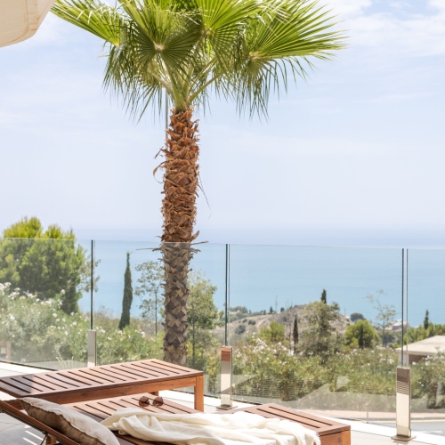 Lyx och havsutsikt: Varje lägenhet har 3 sovrum, inbyggda garderober och lyxiga badrum. Det stora sovrummet på 51 m² har ett omklädningsrum och eget badrum, alla med tillgång till terrassen och havsutsikt.