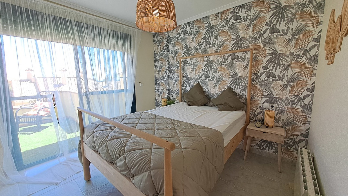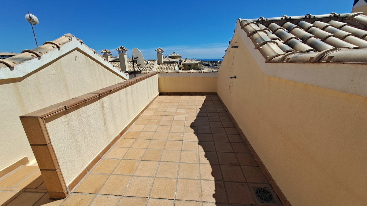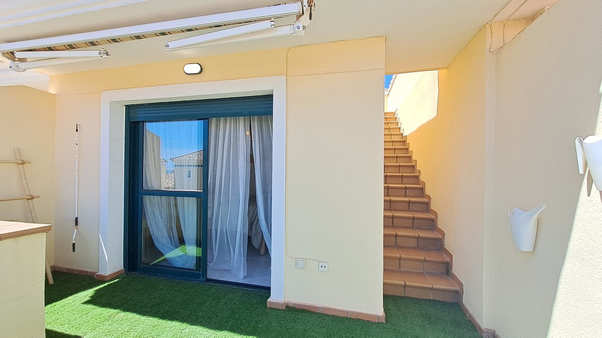 Upstairs we can find the master bedroom with double built in wardrobe and private terrace, a second bedroom and a bathroom with bathtub. This property has roof terrace where you can enjoy sea views.