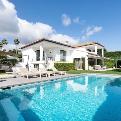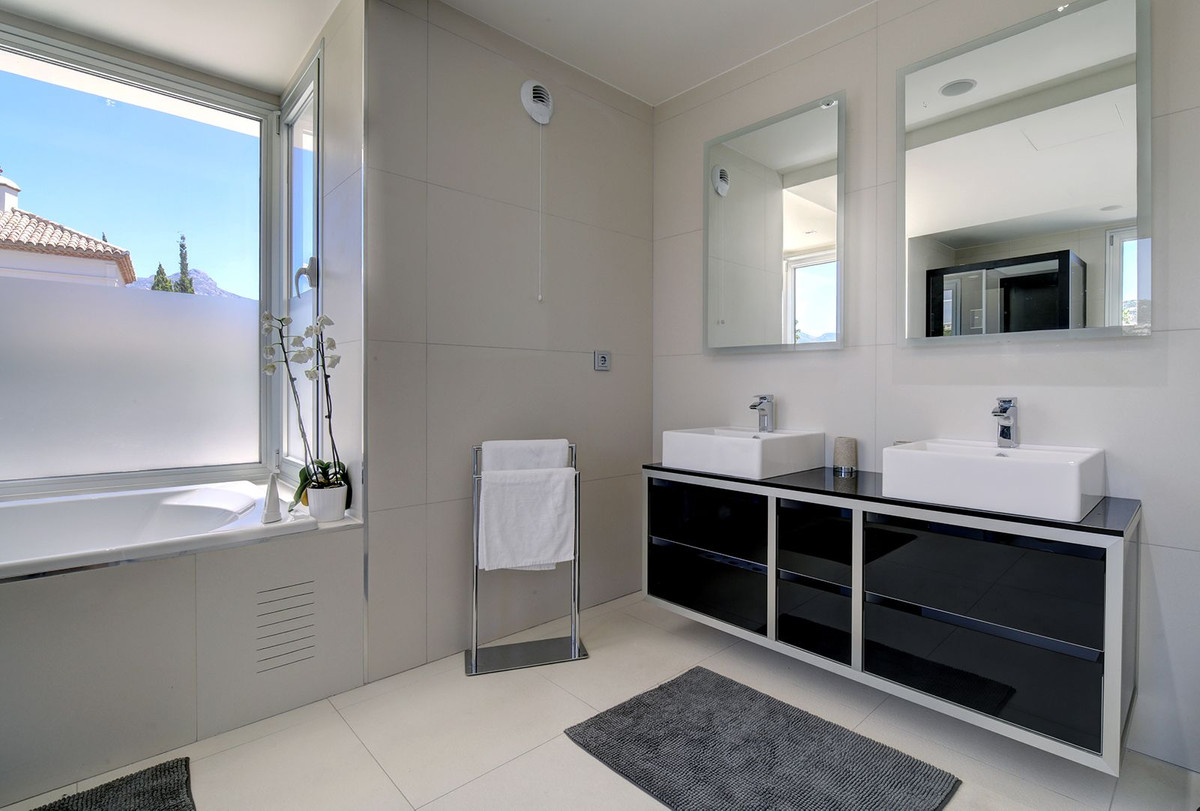 Läget för denna villa är verkligen fantastiskt. Det är omgivet av golfbanor men alla bekvämligheter finns i närheten. Det liv och rörelse i världsberömda Puerto Banus ligger drygt fem minuters bilresa bort, liksom staden San Pedro. Malagas flygplats ligger 45 minuter bort. Allt detta till hands och ändå ligger huset i ett lugnt bostadsområde med utsikt, lugn och ro.