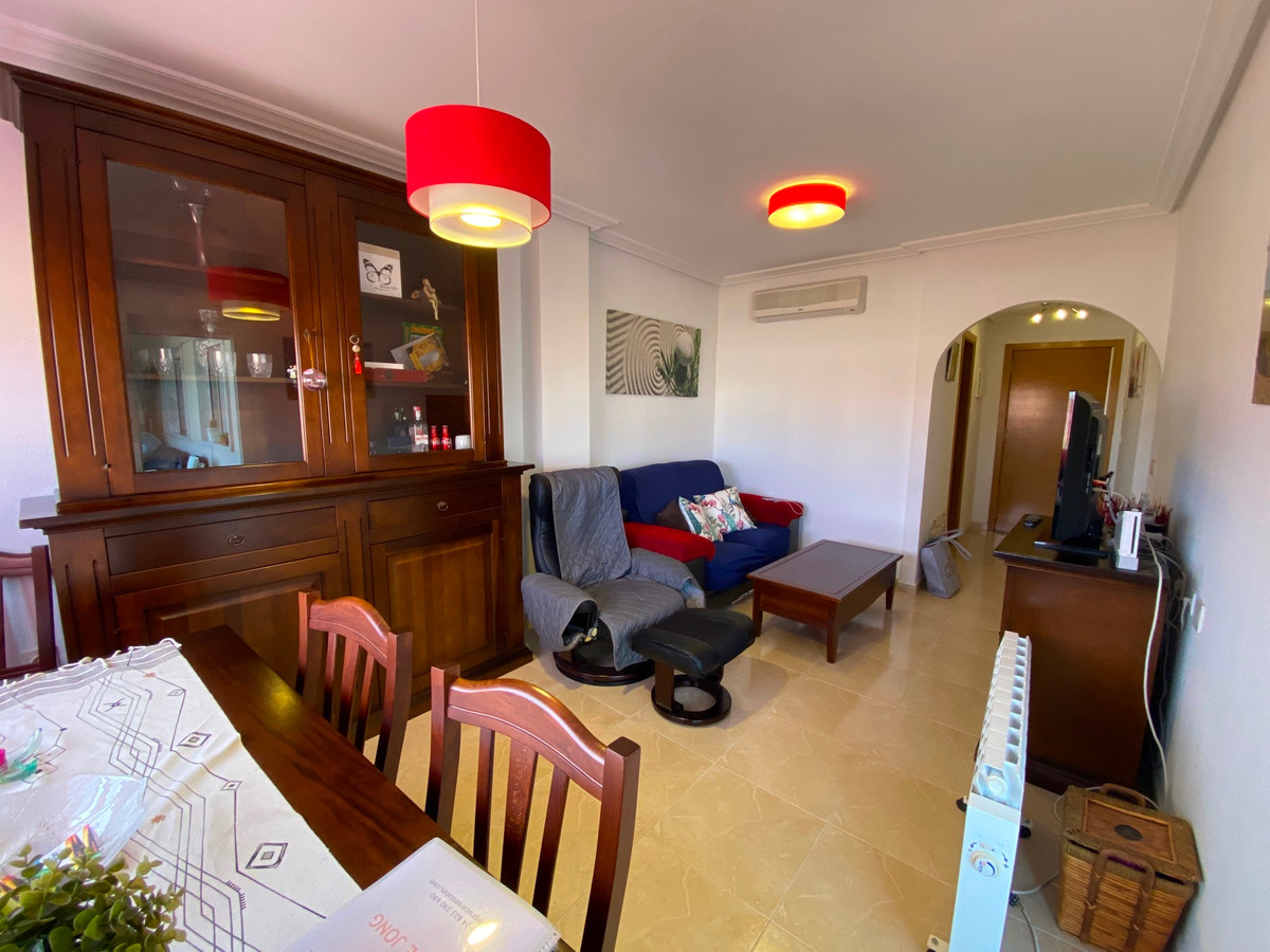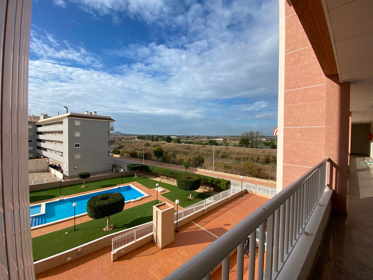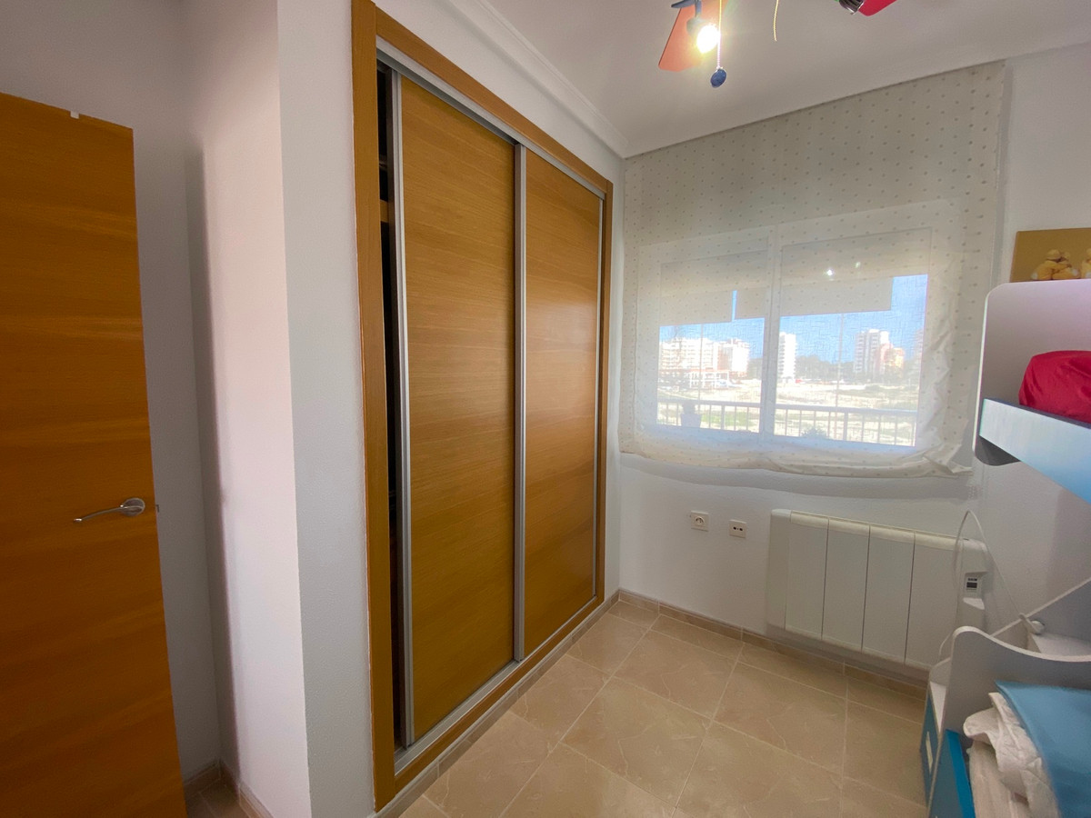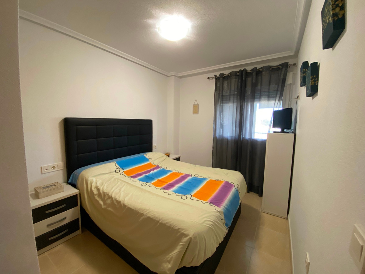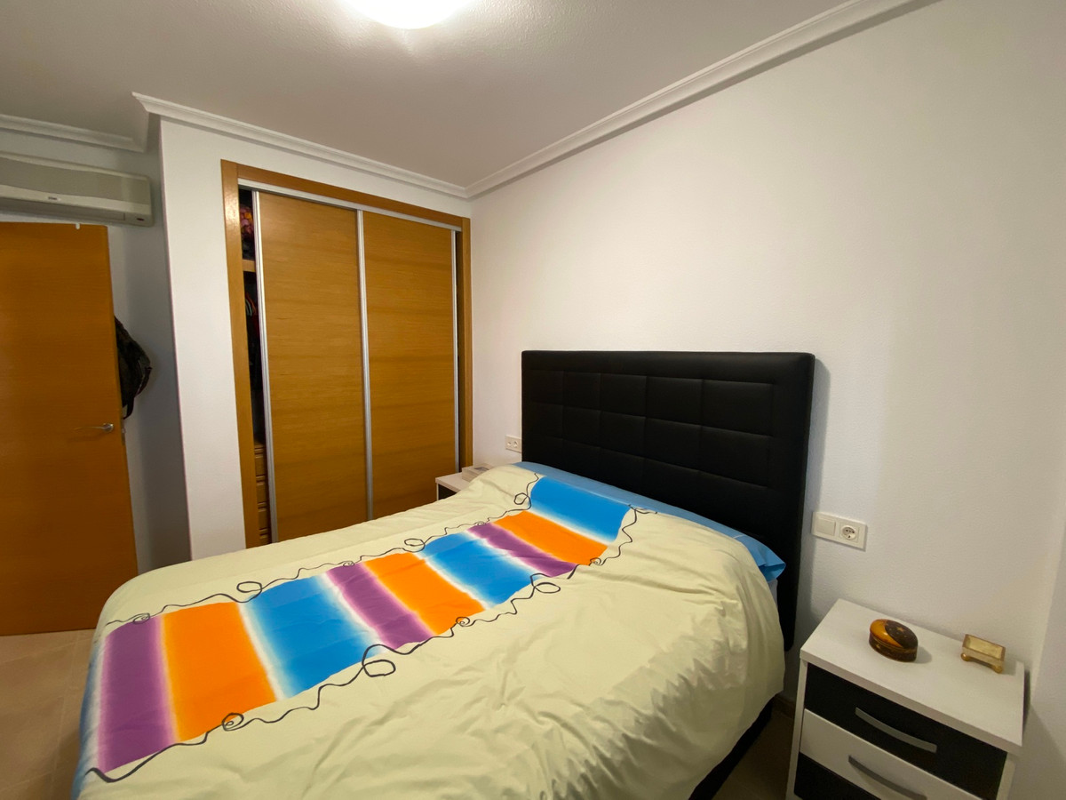 This beautiful apartment is located in Guardamar Del Segura, port area. The house is on the third floor and has unobstructed views. There are 2 bedrooms with fitted wardrobes and 1 bathroom. Through the living and dining room you reach the large balcony, which is closed with glass. There is a spacious kitchen with a separate utility room which is currently used as a laundry room. The urbanization has a private swimming pool, playground and paddle tennis court. This apartment also includes 2 garage spaces located under the apartment. This apartment is sold as good as furnished and ready to move into.