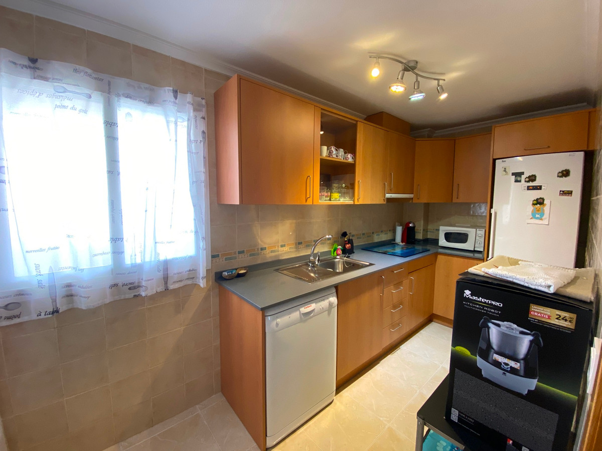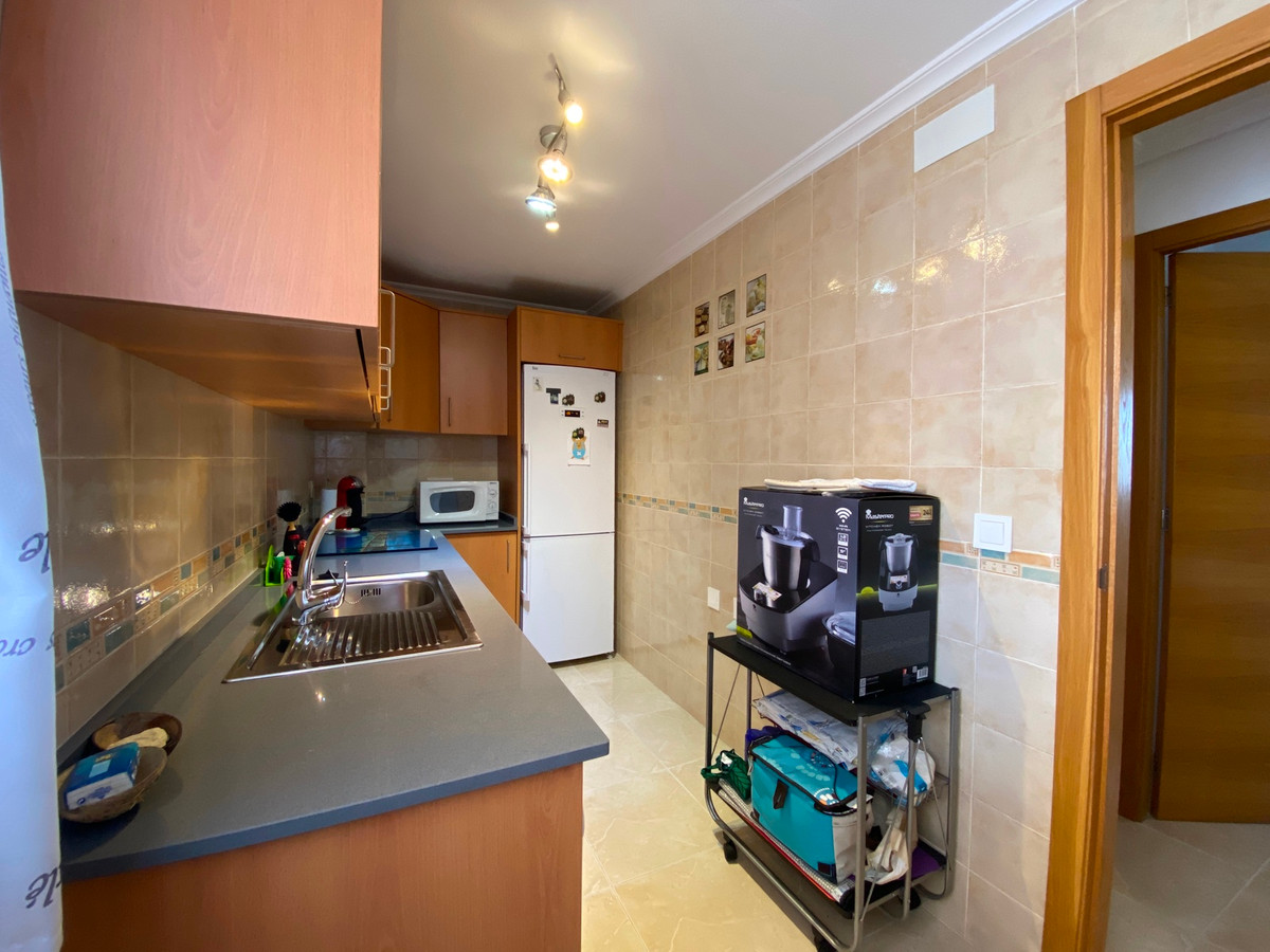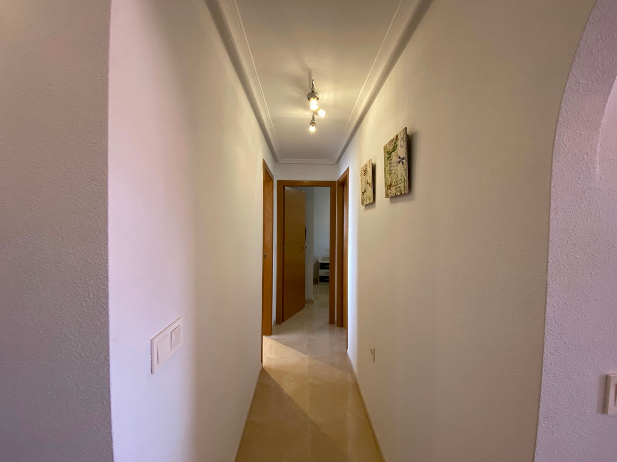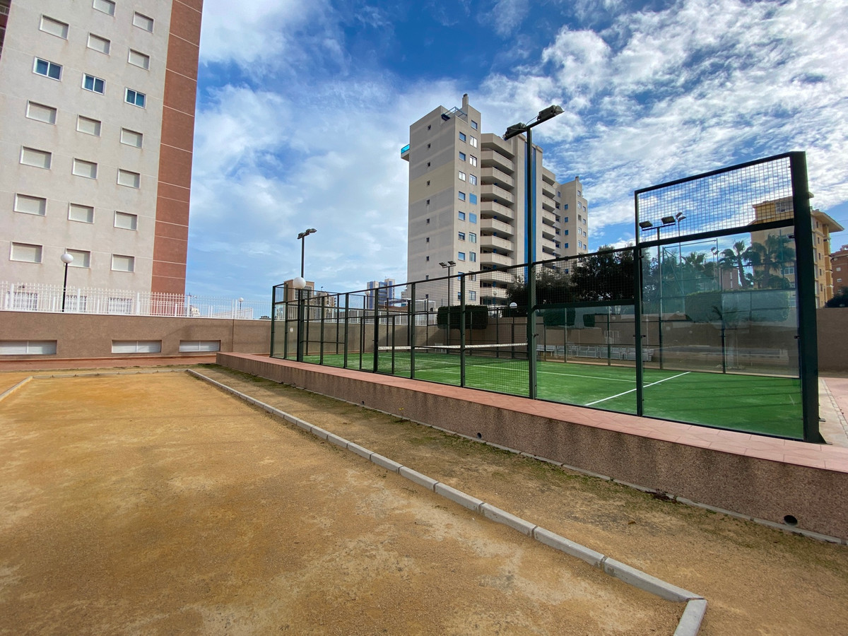This beautiful apartment is located in Guardamar Del Segura, port area. The house is on the third floor and has unobstructed views. There are 2 bedrooms with fitted wardrobes and 1 bathroom. Through the living and dining room you reach the large balcony, which is closed with glass. There is a spacious kitchen with a separate utility room which is currently used as a laundry room. The urbanization has a private swimming pool, playground and paddle tennis court. This apartment also includes 2 garage spaces located under the apartment. This apartment is sold as good as furnished and ready to move into.