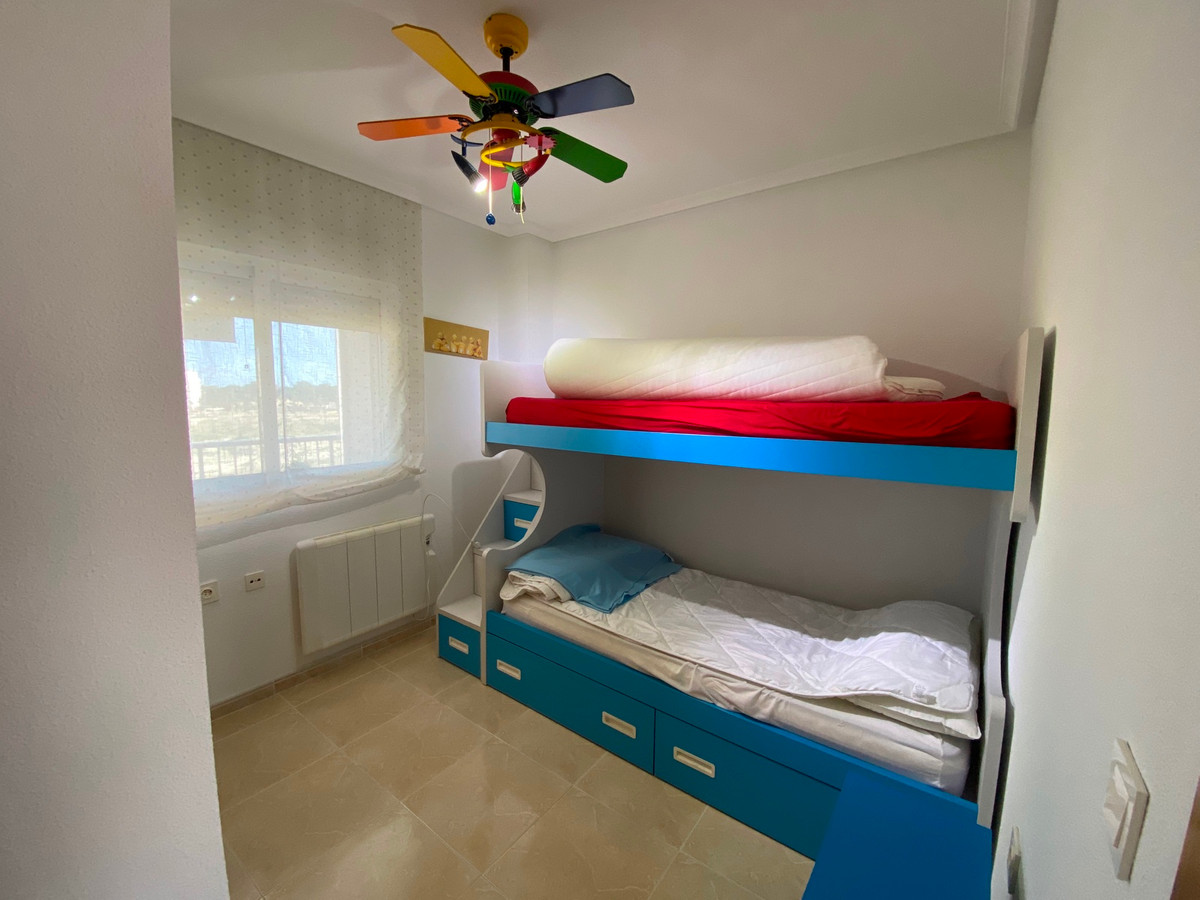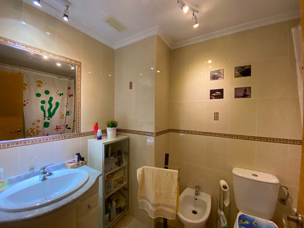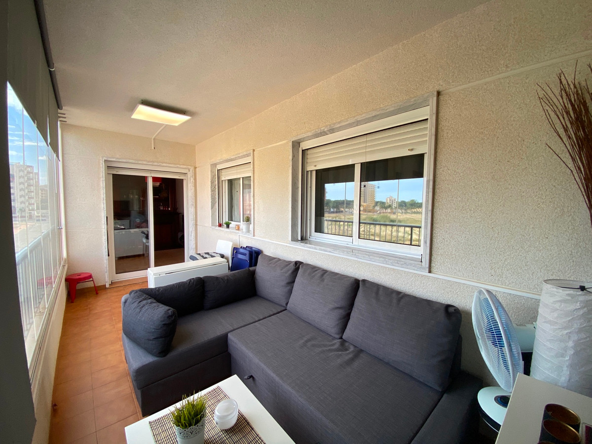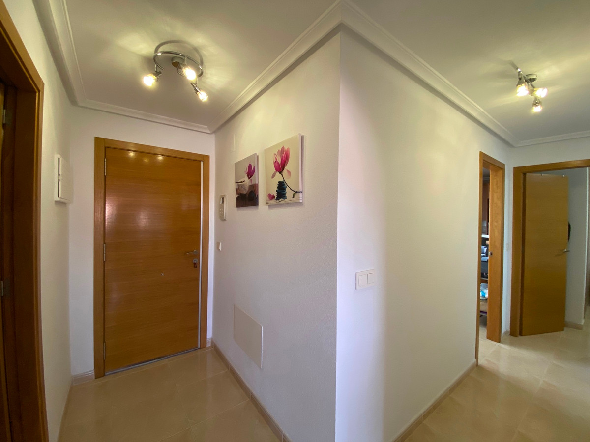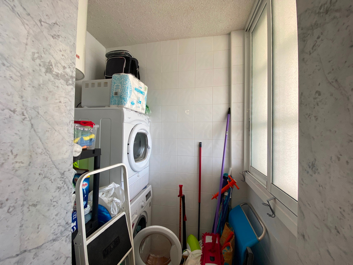 This beautiful apartment is located in Guardamar Del Segura, port area. The house is on the third floor and has unobstructed views. There are 2 bedrooms with fitted wardrobes and 1 bathroom. Through the living and dining room you reach the large balcony, which is closed with glass. There is a spacious kitchen with a separate utility room which is currently used as a laundry room. The urbanization has a private swimming pool, playground and paddle tennis court. This apartment also includes 2 garage spaces located under the apartment. This apartment is sold as good as furnished and ready to move into.