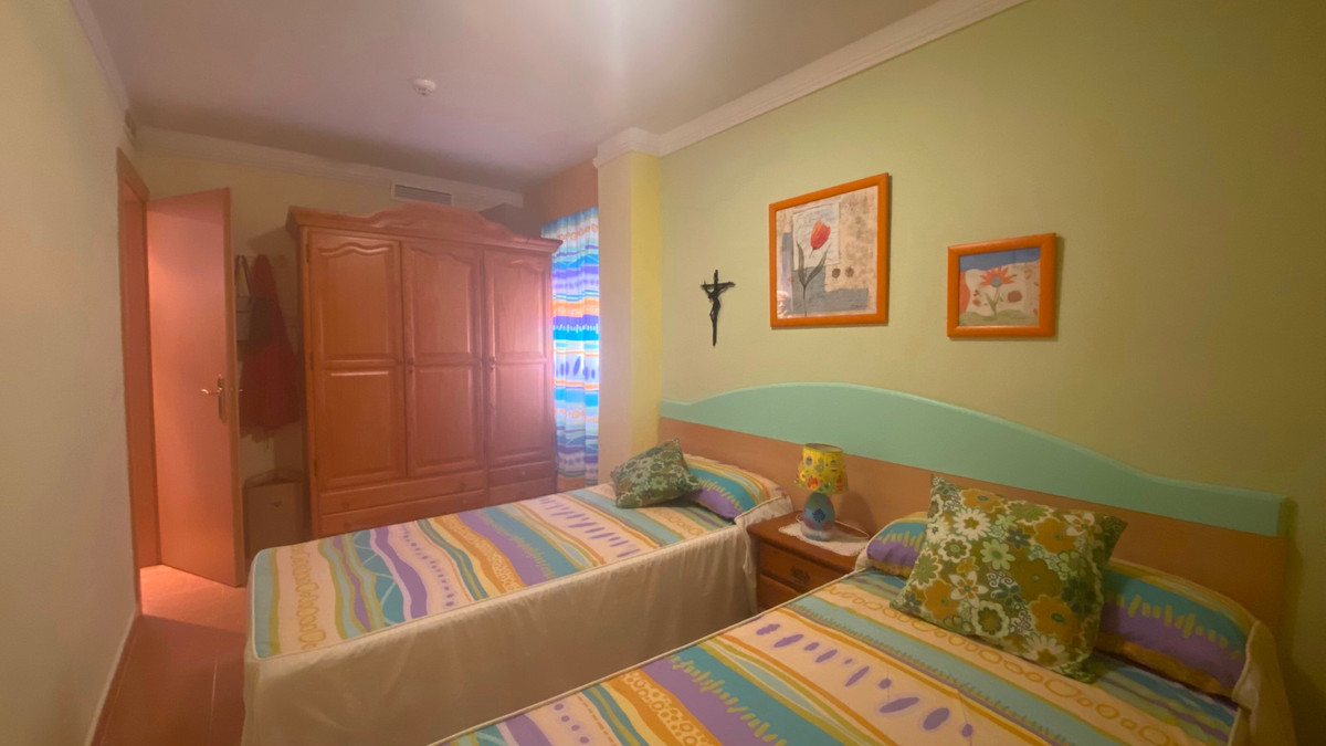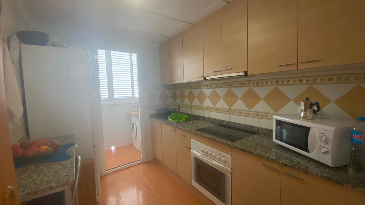 We present here a beautiful 2 bedroom, 1 bathroom apartment on the third floor of the Colina Real urbanization in Guardamar. Through the front gates you enter the well maintained common areas, the common areas and corridors are impressive. With the stairs or elevator you reach the third floor. The house has a living and dining room, separate spacious kitchen with a utility room. Through the living room you have access to the private balcony to enjoy the beautiful view, relax or enjoy the sun.
