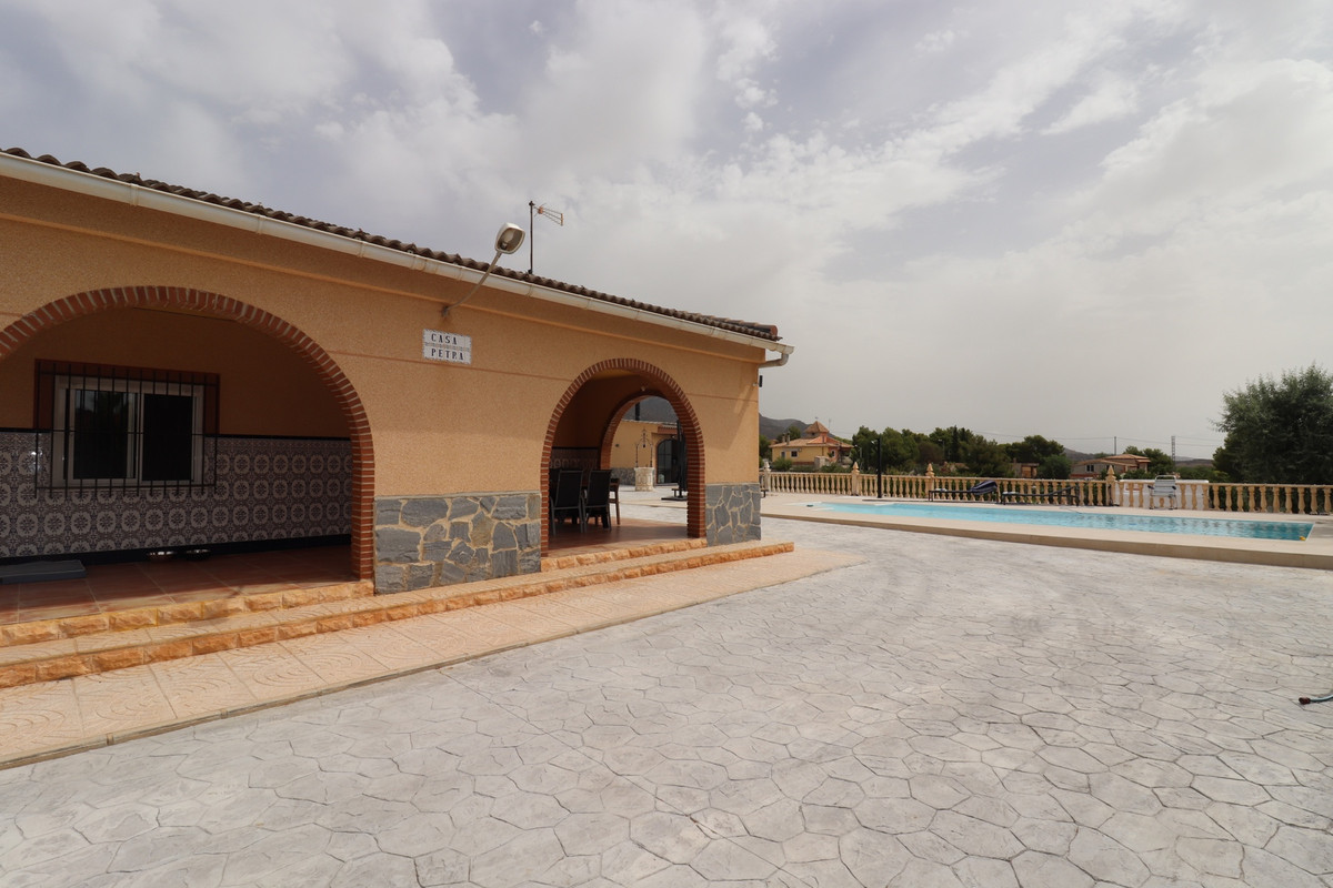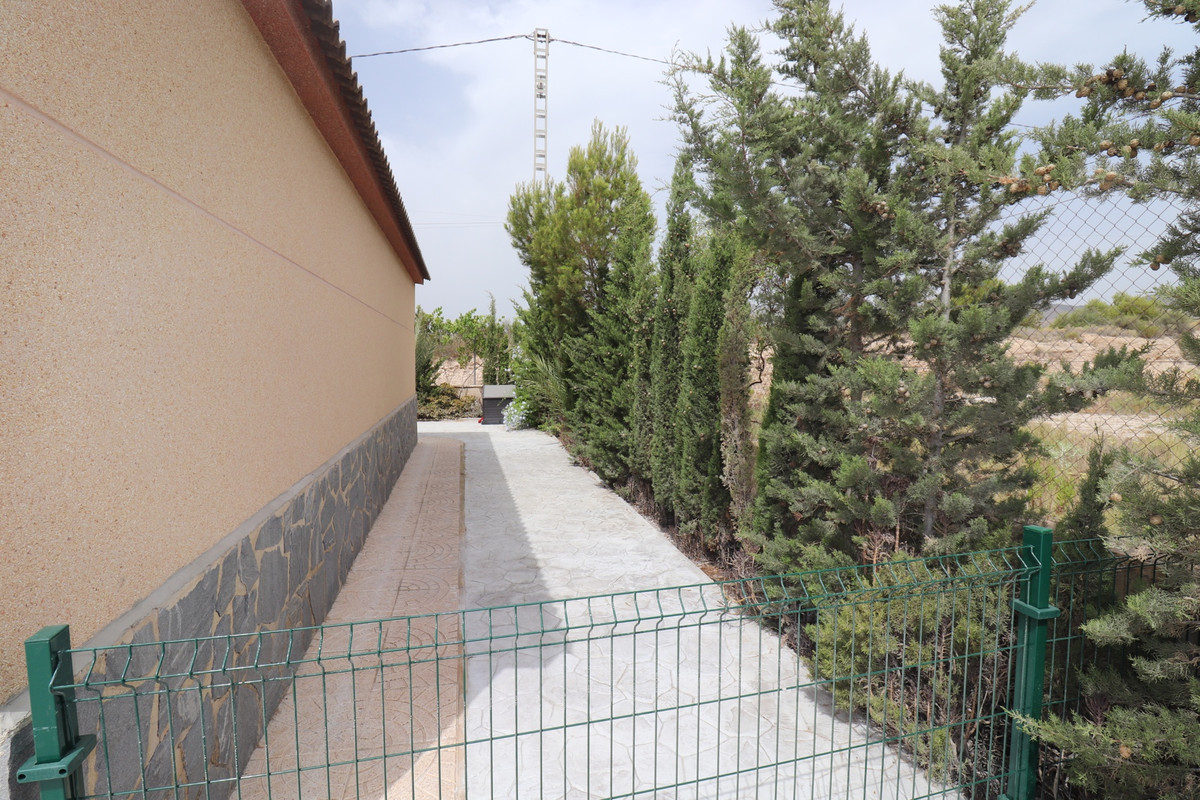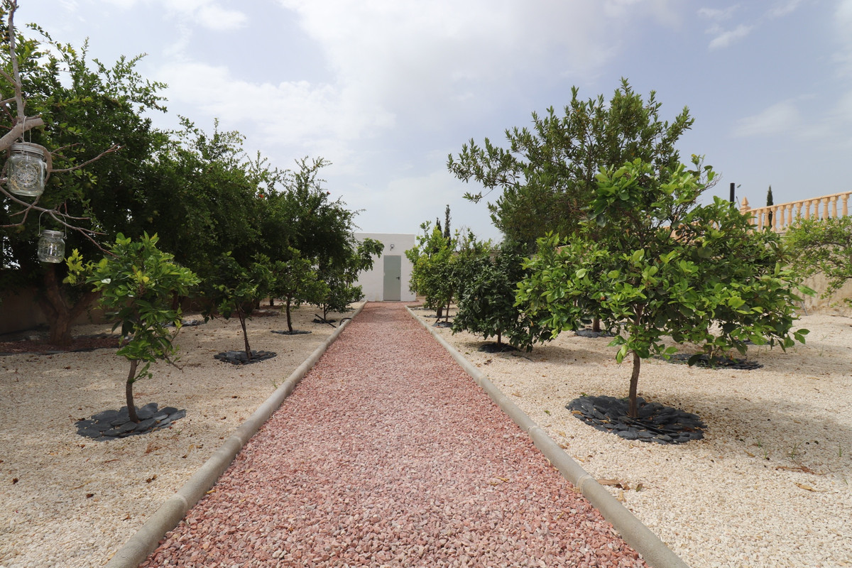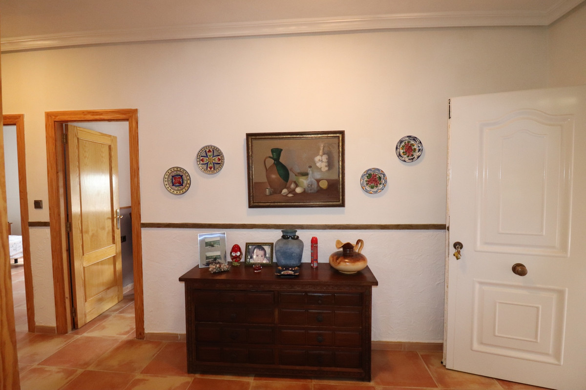 New listing direct from the owner! Beautiful detached country house in Albatera. This beautiful finca has neighbors but is privately located and has 4 very large bedrooms, each with air conditioning hot and cold. Upon entering the hallway, the living room and open kitchen are located on the left side of the house. The fully renovated bathroom has a walk-in shower and double sink. The open American kitchen is fully equipped with all necessary appliances and is in direct contact with the living room. The large living room has a fireplace but also a pallet burner and again an air conditioning cold and hot. The house is connected to electricity and water company Albatera. The wide veranda with direct contact with the large new swimming pool 10 x 5 and a separate outdoor kitchen with a professional barbecue makes outdoor living in this country house very pleasant. The large gardens and an olive grove give you a pleasant feeling of plenty of space and privacy. Located in a quiet area, 20 minutes from the beaches.