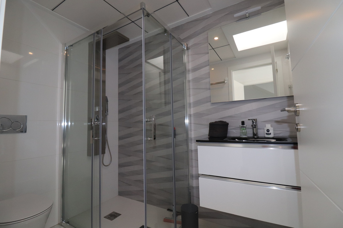 The house is fully equipped and also has a double garage. The house is supplied with hot water through a separate energy-efficient hot water pump. This villa is finished with high-quality materials and fitted with chrome-plated glass throughout the entire stairwell. In addition to the large sunny solarium, this villa also has a cozy backyard 30m2 that provides direct access to the well-maintained swimming pool with sunbathing areas around.The garage has space for 2 cars and space for enough storage 50m2. This property has a lot to offer.