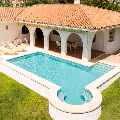 New built modern south facing villa, just 250m from the Mediterranean Sea near San Pedro town. The property is built over three floors plus rooftop terrace with panoramic views to mountains and the sea.