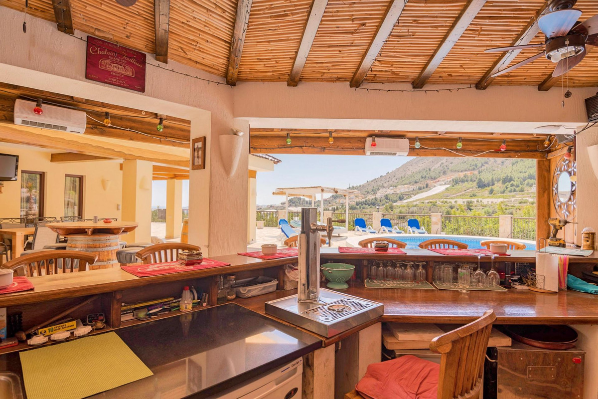 The house has terraces all around, so always a shady spot, and next to the pool a large outdoor kitchen, annex bar, which can be closed in the cooler winter months, so it can be used all year round.