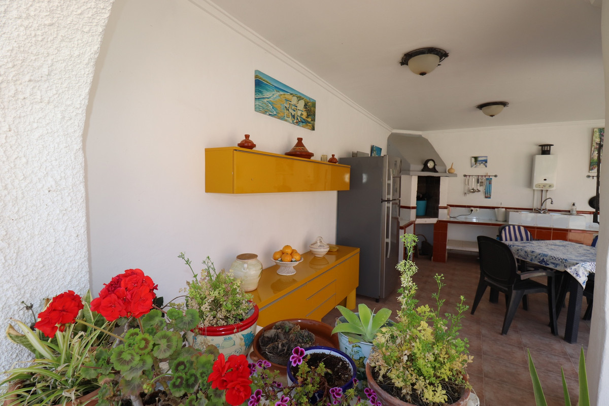 The fourth bedroom with its own living room is located on the ground floor, in addition there is a spacious wine cellar and storage space that can be further furnished for use. The swimming pool is 13 x 6 M with a landscaped terrace with an adjacent outdoor kitchen with BBQ and bathroom, perfect for enjoying the Spanish outdoors to the fullest. The property has a double garage, a log cabin and an outbuilding that can serve as an extra guest house or multi-purpose room. The plot is more than 11,000 M2, a large part of the garden, however, has been landscaped in a maintenance-friendly manner. The house has recently been fitted with solar panels.