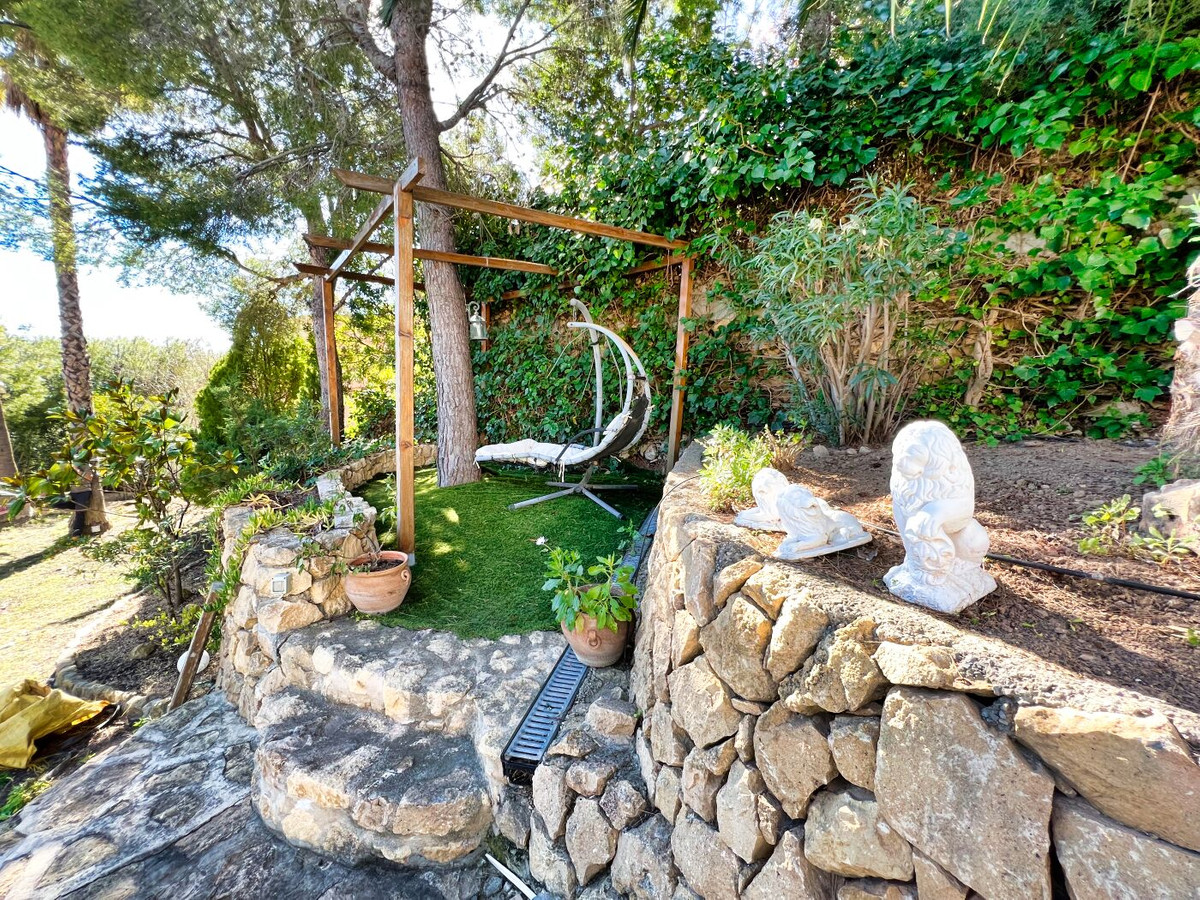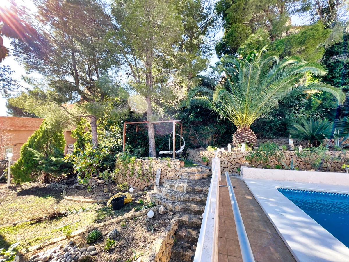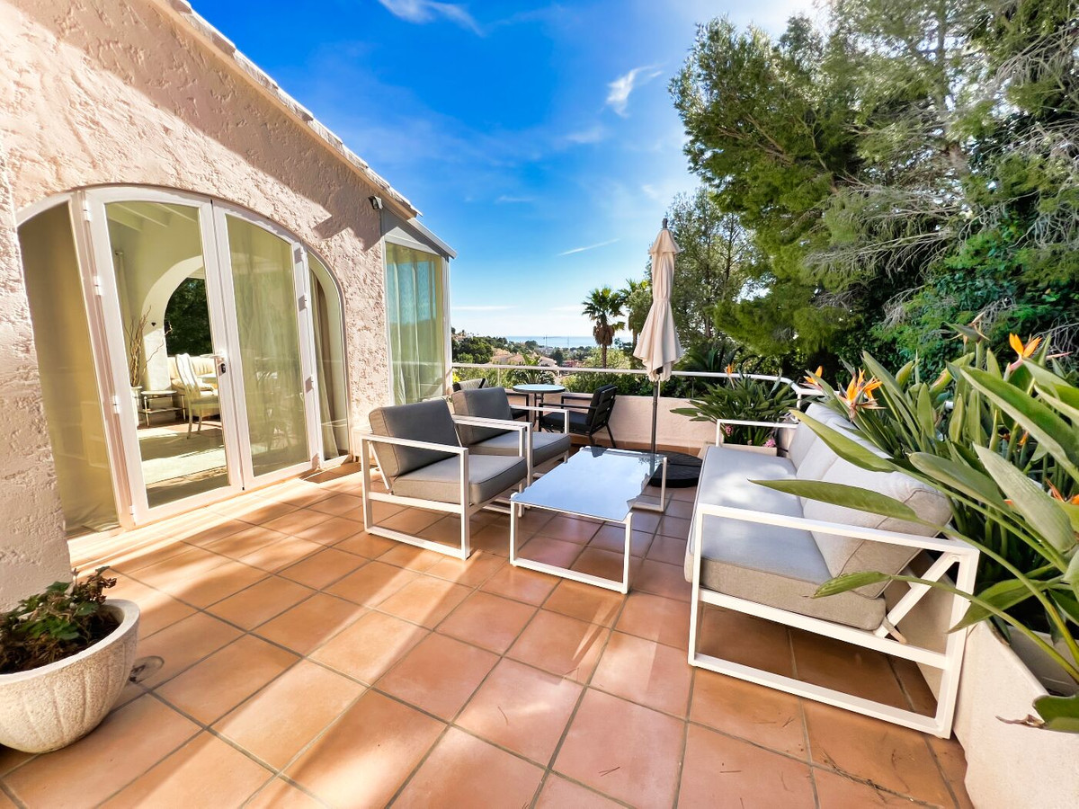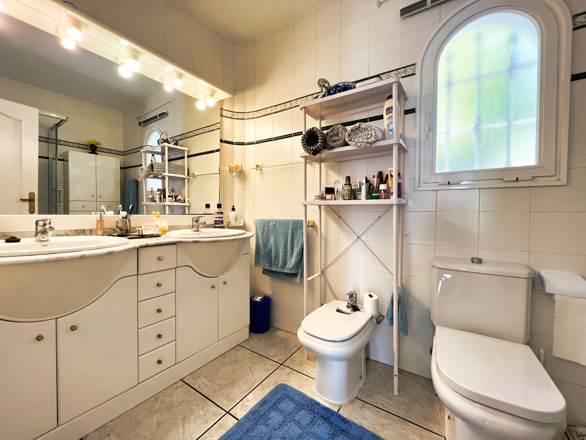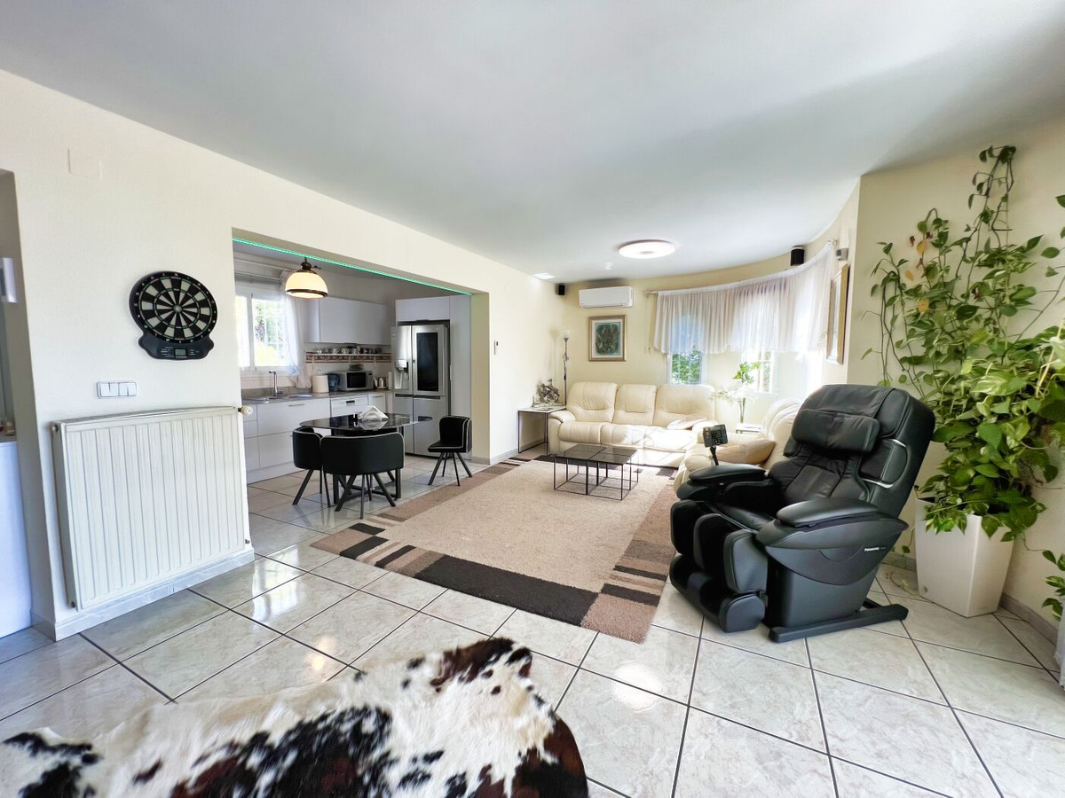 This villa is located in a very quiet residential area of Altea, just 400 metres distance to the Don Cayo Golf Club and 1.3km distance to the center of Altea la Vella with all the restaurants and shops. The property is built on three levels with the living / dining room, open plan kitchen, master bedroom with en-suite bathroom and guest toilet being on the top floor which is also where the main entrance is located. On the middle floor we find another living room with bar, 3 bedrooms, a laundry room and one bathroom. On the lower floor is the guest loft with bathroom and the spa area with jacuzzi, sauna and bathroom. On the same level as the guest loft we have an outdoor summer kitchen with barbecue and sitting area just by the heated saltwater swimmingpool. The garden area of the villa is well kept and there is as well a nice pavillion with gas fireplace where you can enjoy the outdoors even in winter.