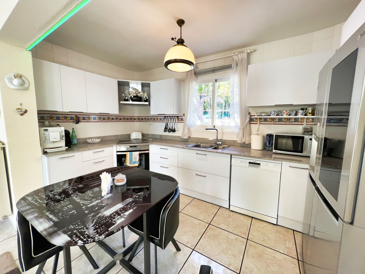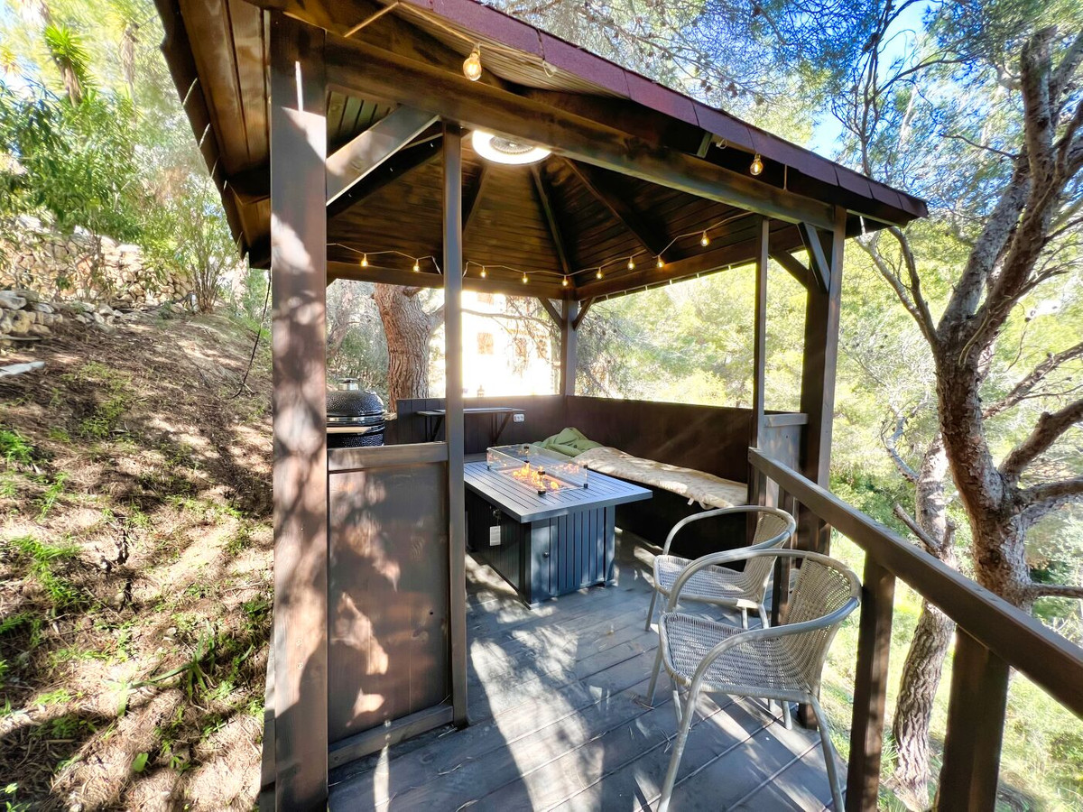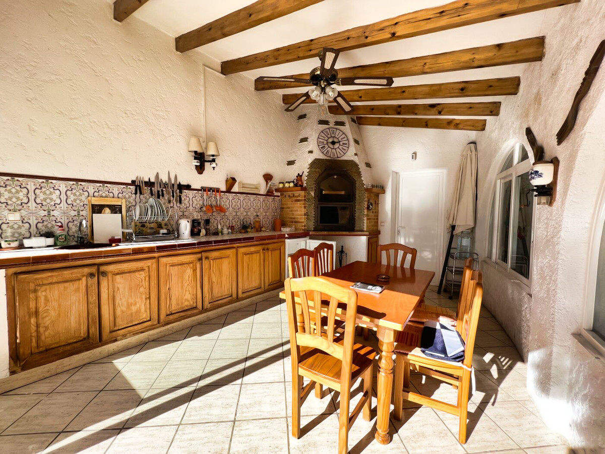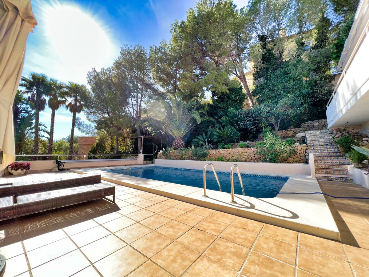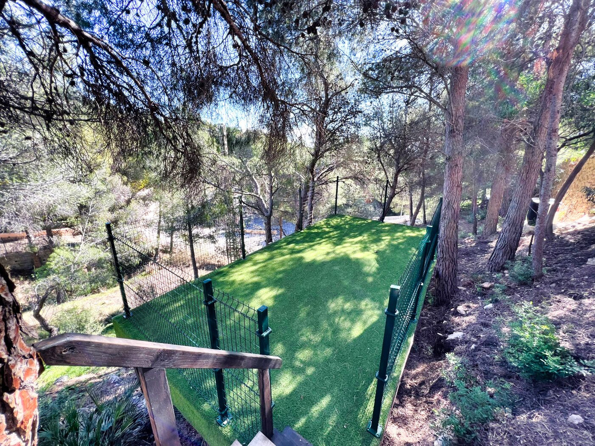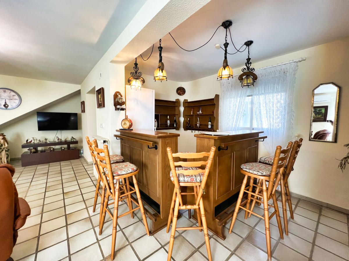 This villa is located in a very quiet residential area of Altea, just 400 metres distance to the Don Cayo Golf Club and 1.3km distance to the center of Altea la Vella with all the restaurants and shops. The property is built on three levels with the living / dining room, open plan kitchen, master bedroom with en-suite bathroom and guest toilet being on the top floor which is also where the main entrance is located. On the middle floor we find another living room with bar, 3 bedrooms, a laundry room and one bathroom. On the lower floor is the guest loft with bathroom and the spa area with jacuzzi, sauna and bathroom. On the same level as the guest loft we have an outdoor summer kitchen with barbecue and sitting area just by the heated saltwater swimmingpool. The garden area of the villa is well kept and there is as well a nice pavillion with gas fireplace where you can enjoy the outdoors even in winter.