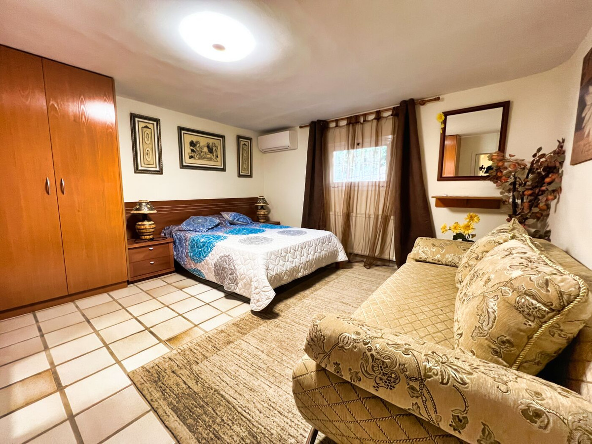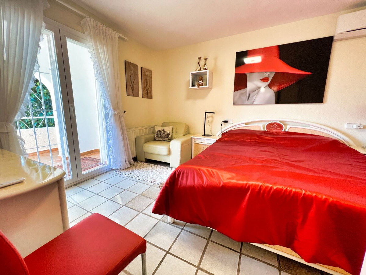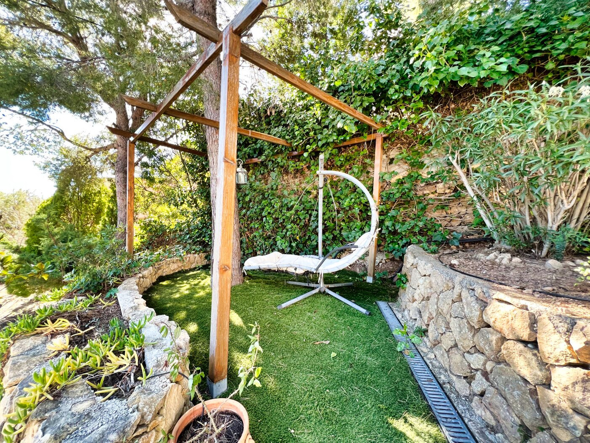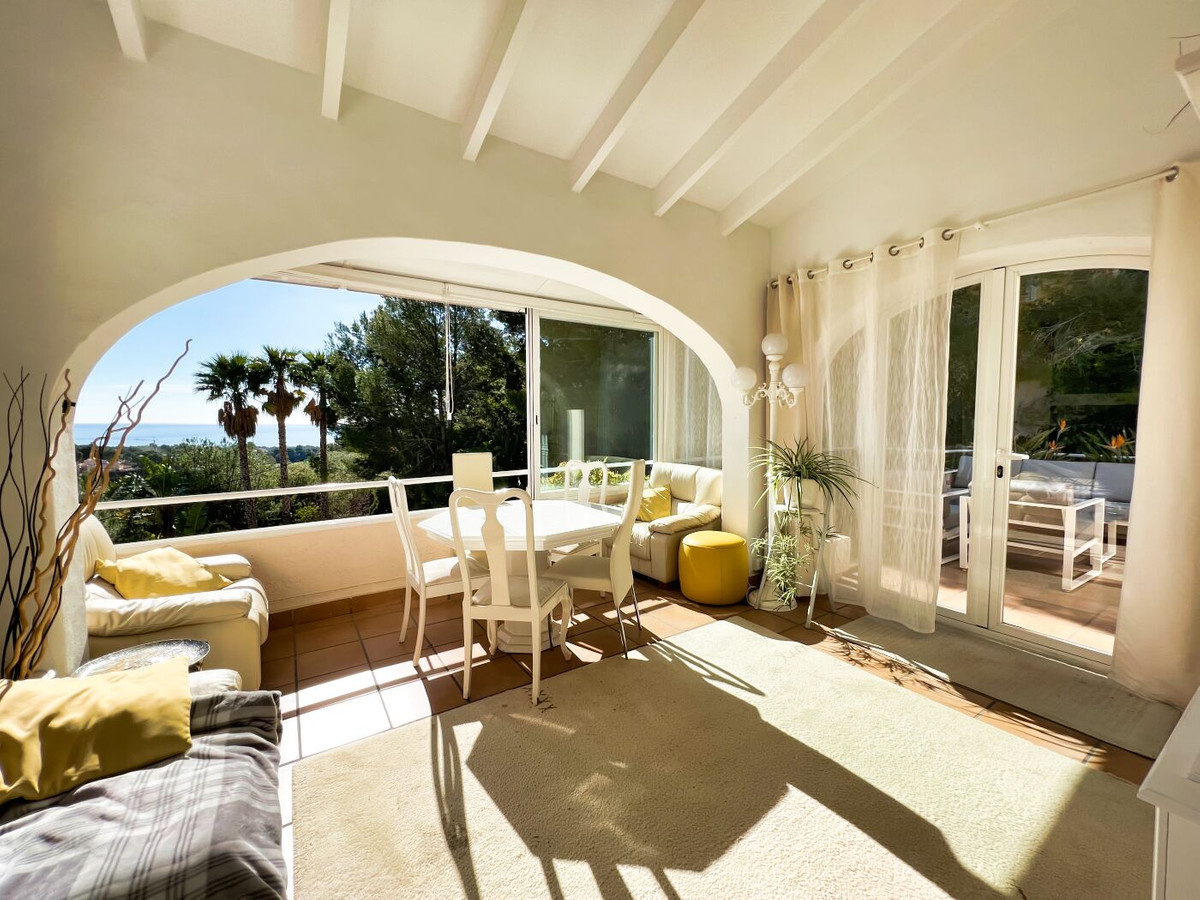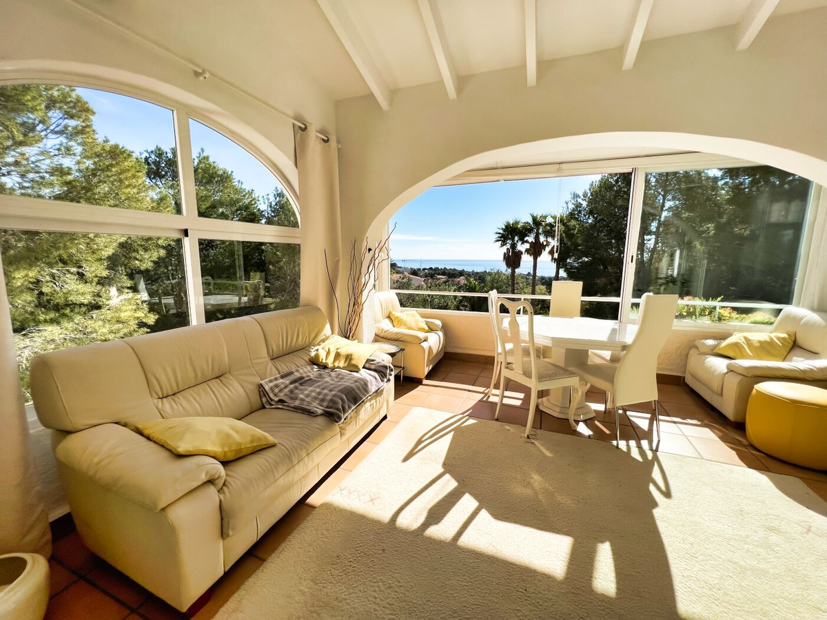 This villa is located in a very quiet residential area of Altea, just 400 metres distance to the Don Cayo Golf Club and 1.3km distance to the center of Altea la Vella with all the restaurants and shops. The property is built on three levels with the living / dining room, open plan kitchen, master bedroom with en-suite bathroom and guest toilet being on the top floor which is also where the main entrance is located. On the middle floor we find another living room with bar, 3 bedrooms, a laundry room and one bathroom. On the lower floor is the guest loft with bathroom and the spa area with jacuzzi, sauna and bathroom. On the same level as the guest loft we have an outdoor summer kitchen with barbecue and sitting area just by the heated saltwater swimmingpool. The garden area of the villa is well kept and there is as well a nice pavillion with gas fireplace where you can enjoy the outdoors even in winter.