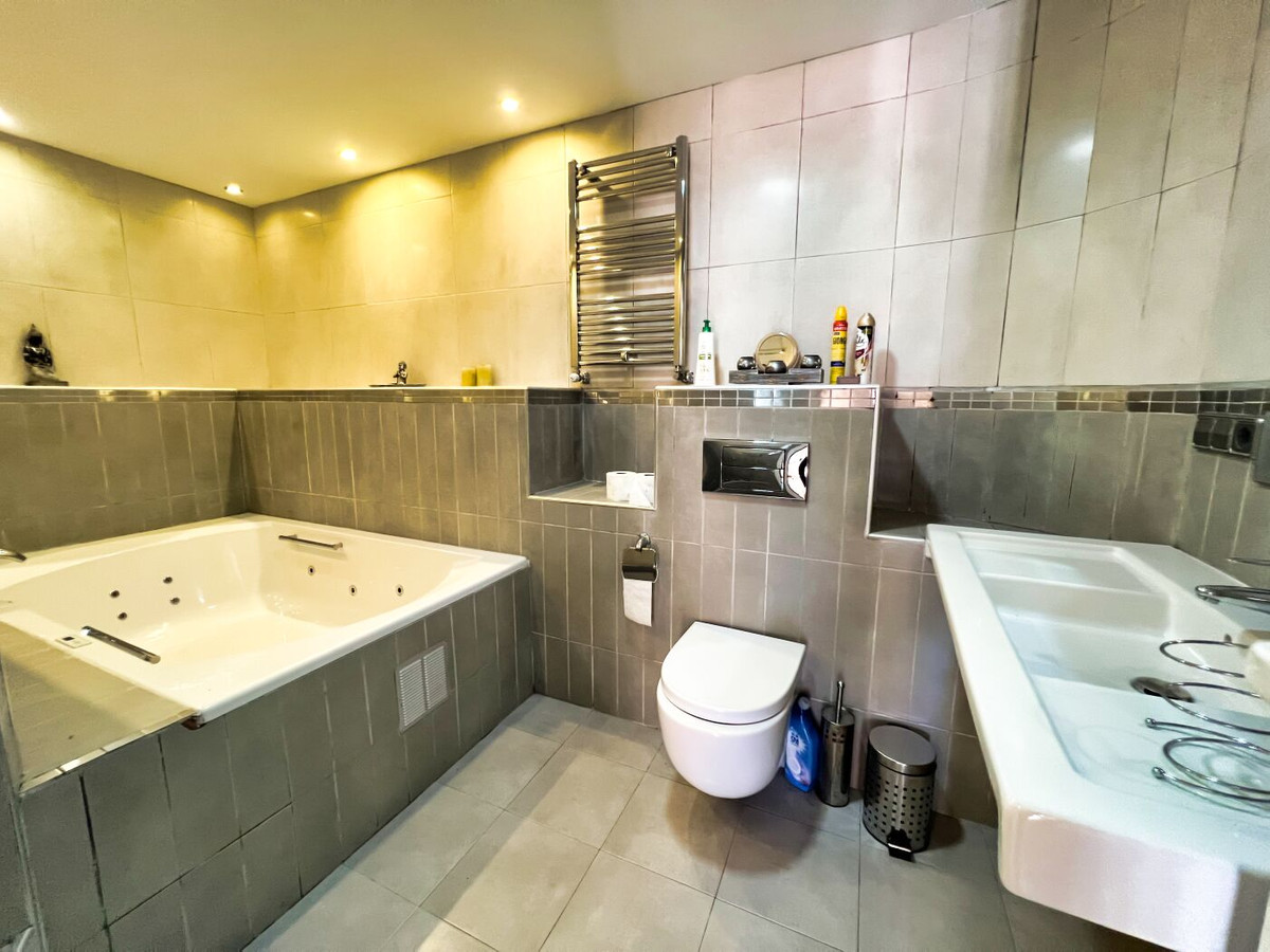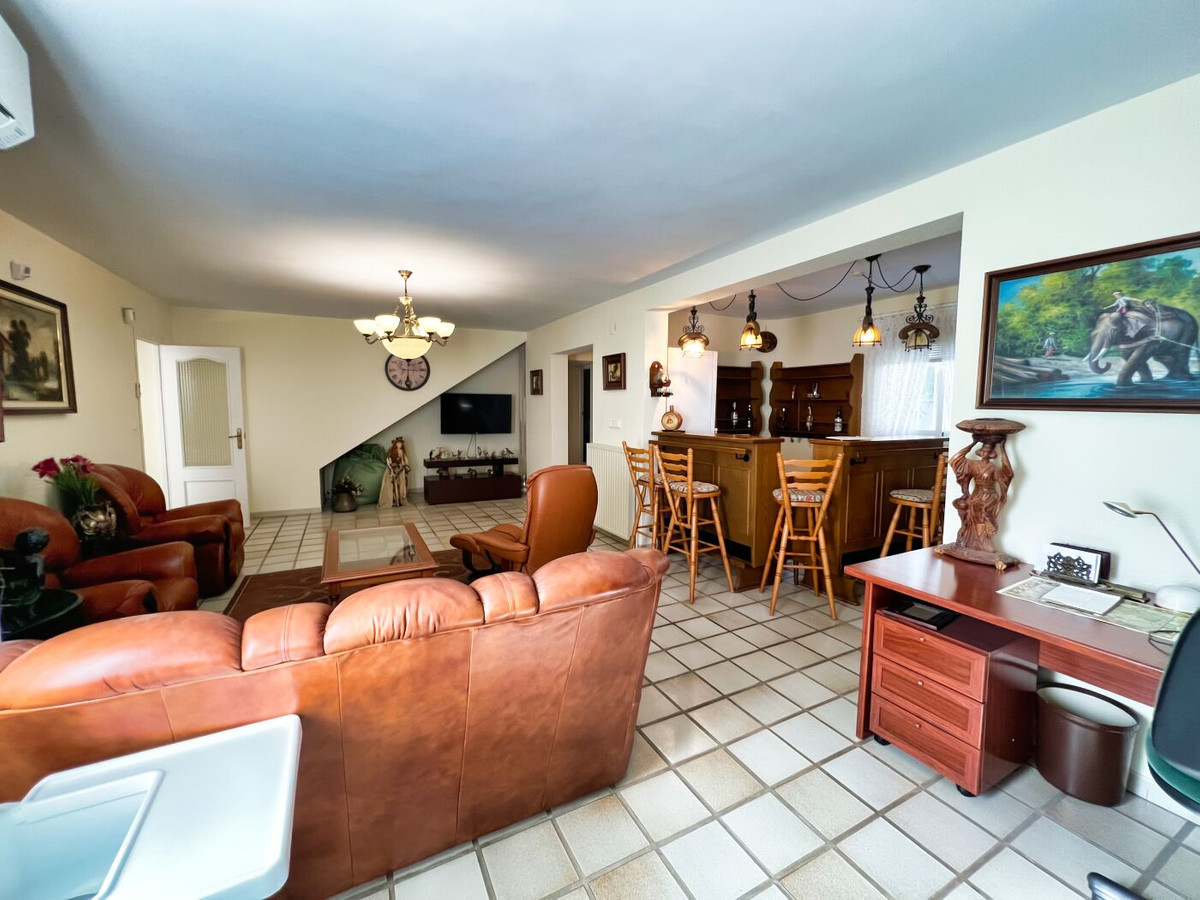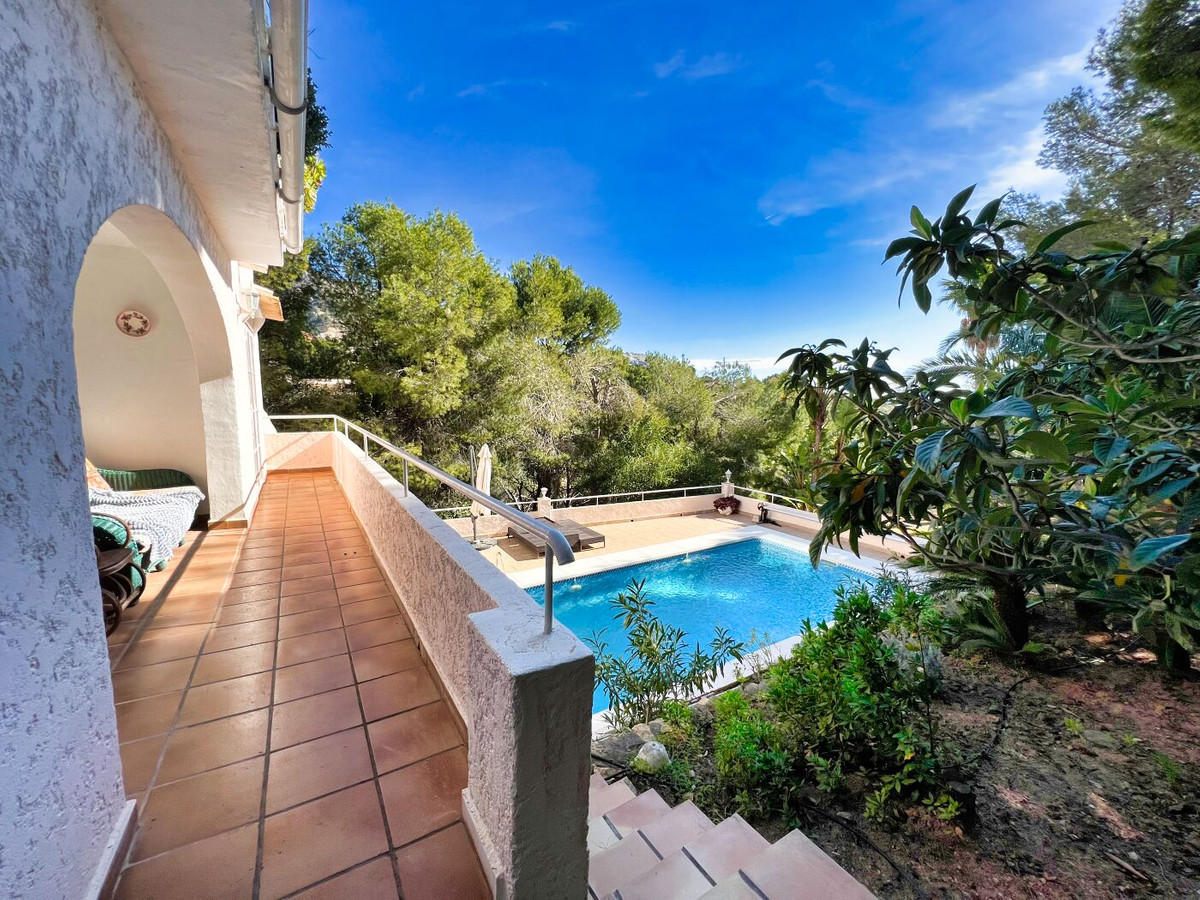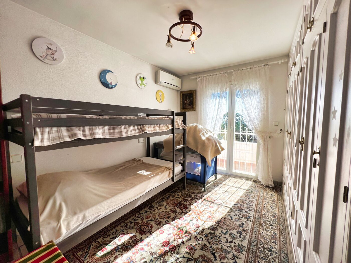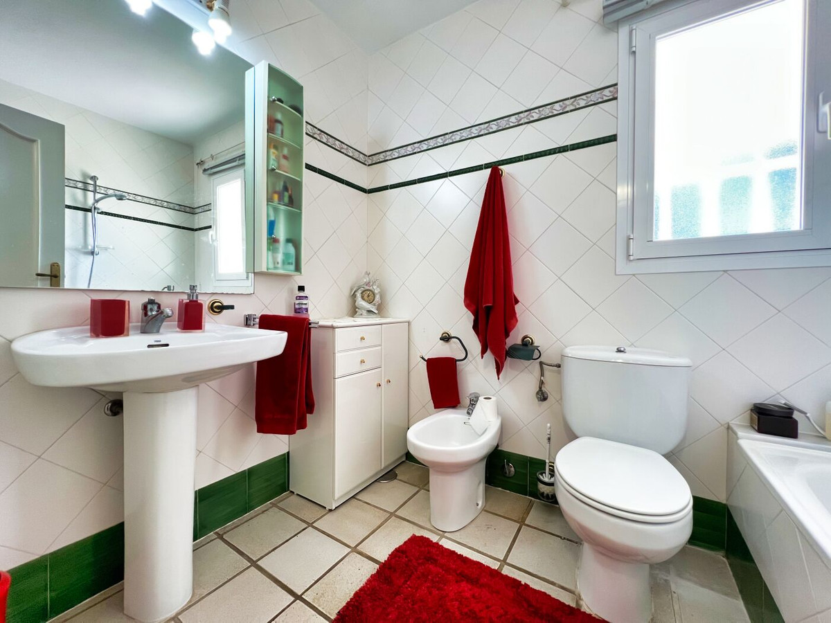 This villa is located in a very quiet residential area of Altea, just 400 metres distance to the Don Cayo Golf Club and 1.3km distance to the center of Altea la Vella with all the restaurants and shops. The property is built on three levels with the living / dining room, open plan kitchen, master bedroom with en-suite bathroom and guest toilet being on the top floor which is also where the main entrance is located. On the middle floor we find another living room with bar, 3 bedrooms, a laundry room and one bathroom. On the lower floor is the guest loft with bathroom and the spa area with jacuzzi, sauna and bathroom. On the same level as the guest loft we have an outdoor summer kitchen with barbecue and sitting area just by the heated saltwater swimmingpool. The garden area of the villa is well kept and there is as well a nice pavillion with gas fireplace where you can enjoy the outdoors even in winter.