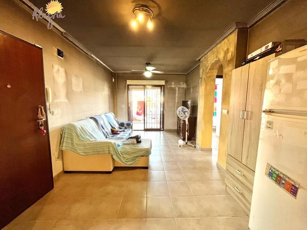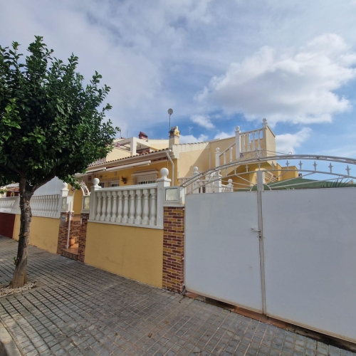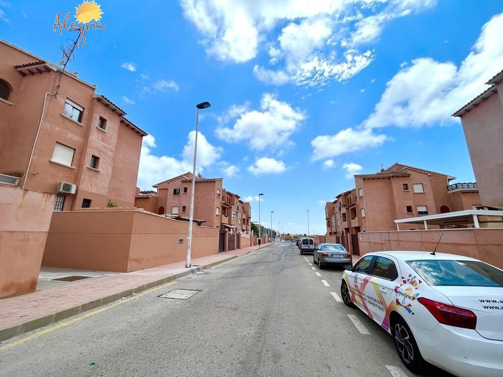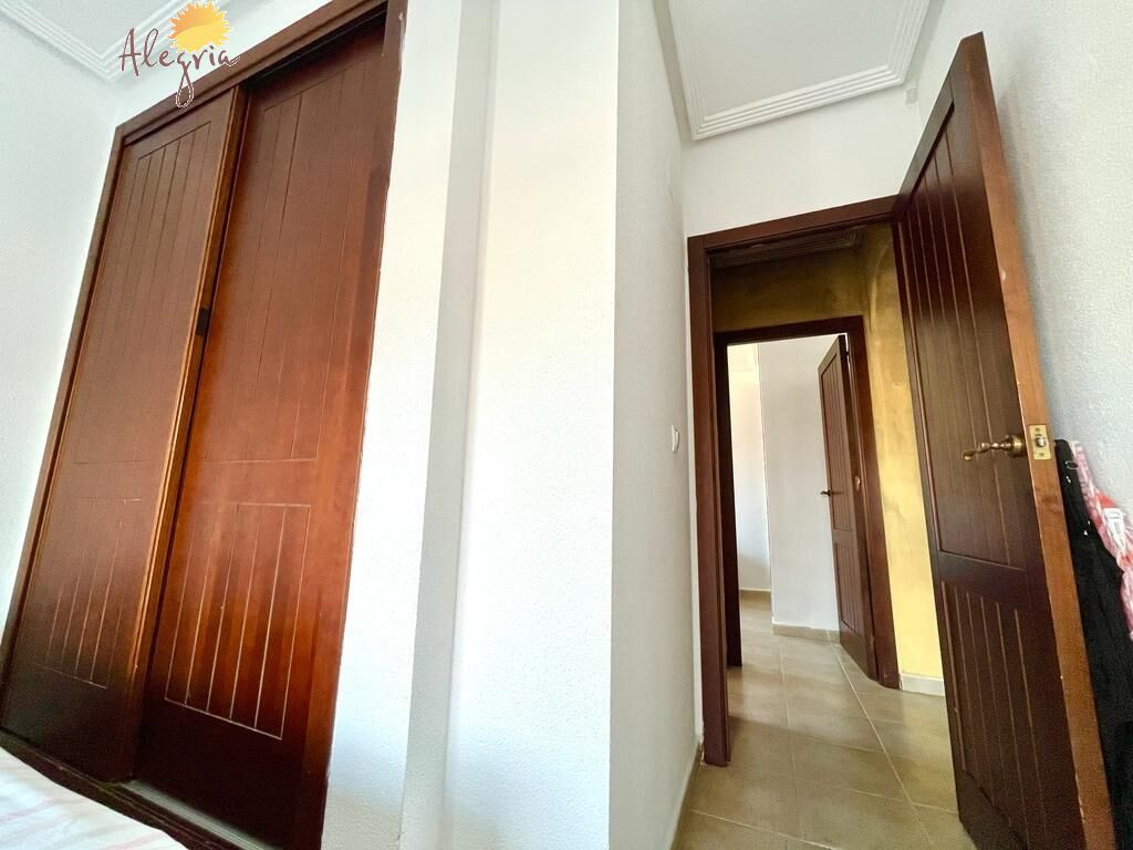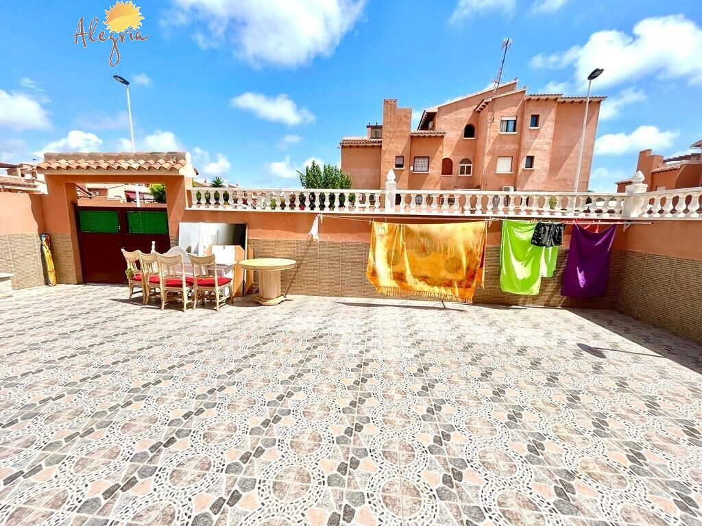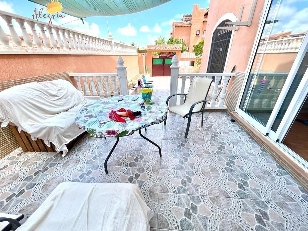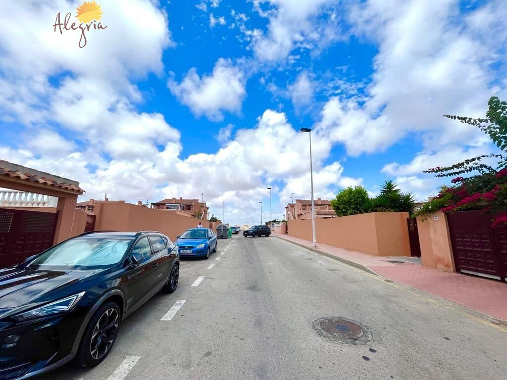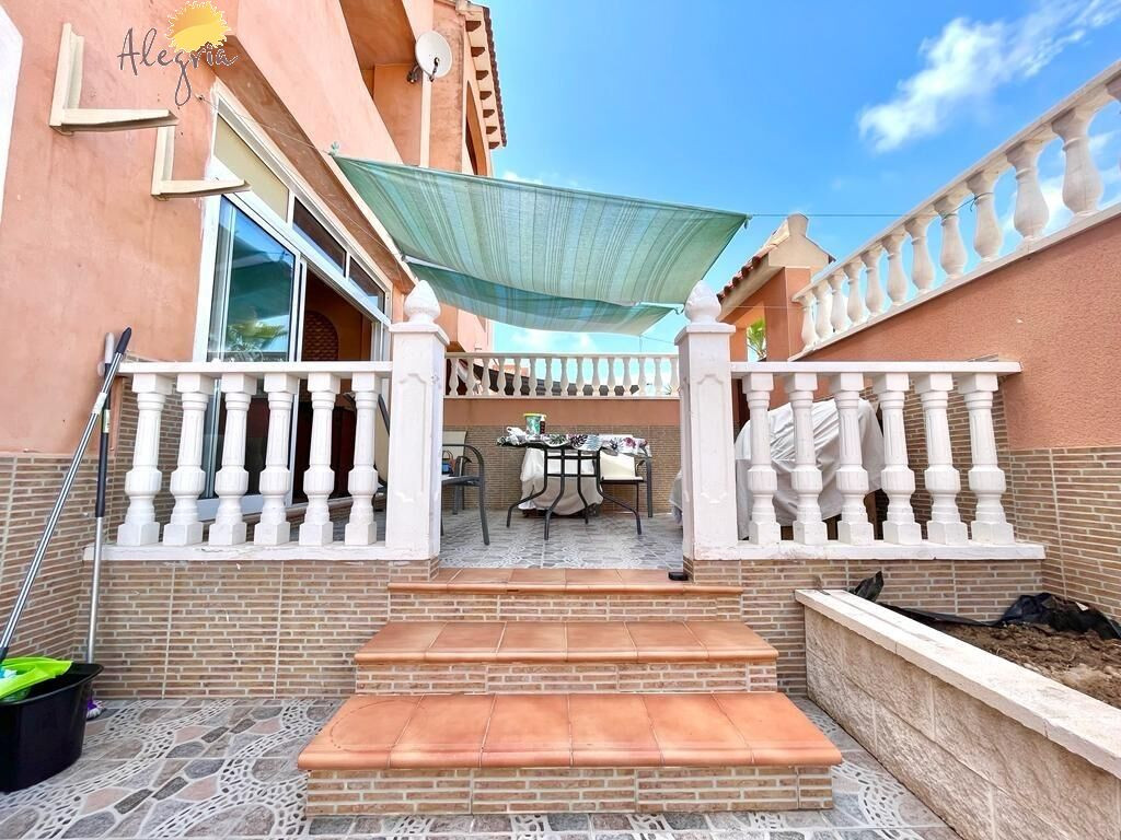 Ground Floor Bungalow in Torrevieja, Aguas Nuevas area, 61 m2. of surface, 104 m2 of terrace, 800 m. from the beach (10 minutes walk from the sea and 5 minutes by car), 2 double bedrooms (bright with fitted wardrobes), a bathroom (spacious), semi-renovated property, beech interior carpentry, west facing, porcelain stoneware floor, carpentry aluminum / climalit exterior.Extras: water, fitted wardrobes, corner, bright, light, furniture, patio, community pool, terrace (impressive sunny terrace), buses (a few minutes from the bus stops), trees, downtown (surrounded by all services). , shopping centers, medical centers, schools, coast, hospitals, parks, supermarkets, urbanization.Parking included (in the same plot)