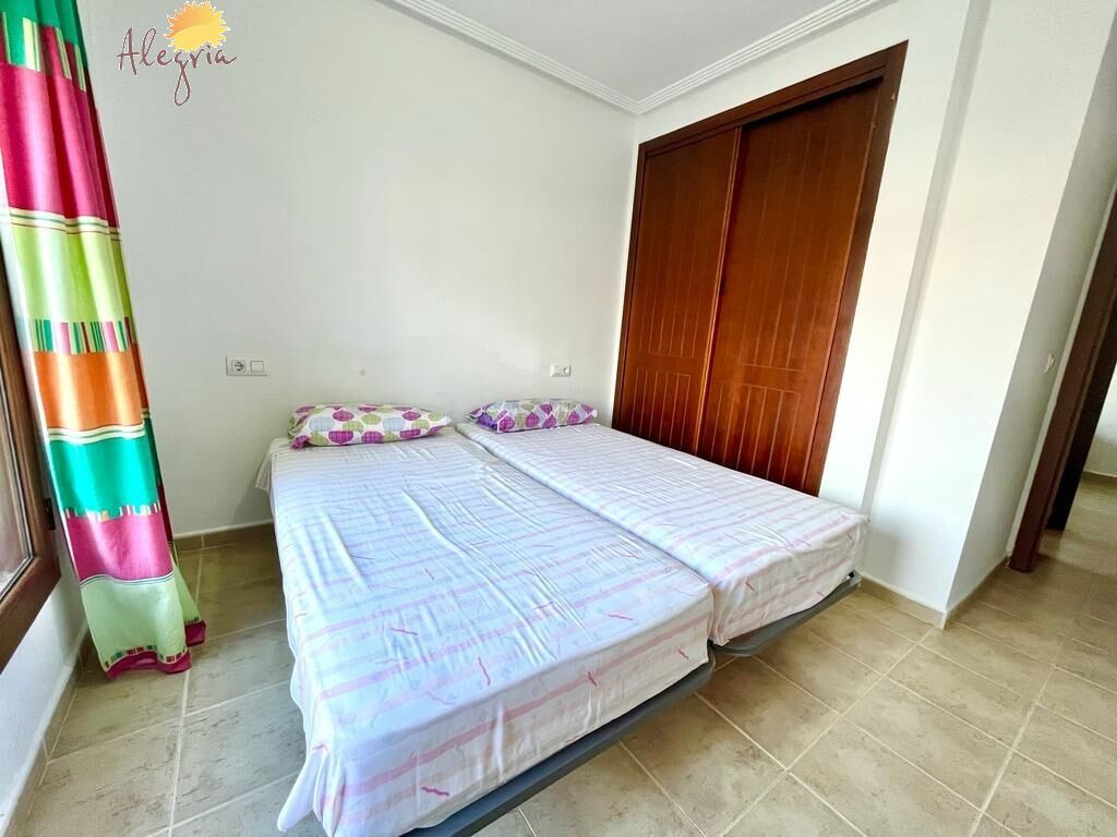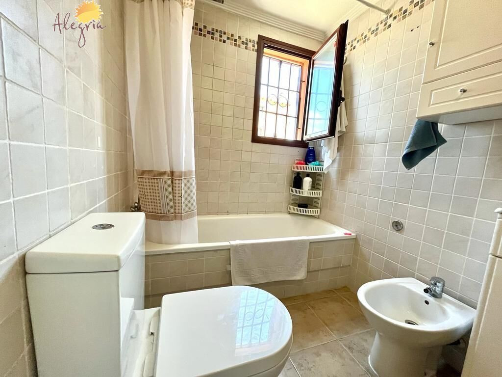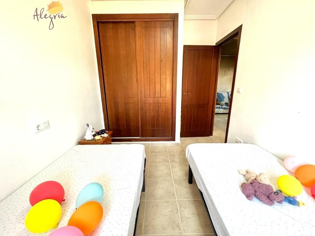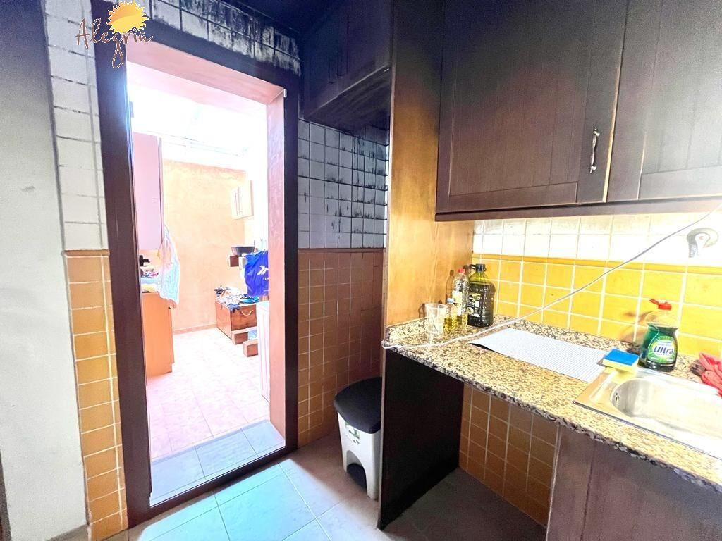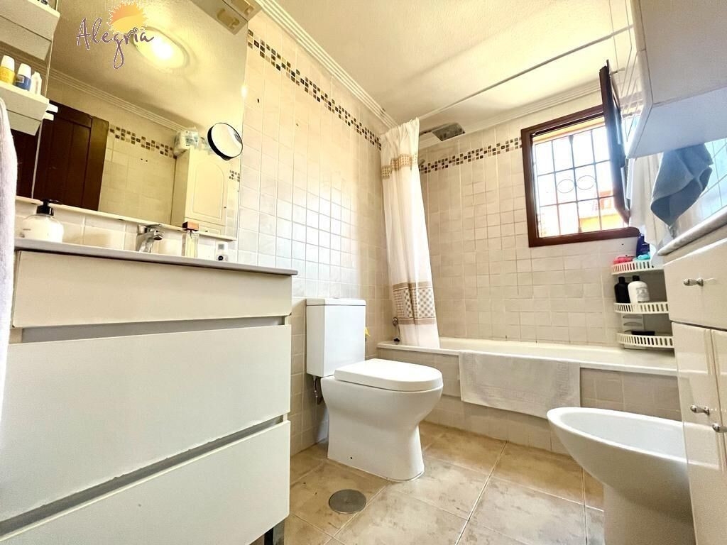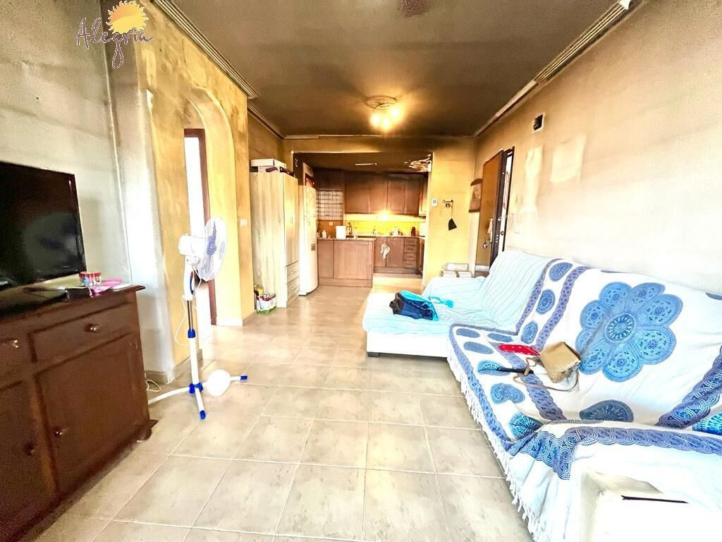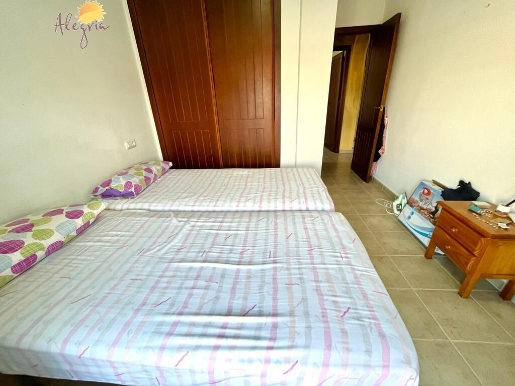 Ground Floor Bungalow in Torrevieja, Aguas Nuevas area, 61 m2. of surface, 104 m2 of terrace, 800 m. from the beach (10 minutes walk from the sea and 5 minutes by car), 2 double bedrooms (bright with fitted wardrobes), a bathroom (spacious), semi-renovated property, beech interior carpentry, west facing, porcelain stoneware floor, carpentry aluminum / climalit exterior.Extras: water, fitted wardrobes, corner, bright, light, furniture, patio, community pool, terrace (impressive sunny terrace), buses (a few minutes from the bus stops), trees, downtown (surrounded by all services). , shopping centers, medical centers, schools, coast, hospitals, parks, supermarkets, urbanization.Parking included (in the same plot)