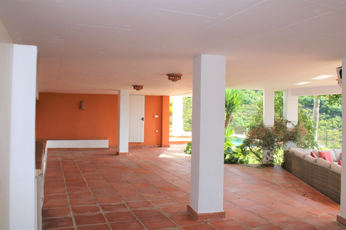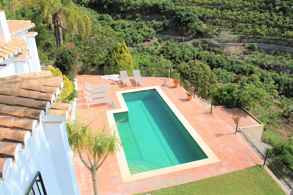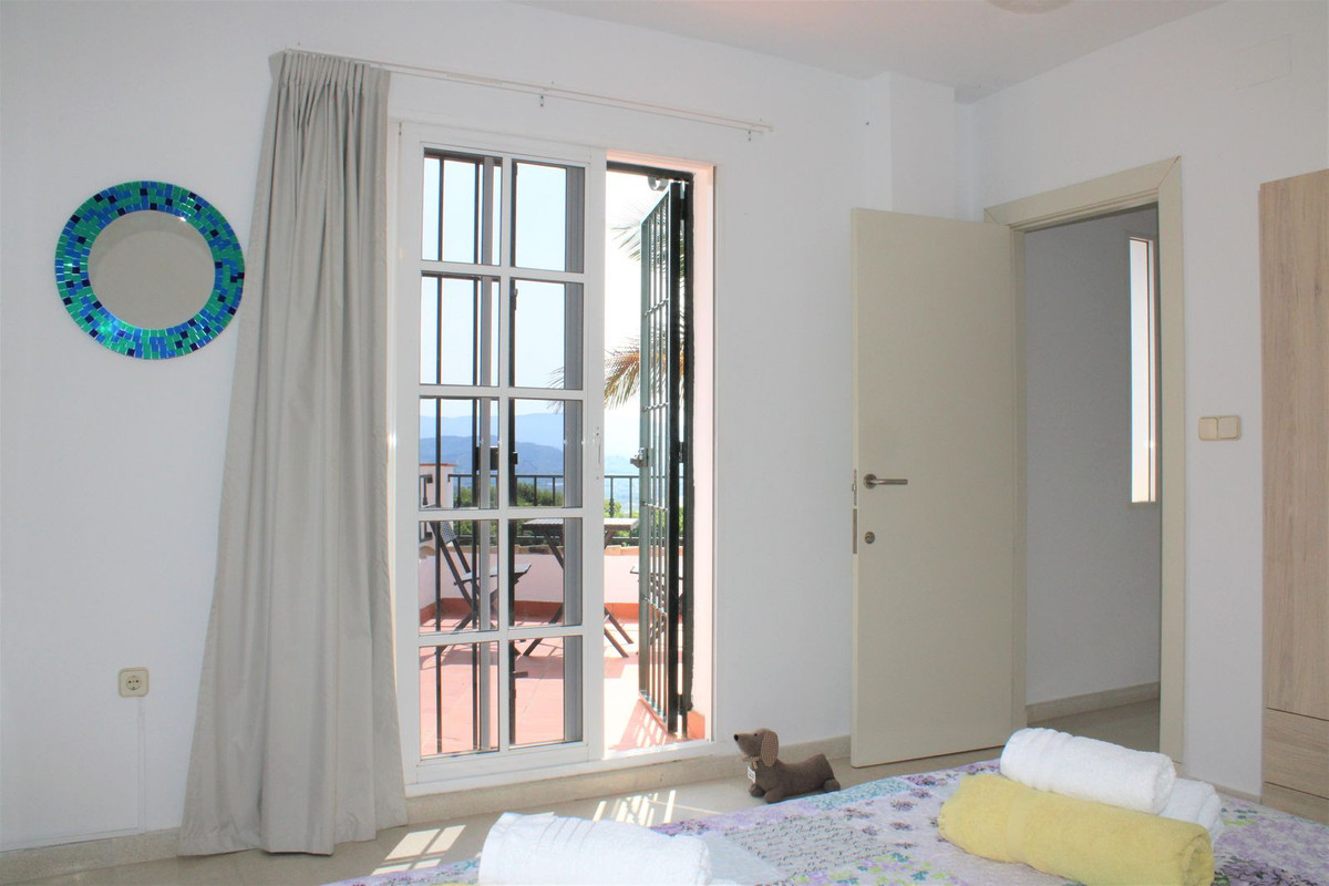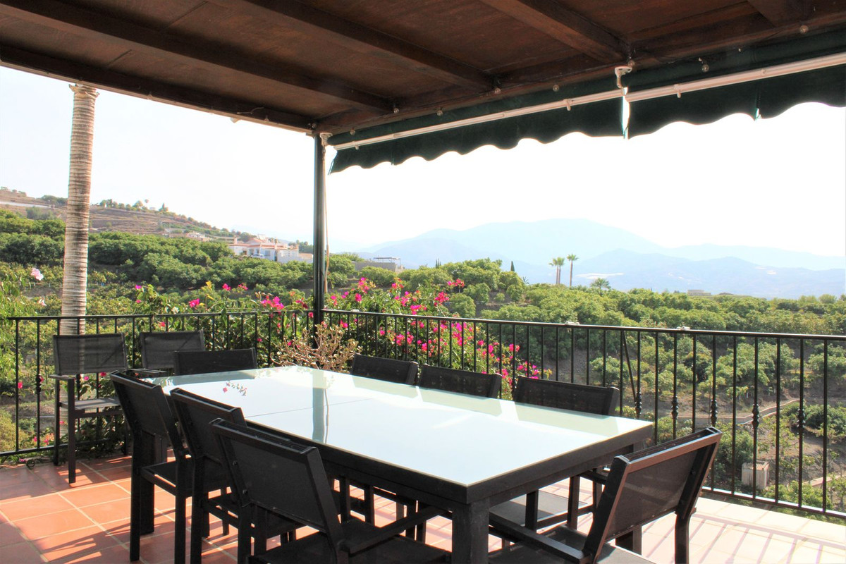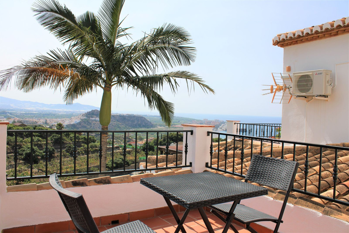 På entréplan finner vi vardagsrummet med matplats, samt ett angränsande stort fullt utrustat kök. Vardagsrummet leder er ut till en av de stora terrasser som, här sitter du och njuter av den härliga utsikten över bergen och havet. På detta plan finns även tre av sovrummen och två badrum, ett av sovrummen är ensuite. Uppför den marmorbelagda trappan till ovanvåningen, här finner du ytterligare på två sovrum och ett badrum. Båda sovrummen har tillgång till en egen terrass, air-condition finns i samtliga fem sovrum.