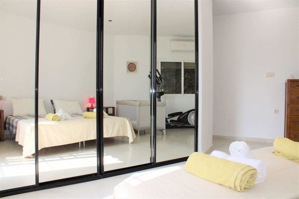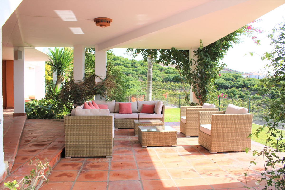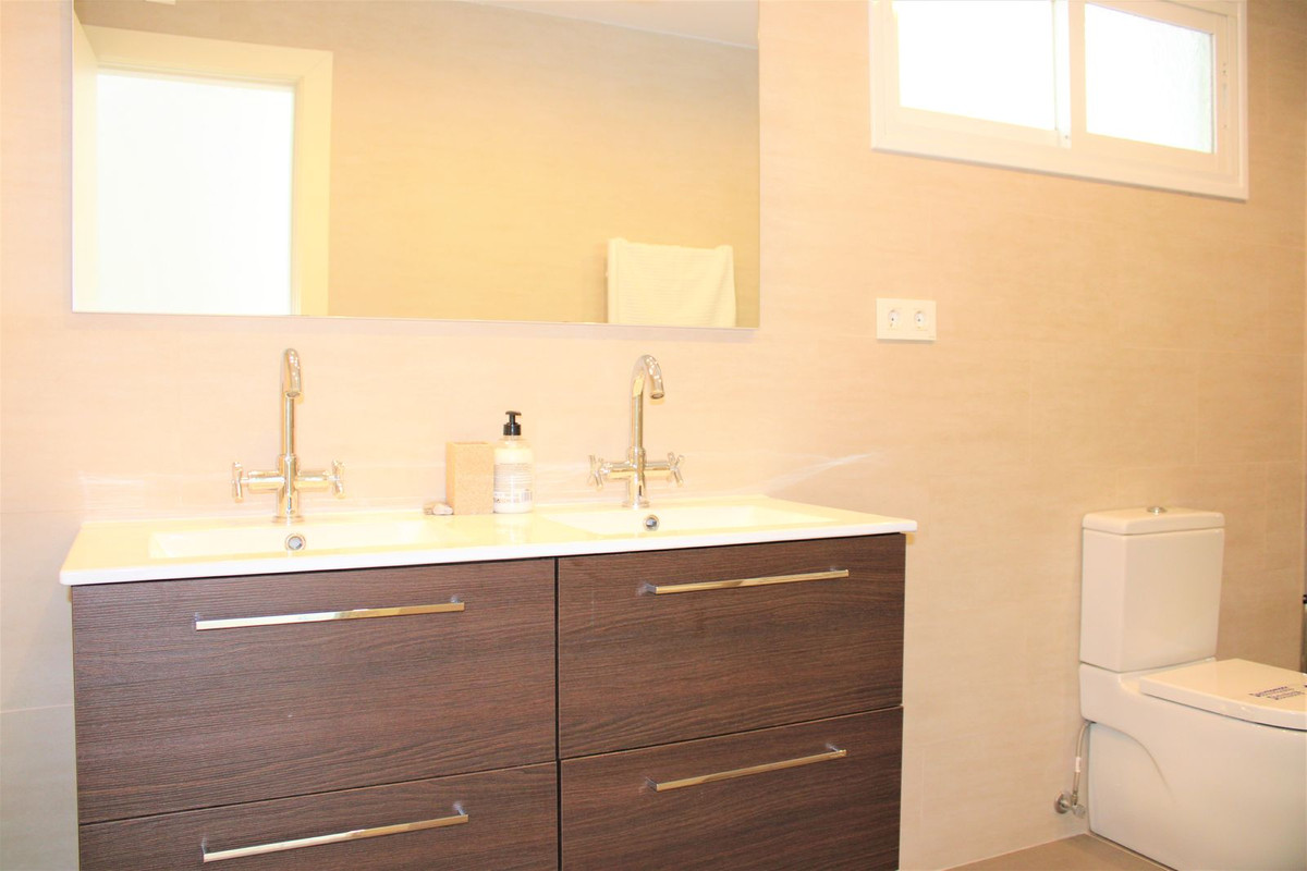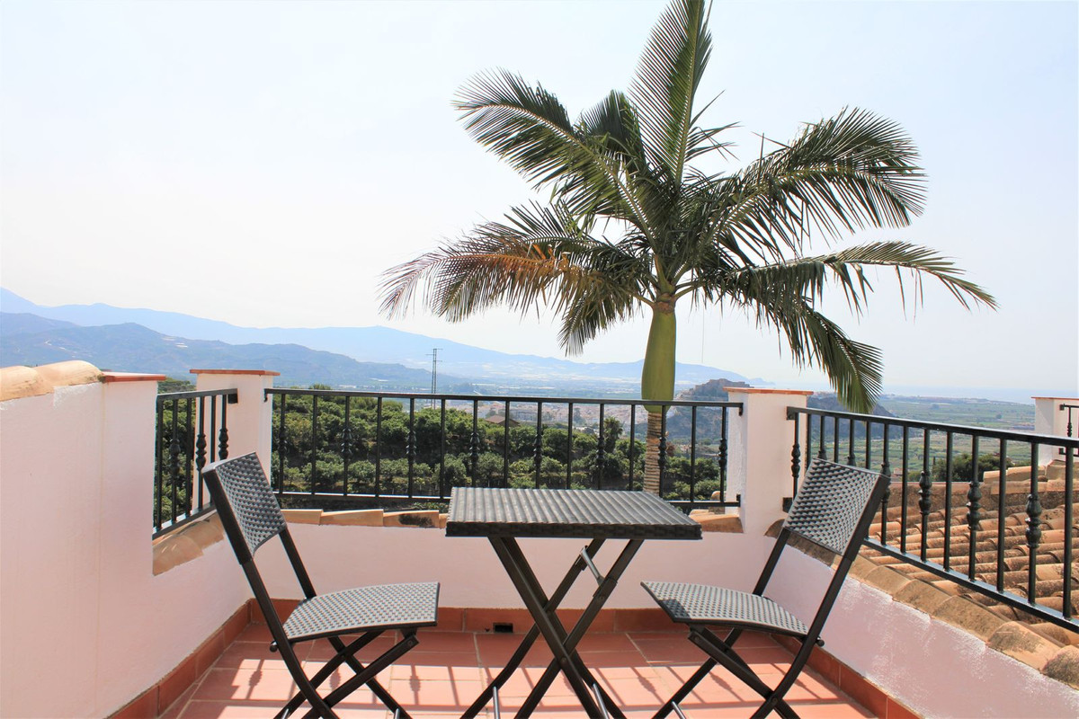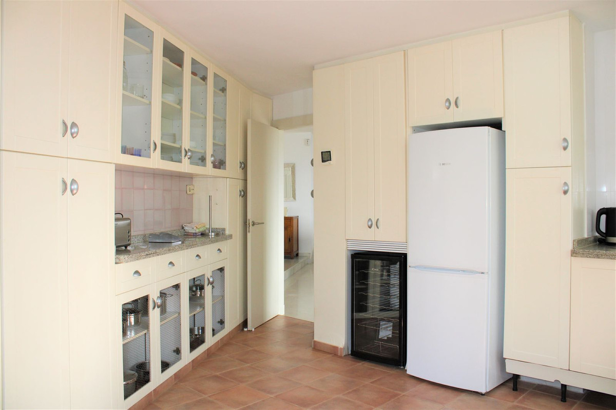 På entréplan finner vi vardagsrummet med matplats, samt ett angränsande stort fullt utrustat kök. Vardagsrummet leder er ut till en av de stora terrasser som, här sitter du och njuter av den härliga utsikten över bergen och havet. På detta plan finns även tre av sovrummen och två badrum, ett av sovrummen är ensuite. Uppför den marmorbelagda trappan till ovanvåningen, här finner du ytterligare på två sovrum och ett badrum. Båda sovrummen har tillgång till en egen terrass, air-condition finns i samtliga fem sovrum.