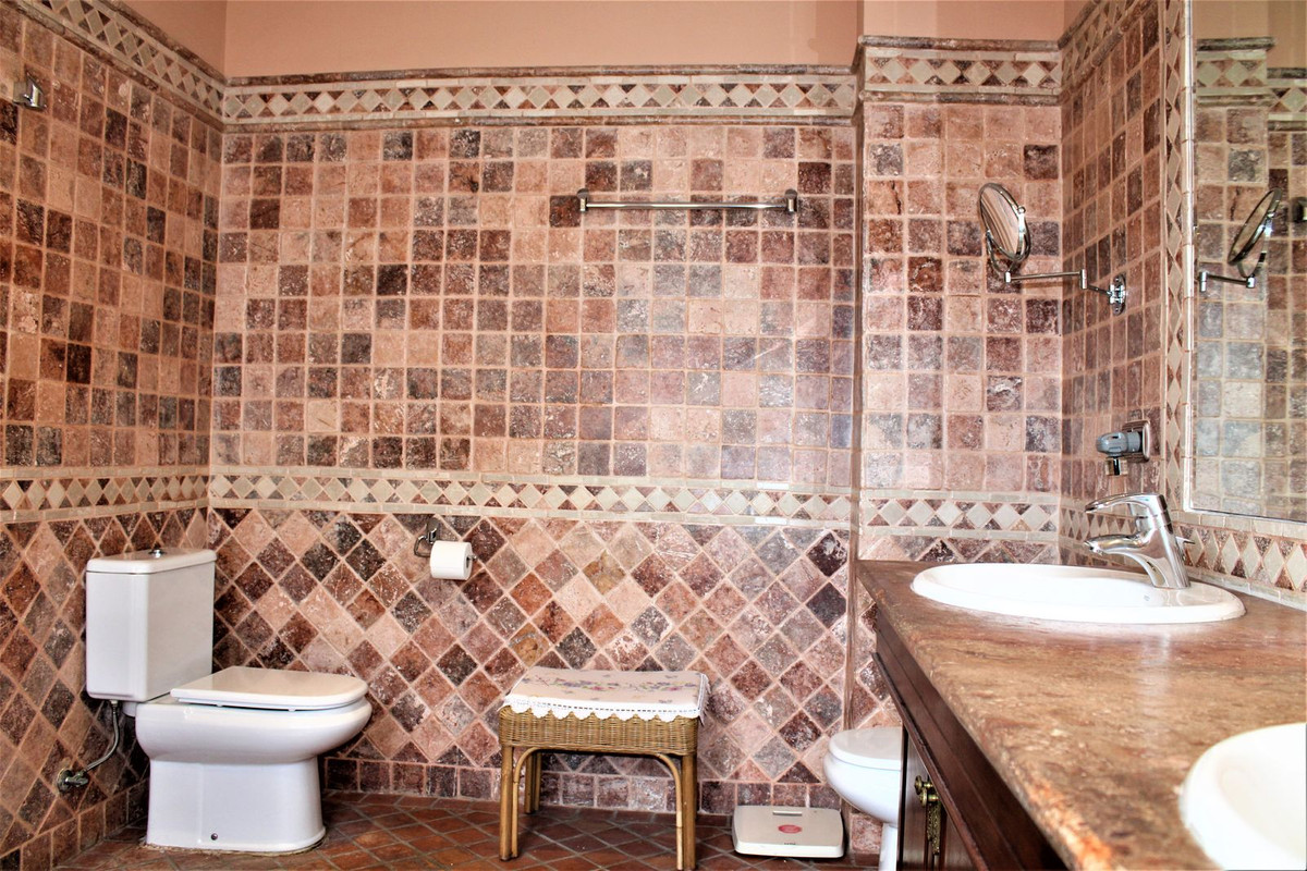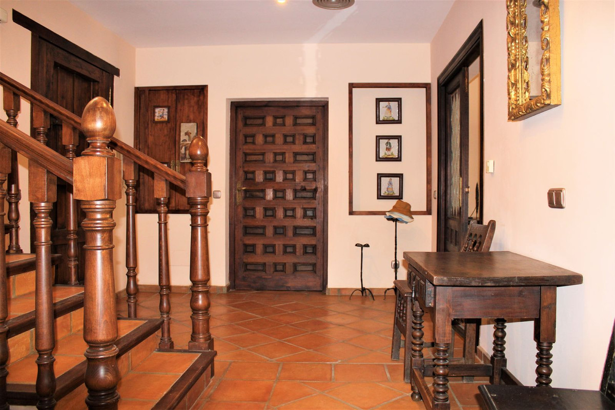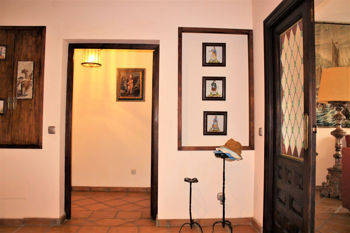 Husets entré imponerar med en magnifik sevillansk innergård, prydd med färgglada krukväxter, hantverkskakel och en vackert stenlagd terrass. En stor solid trädörr välkomnar dig in i en rymlig hall som förbinder husets olika delar. Till höger finner du ett stort fullt utrustat kök som leder vidare till ett ljust och rymligt vardagsrum.