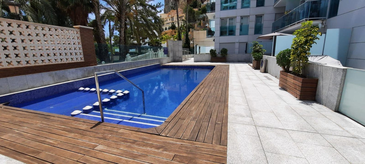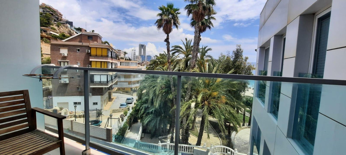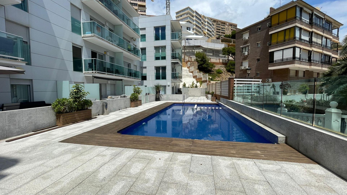 Apartment 50 meters from the Poniente Beach in BenidormThe apartment on the beachfront in Benidorm, specifically on the Poniente beach, is located just 50 meters from the sand, offering a privileged location with impressive views of the Mediterranean Sea.This apartment has two bedrooms, one double room and another single room, which makes it ideal for couples, small families or groups of friends. The bathroom is complete and is equipped with a shower tray, providing comfort and functionality.The dining room is spacious and bright, and has direct access to a sunny terrace. From the terrace, you can enjoy the wonderful views of the sea, creating a perfect environment to relax and enjoy the coastal environment.The apartment also offers fitted wardrobes in the bedrooms, allowing for convenient and tidy storage. In addition, the rental price includes an underground parking space, which provides comfort and security for those traveling by car.The building in which the apartment is located was built in 2010, which guarantees a modern and well-maintained structure. The urbanization in which it is located has green areas, which provides a pleasant and quiet environment. In addition, residents have access to a large community pool, perfect for cooling off and enjoying the Mediterranean climate.In short, this beachfront apartment in Benidorm offers a privileged location, stunning views of the sea, two comfortable bedrooms, a full bathroom, a living-dining room with a sunny terrace, built-in wardrobes, an underground parking space and access to a swimming pool. community. It is the perfect place to enjoy a relaxing holiday by the sea.