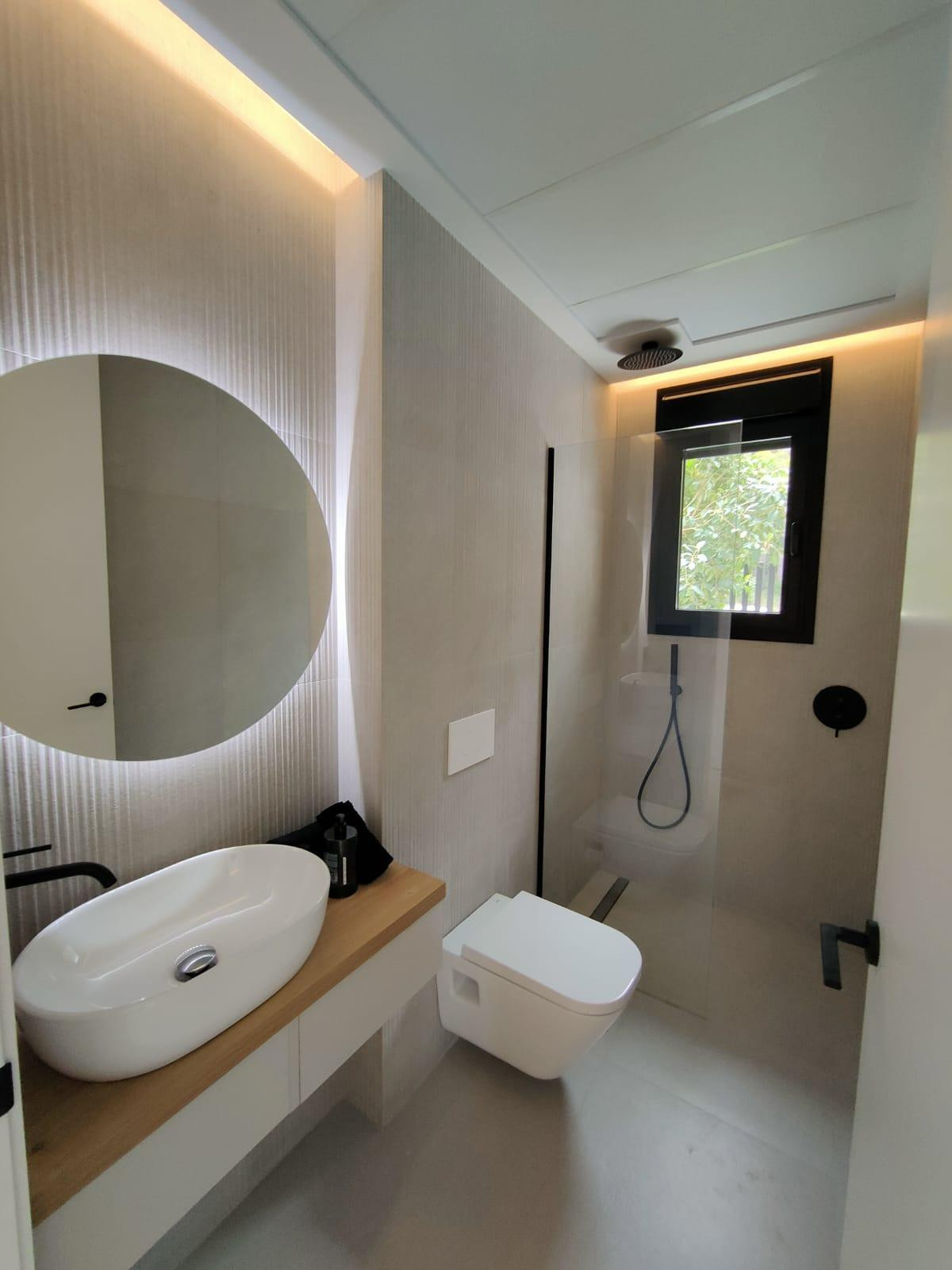 Independent villas with views of the sea and the mountains in the upper part of Polop, at the foot of Mount Ponoig.All include 3 bedrooms, 3 bathrooms, living room with equipped kitchen, dressing room, garage in the basement, large terraces, garden and private pool.Built with excellent qualities that include: porcelain stoneware floors, aluminum exterior carpentry with thermal break and double glazing, armored entrance door, built-in wardrobes, kitchen equipped with electrical appliances, aerothermal hot water, ducted air conditioning, underfloor heating. underfloor heating, motorized blinds, home automation and alarm system, decorative fireplace with bioethanol, infinity pool with glass front, etc.Located in the upper area of Polop, surrounded by nature, trees, mountains and with views of the sea. A quiet area, but well connected by the CV-70 road. Just 5 minutes from the towns of La Nucia and Polop, with all kinds of shops and services, and 15 minutes from Benidorm, its beaches, and the AP7 motorway that connects with the entire Costa Blanca.