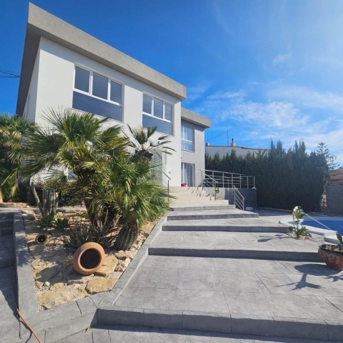 A wonderful villa for sale.Built in 2006, cosmetic repairs were made in 2021. Detached house in urbanization los Pinos. The villa is made in a Mediterranean style, located in a quiet and peaceful residential area of Calpe - Los Pinos, 850 m from the beach. Restaurants, shops, supermarkets, bus stop, yacht club are within a radius of 1 km from the villa. From the territory of the site offers an incredible view of the mountains, and from some rooms of the sea. The area of the villa is 271 meters, divided into three floors.It has 5 large bedrooms and 5 bathrooms.One of the bedrooms also has a work area. On the ground floor there is a spacious kitchen and salon, equipped with all necessary appliances.The living room has access to the terrace and pool. The villa also has a 168m multi-car garage with storage space and covered parking. All rooms have air conditioners. The house is perfect for a large family looking for privacy and comfort near the city center, excellent infrastructure and the sea.