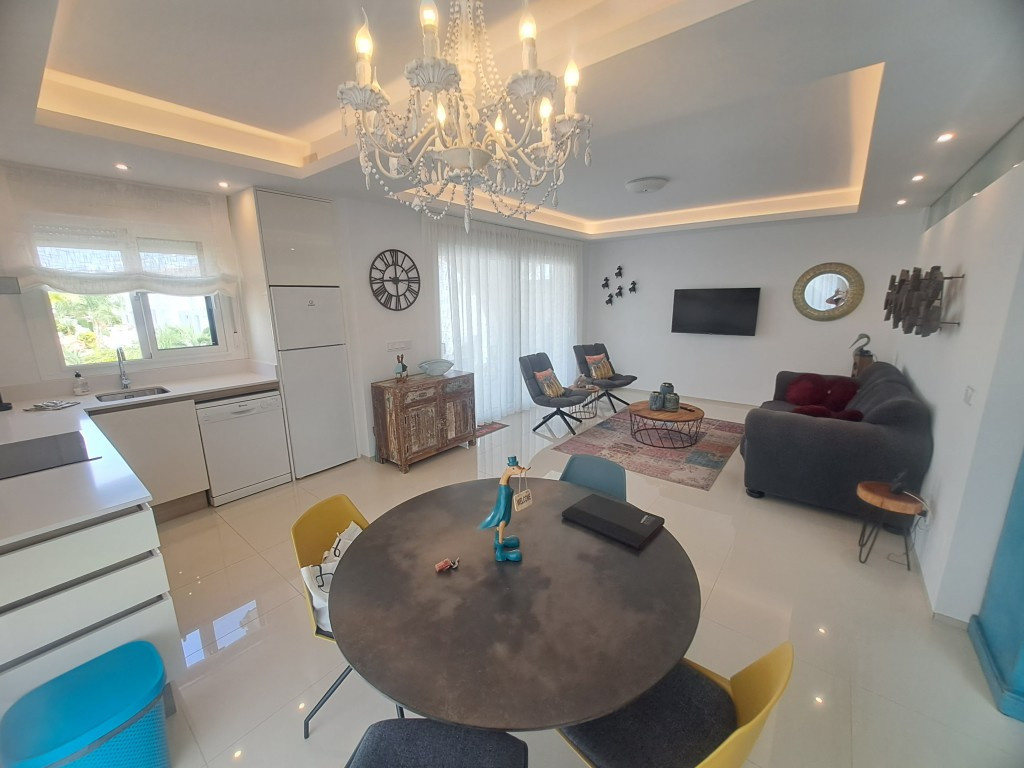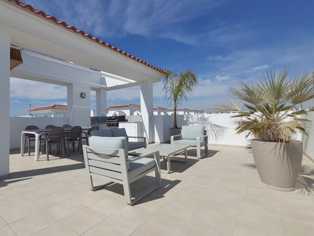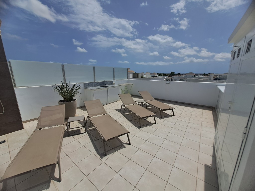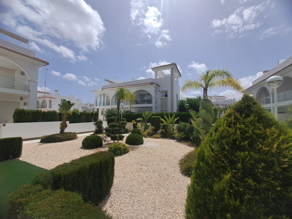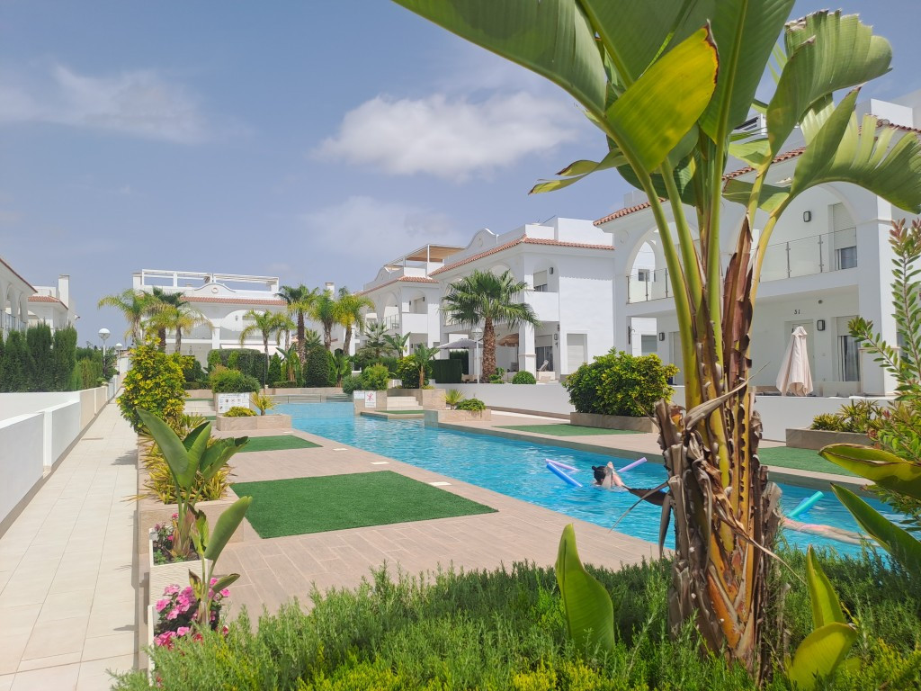 Spektakulär duplexlägenhet i urbaniseringens bästa läge och full utsikt över parken och poolen. Modernt och lyxigt inrett och med mycket ljus. Har en andra våning på 100 m som takterrass och är modernt inredd med allt som behövs såsom solstolar, loungeset, utekök och spektakulär utsikt över saltsjöarna. I den slutna urbaniseringen finns parkering och det finns även 3 pooler.
