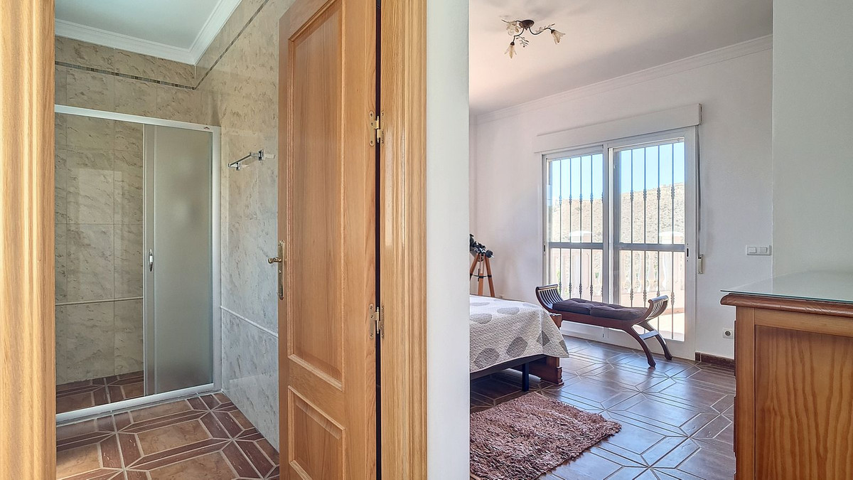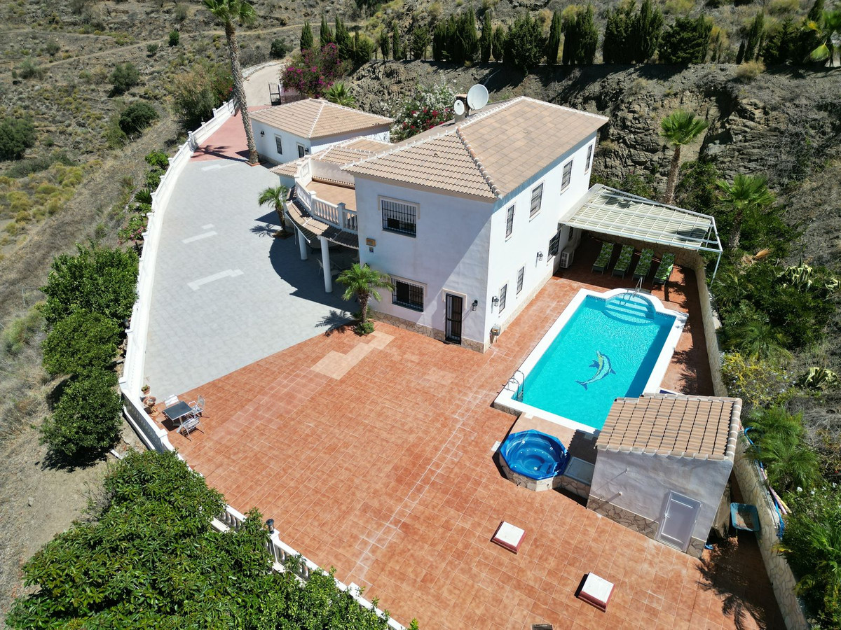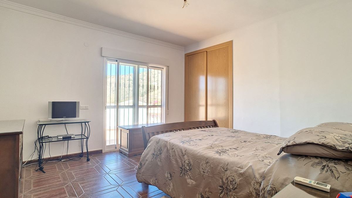 Denna villa ligger på en av de bästa platserna i Axarquia-regionen och erbjuder dig ett huvudhus med 2 våningar, totalt har denna villa 4 sovrum och 3 badrum. På bottenvåningen har du ett rymligt vardagsrum med luftkonditionering och öppen spis, ett fullt utrustat kök (ugn, mikrovågsugn, diskmaskin och induktionshäll), ett förråd som extra köksutrymme och ett förråd som tvättstuga. I anslutning till vardagsrummet finns ett rymligt sovrum med inbyggda garderober och ett eget badrum (handfat, toalett, bidé och dusch). Dessutom finns det ett extra sovrum eller kontor och en separat gästtoalett.